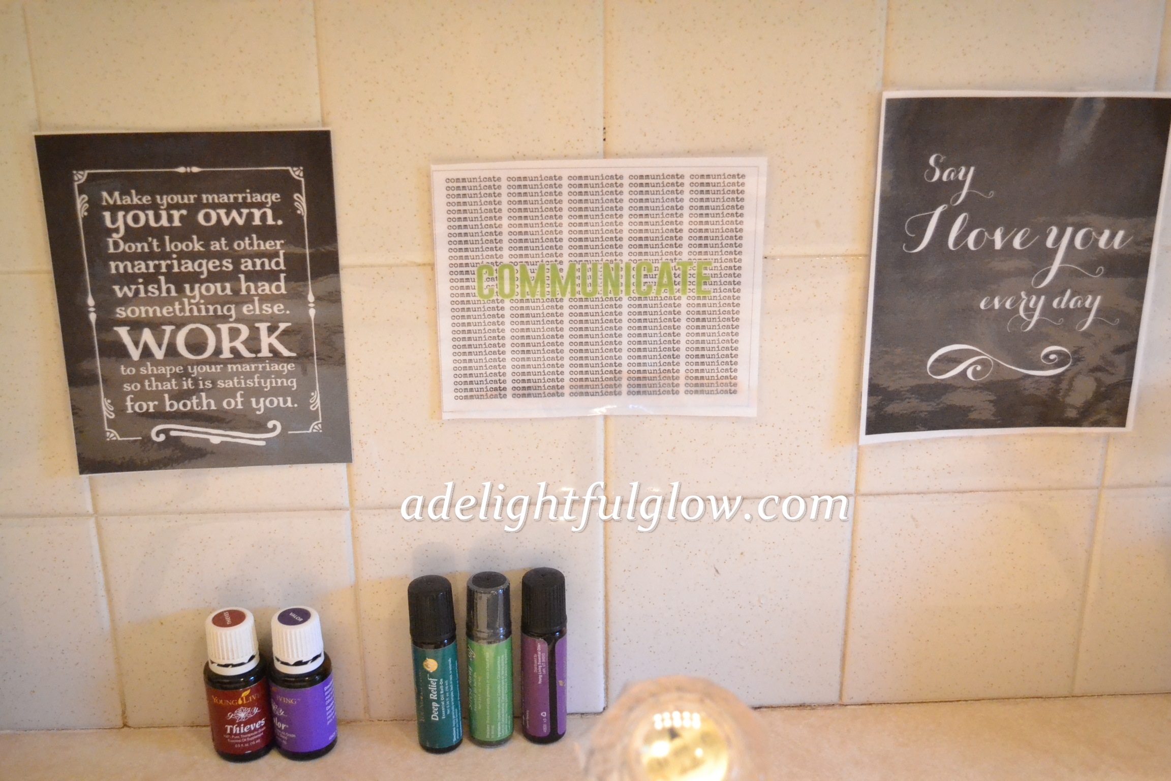 A few weeks ago I printed out some free marriage printables and laminated them and stuck them above my bathroom sink. Marriage doesn’t just happen and I like good reminders and inspiration. And I’ve been liking these mini posters above my sink too, because I don’t love the tile on the wall and it gives it a little different look and dimension. {Find printables and a good read here.}