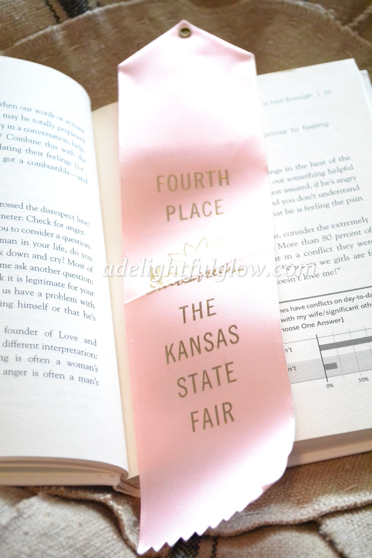 I discovered a cute look and a new bookmark idea that I loved! I was wanting something to use for a bookmark and I happened to notice this ribbon as I walked by my dresser. I stuck it in the book and loved how it stuck out the top and bottom and created a pretty look. Plus, it sorta matches the book. 🙂 This book is a smaller size book and it just paired together well!