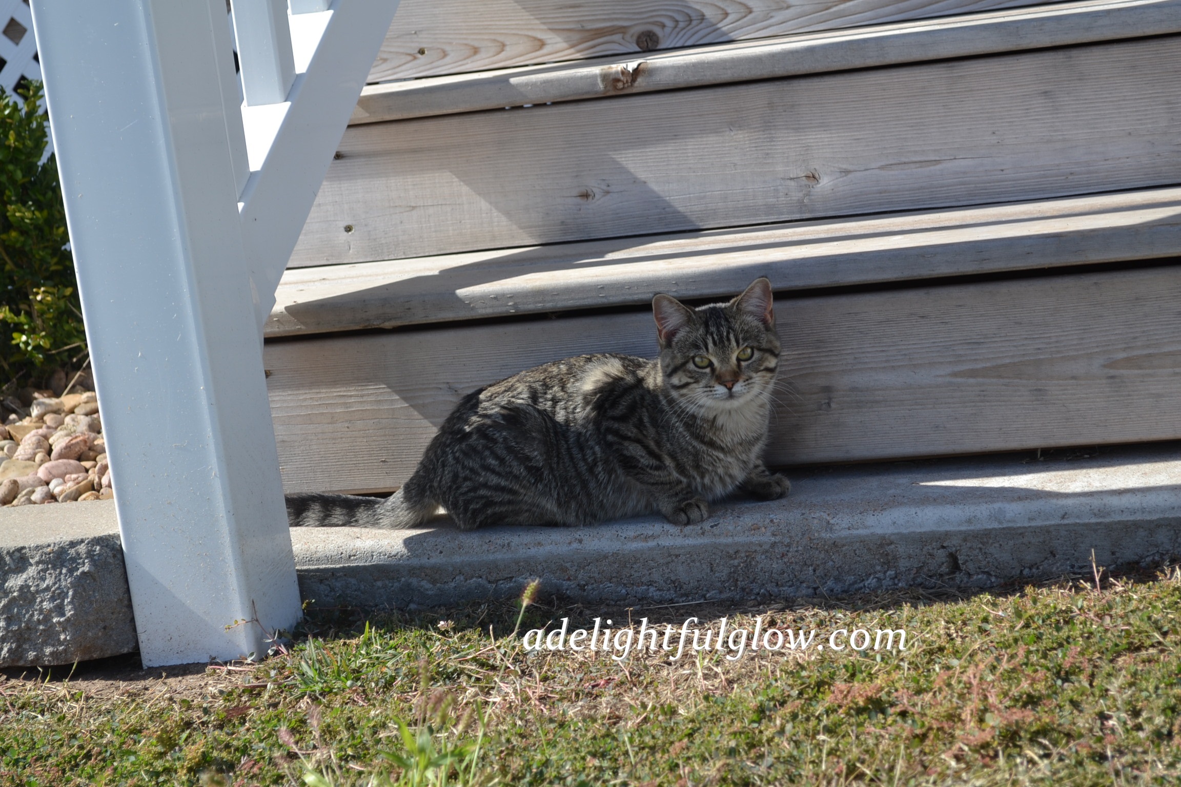 Our O’Malley kitten! She’s growing up! We’ve had two kittens from our earlier litter, die and two have disappeared. It seems it’s feast or famine with cats on our farm. We either have almost too many or can’t quite keep any around.