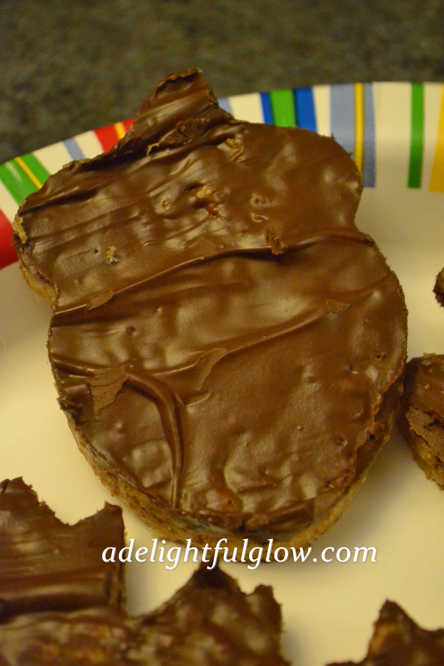Hello autumn shaped Chocolate Topped Rice Krispies or Scotcheroos or whatever name you call them by.