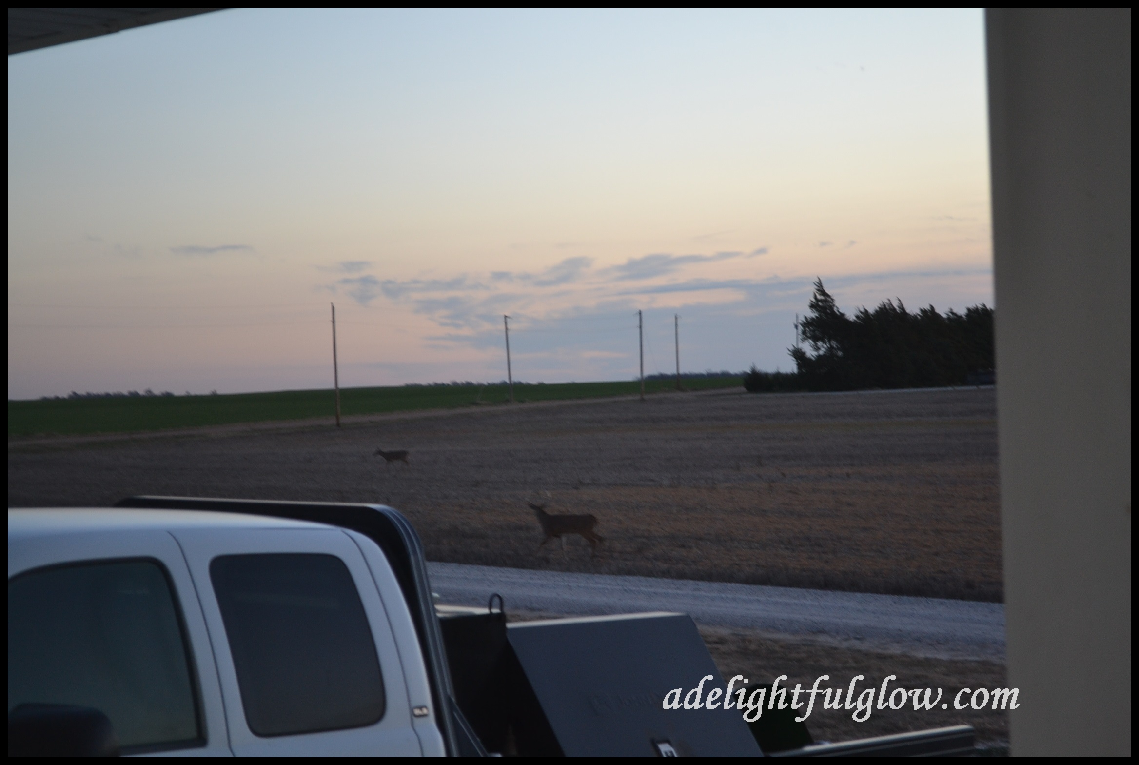 Hey to the deer we’ve seen out our window several times. My camera doesn’t zoom nearly as close as I’d like it to at times. Not a great picture, but we’ve enjoyed seeing the deer crossing our field.