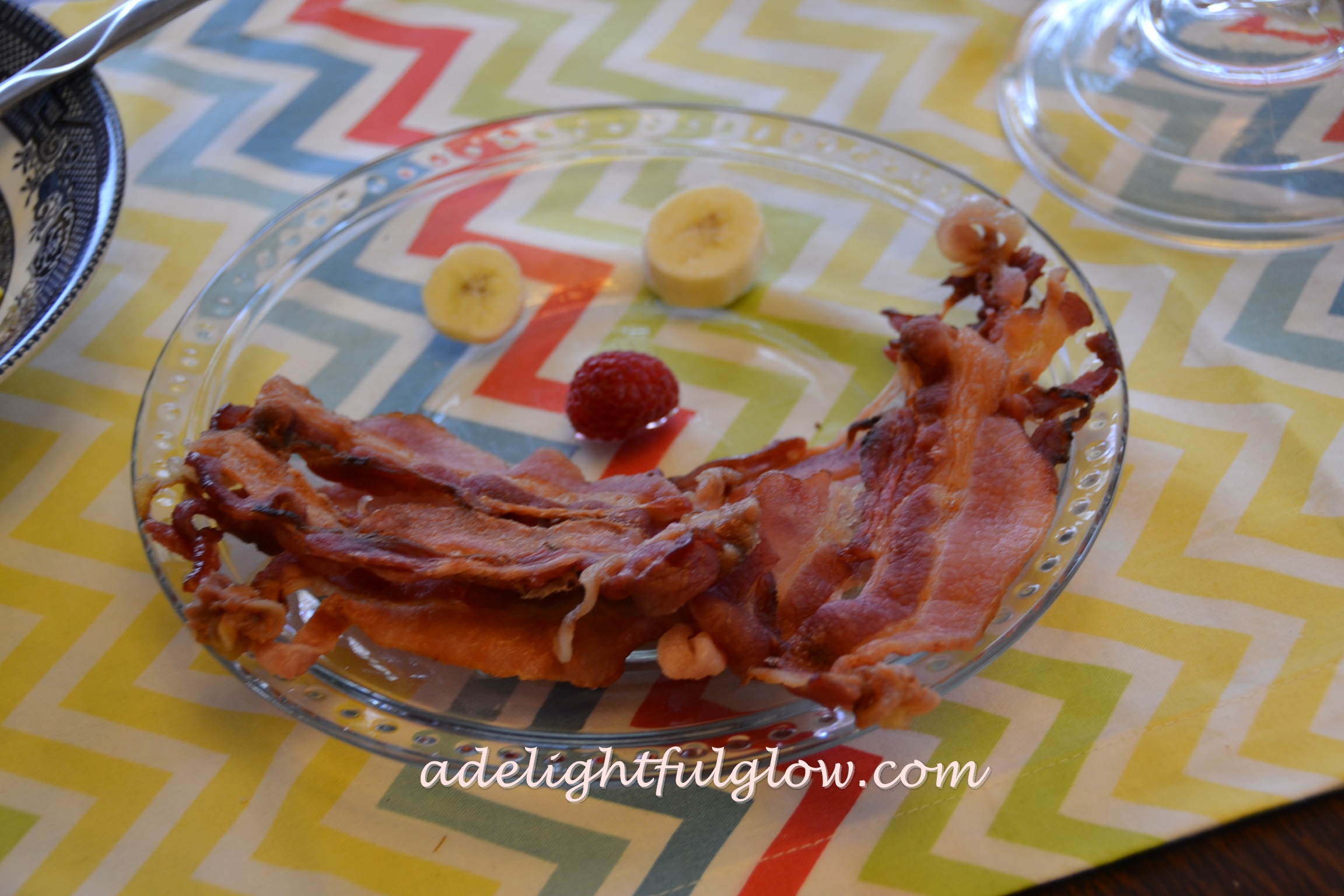 My kiddos fixed breakfast a couple of mornings for us all. They did great. Eggs, bacon, and fruit. And they fixed the table with pretty napkins and arranged the food and lit the tealights.