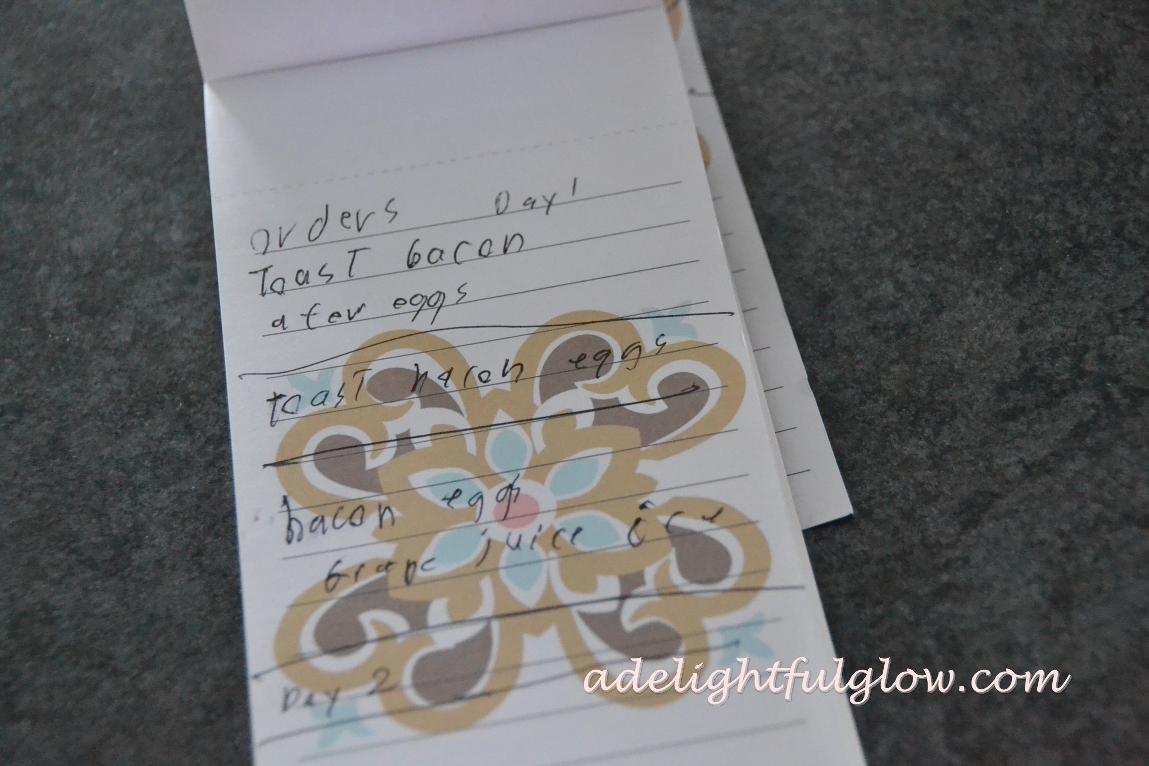 Our waiter took orders for our breakfast. I snapped a quick picture of the order pad when I saw it laying there later.