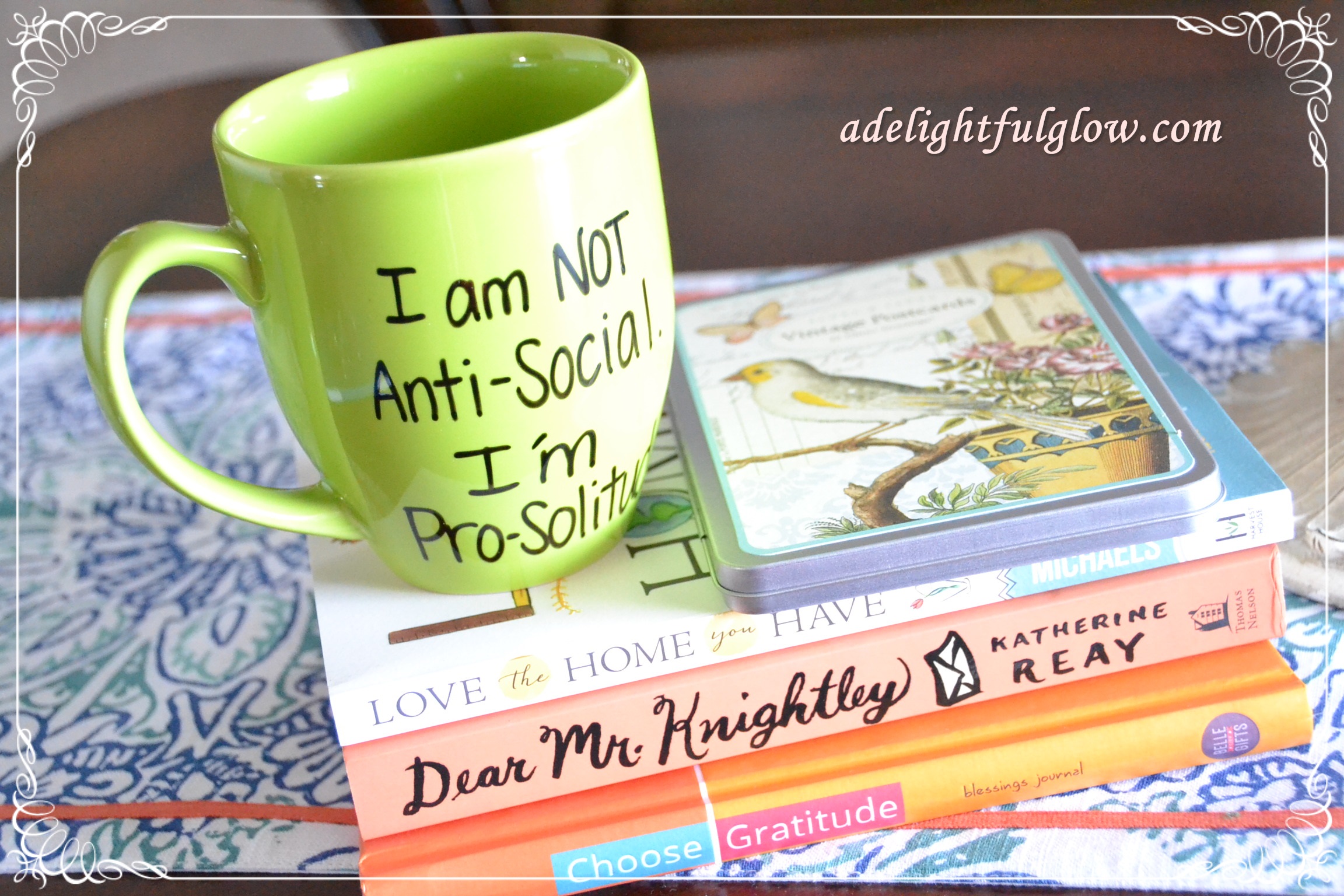 A surprise package in my mailbox on Saturday contained this mug! It totally made my week. So much fun! Still laughing every time I look at it.