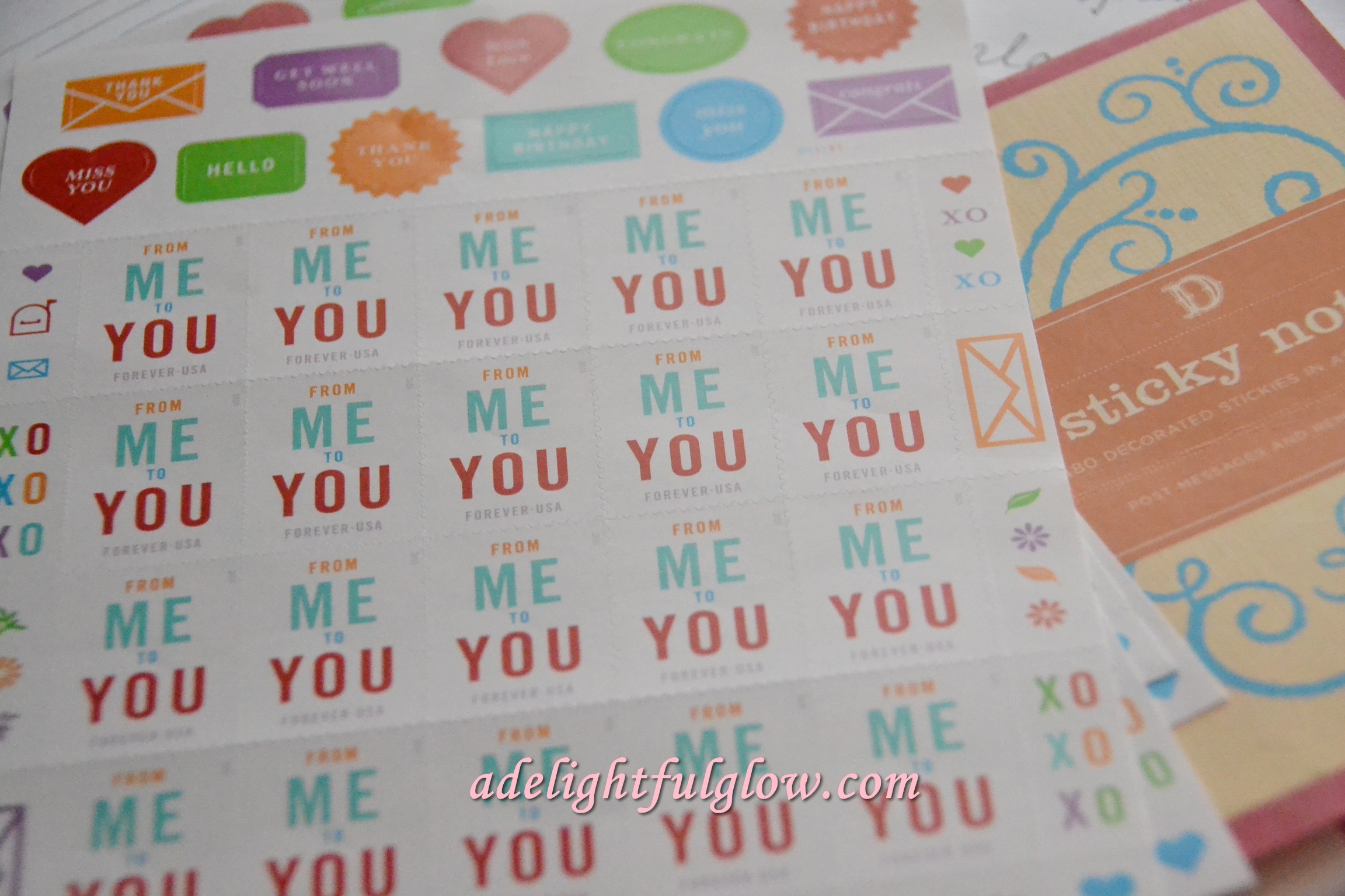 I was thrilled to find these darling stamps at our local post office! I’ve been inspired by happy mail recently, and these have happy mail written all over them! {It just looks like they say from me to you. 😉 } {And obviously I am stuck on the word, darling in this post.}