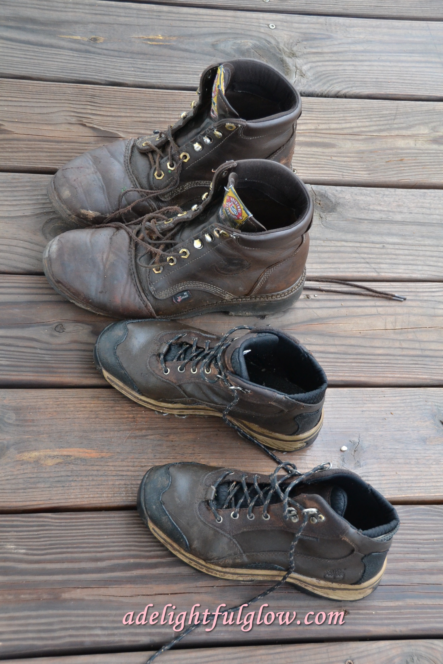 Forecasting rain? Didn’t think so. Boots on porch. Thunderstorm. Soaked and well washed boots.
