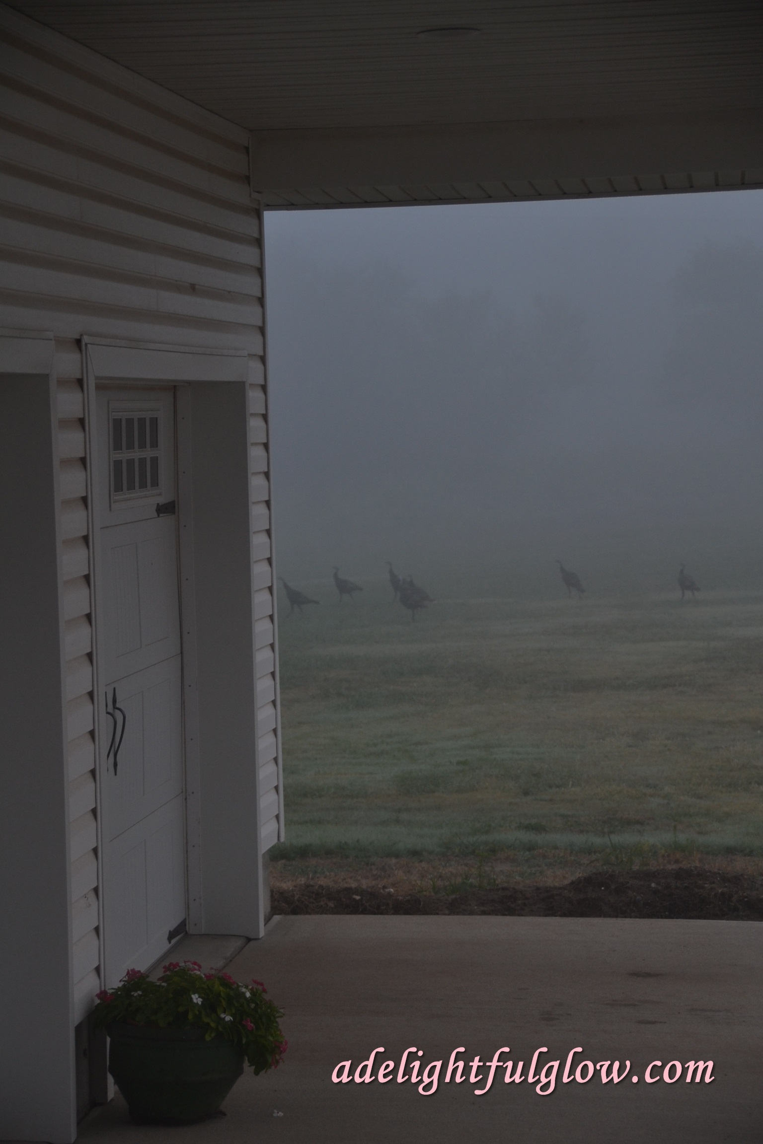 Gray, dampy mornings. Turkeys continue to show up.
