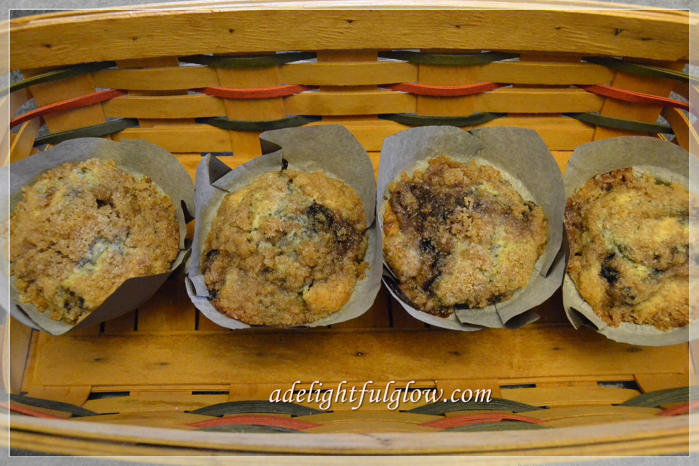 And blueberry muffins baked in these fun, fun muffin liners! A friend gave them to me for my birthday. They were great for this muffin recipe, because it has streusel topping and the height contained the streusel. It was awesome!