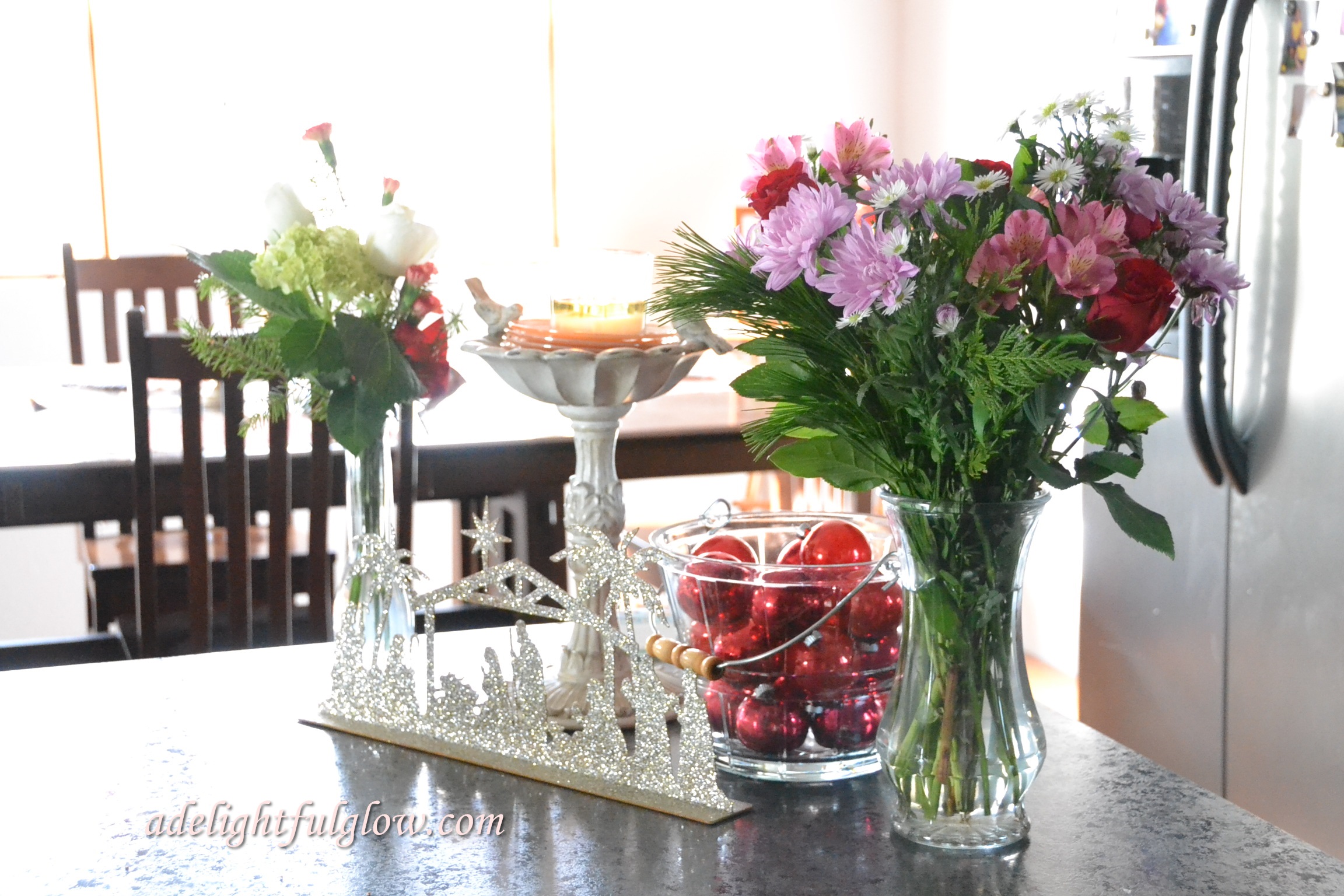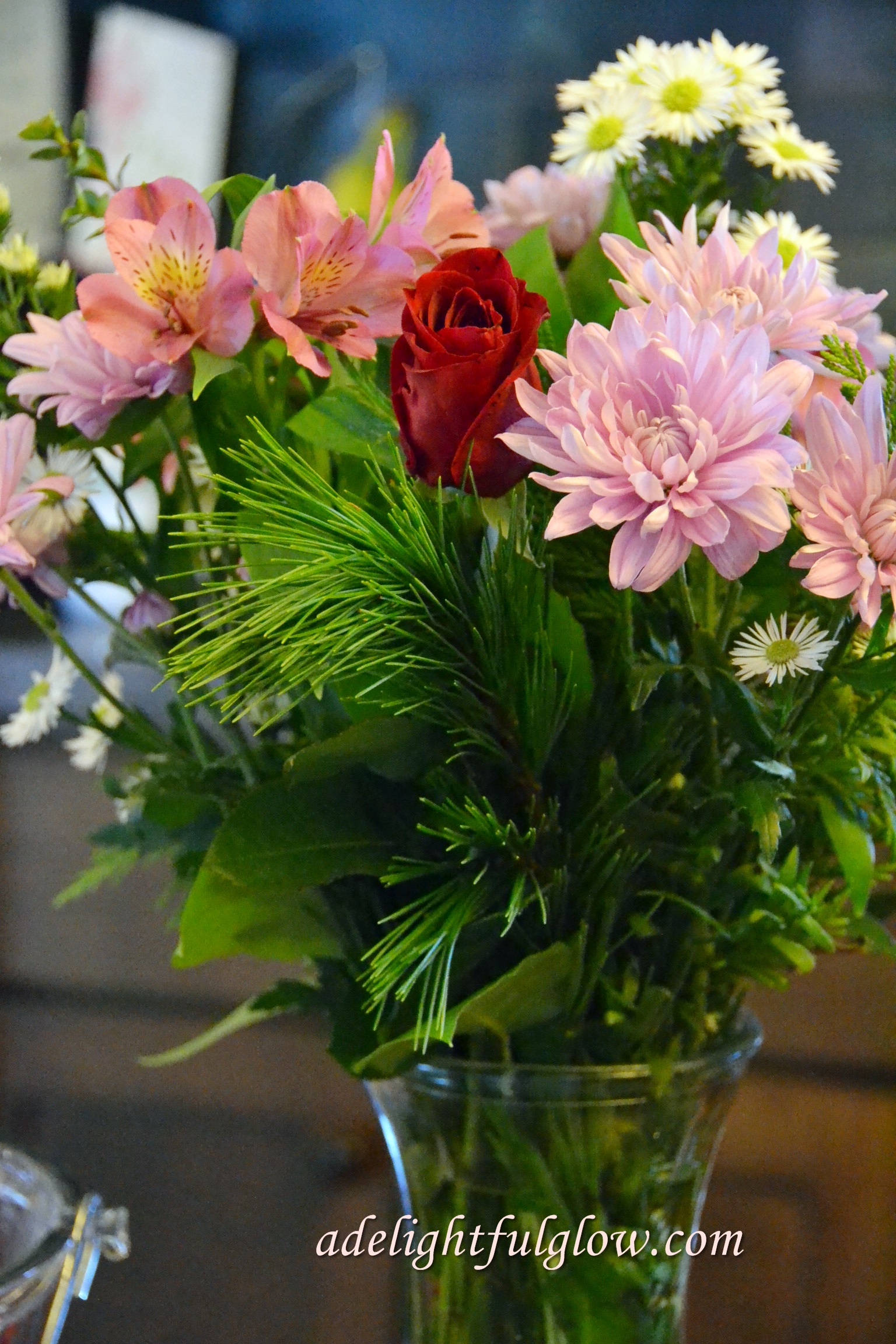 Some of the perks to back surgery have been the love and care poured out on us from friends and family. Fresh flowers. {LOVE. One of my absolute faves. And this time of year has been fun. The bouquets have really pretty greenery and neat Christmasey stuff in them.} Food. I think my family is eating better than if I was fine!!! {Ahem.}