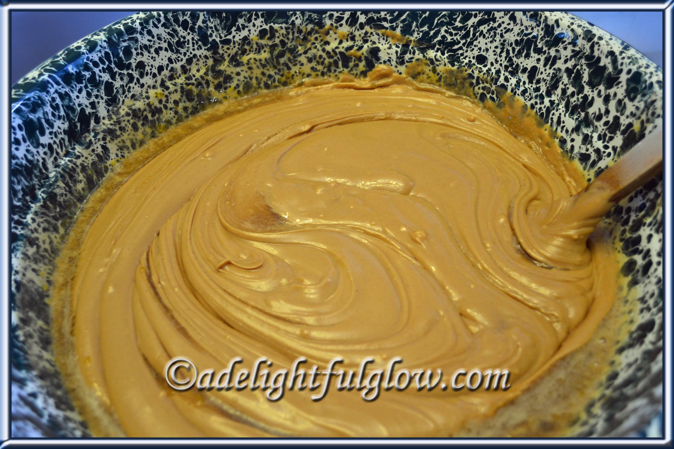 *I cream the butter, peanut butter and baking soda together in my Kitchen Aid Mixer and then add it to my large mixing bowl with the rest of my ingredients.