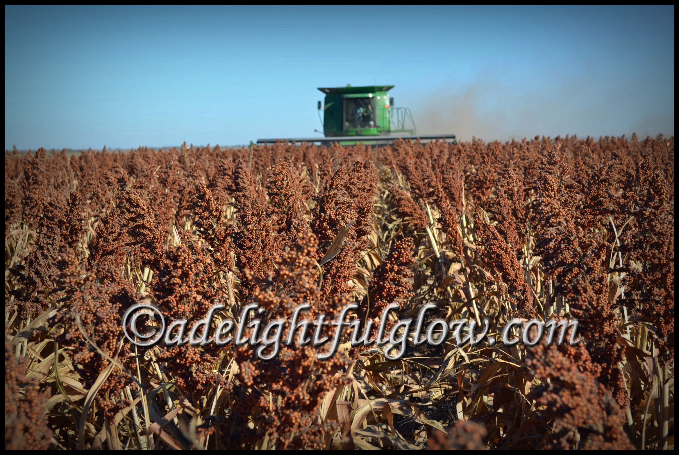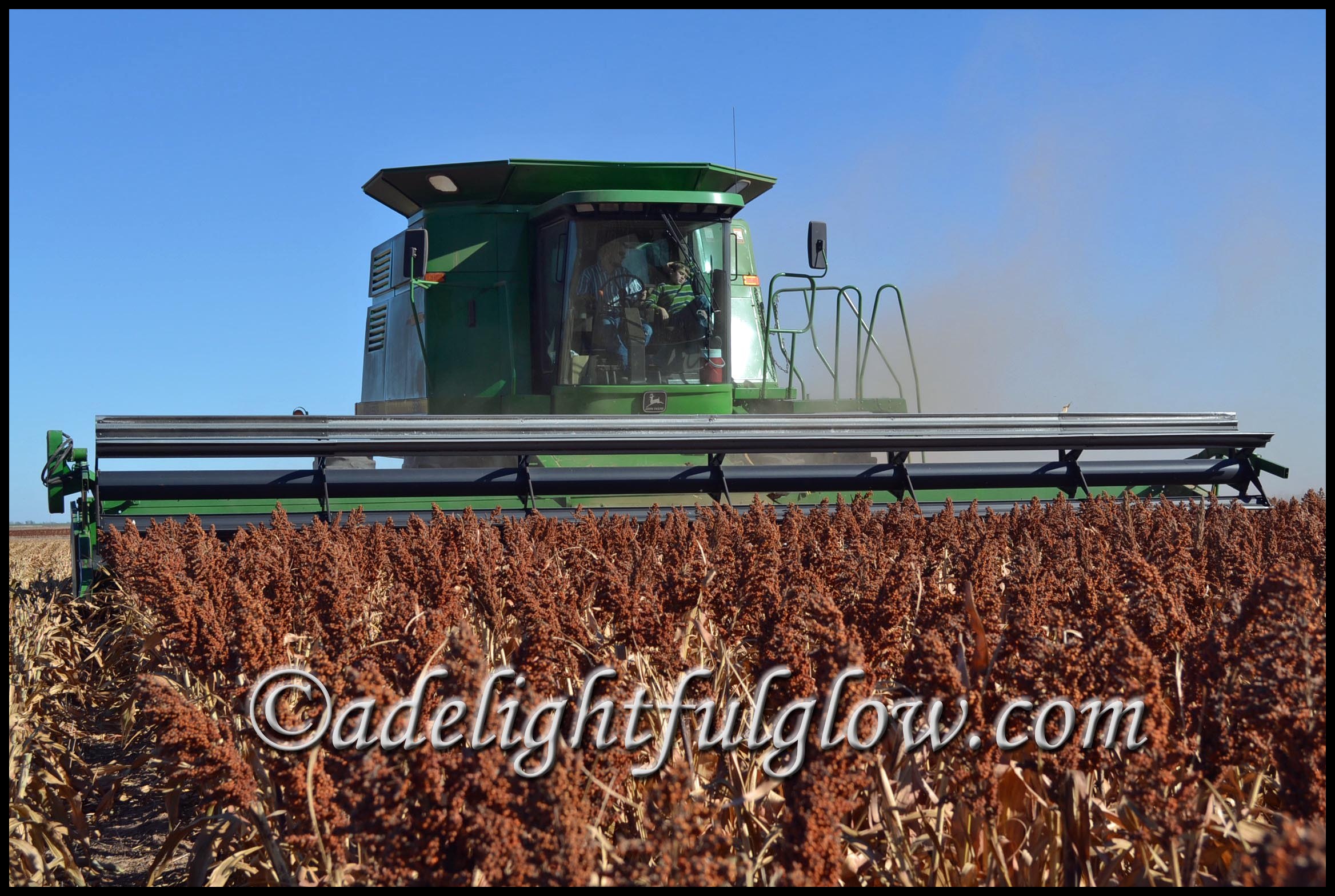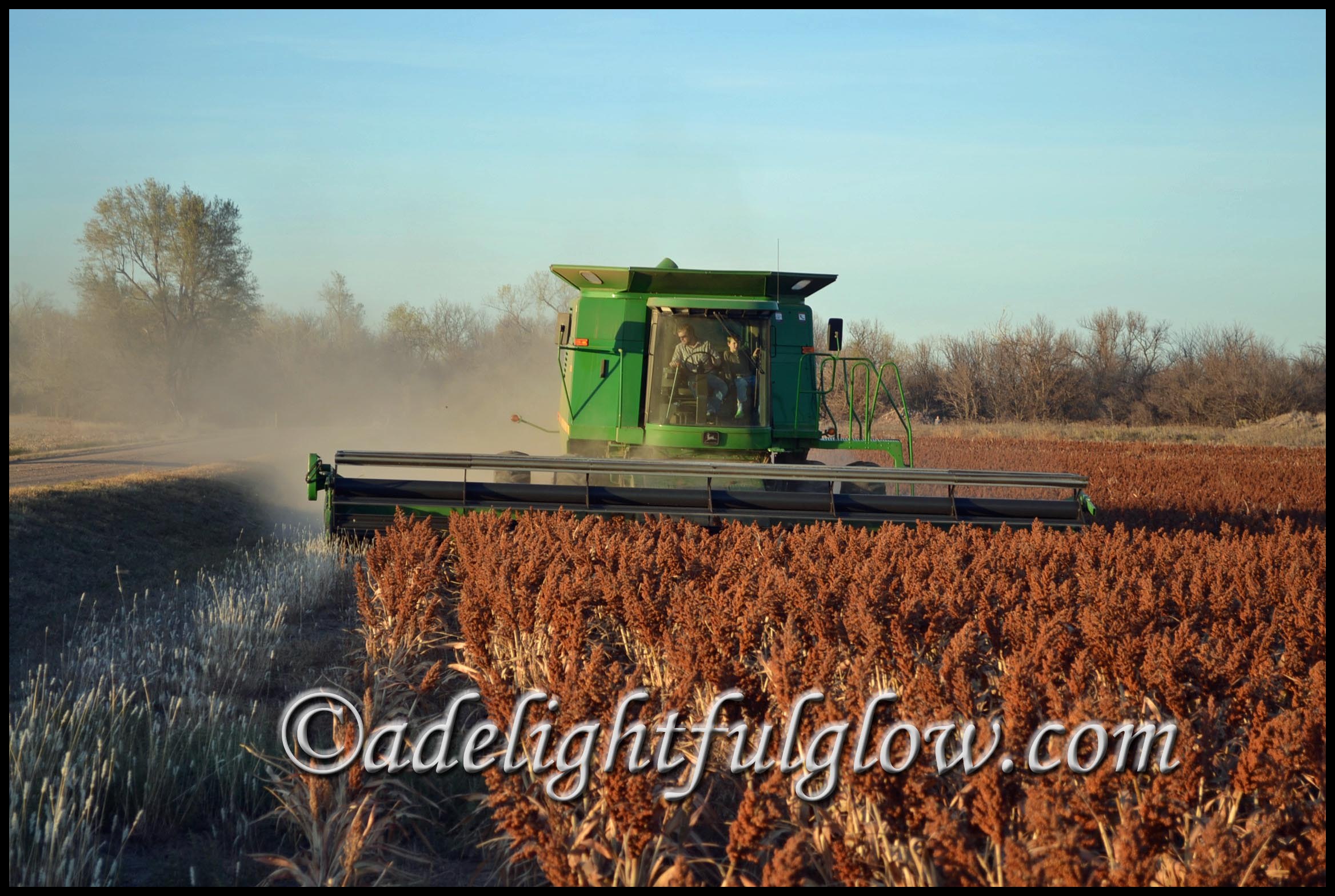 Pictures of cutting our dryland milo that I’ve been wanting to post! Editing and posting pictures takes time and I never get it done as quickly as I’d like! Somedays I think blogging is too time consuming and other days I love it! I do love taking pictures and editing them and this is a great way of journaling the highlights I want to remember. We don’t have a hugely unique story or great, awesome adventures to share. Just a lot of normal life, but we’ve been blessed so much! I’ve been joining in 21 Days of Gratitude. Though I have days that I feel overwhelmed by life or envious of others or I wonder if I’ll ever learn to be content, when I start counting my blessings, it doesn’t take long to realize they’re endless! It blesses me just to take time to be specific about things in my life that I’m so very thankful for. This year, one of our blessings, has been the harvest from the fields. It is always a blessing, but I’ve thought about it more this year as time and again the rain did not come like we hoped it would. Yet God has blessed us and is taking care of us. This week especially, as we celebrate Thanksgiving, we thank Him.