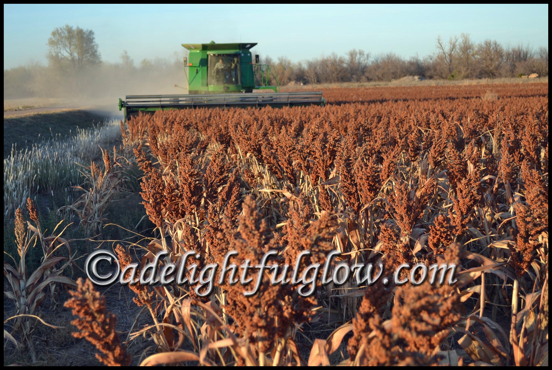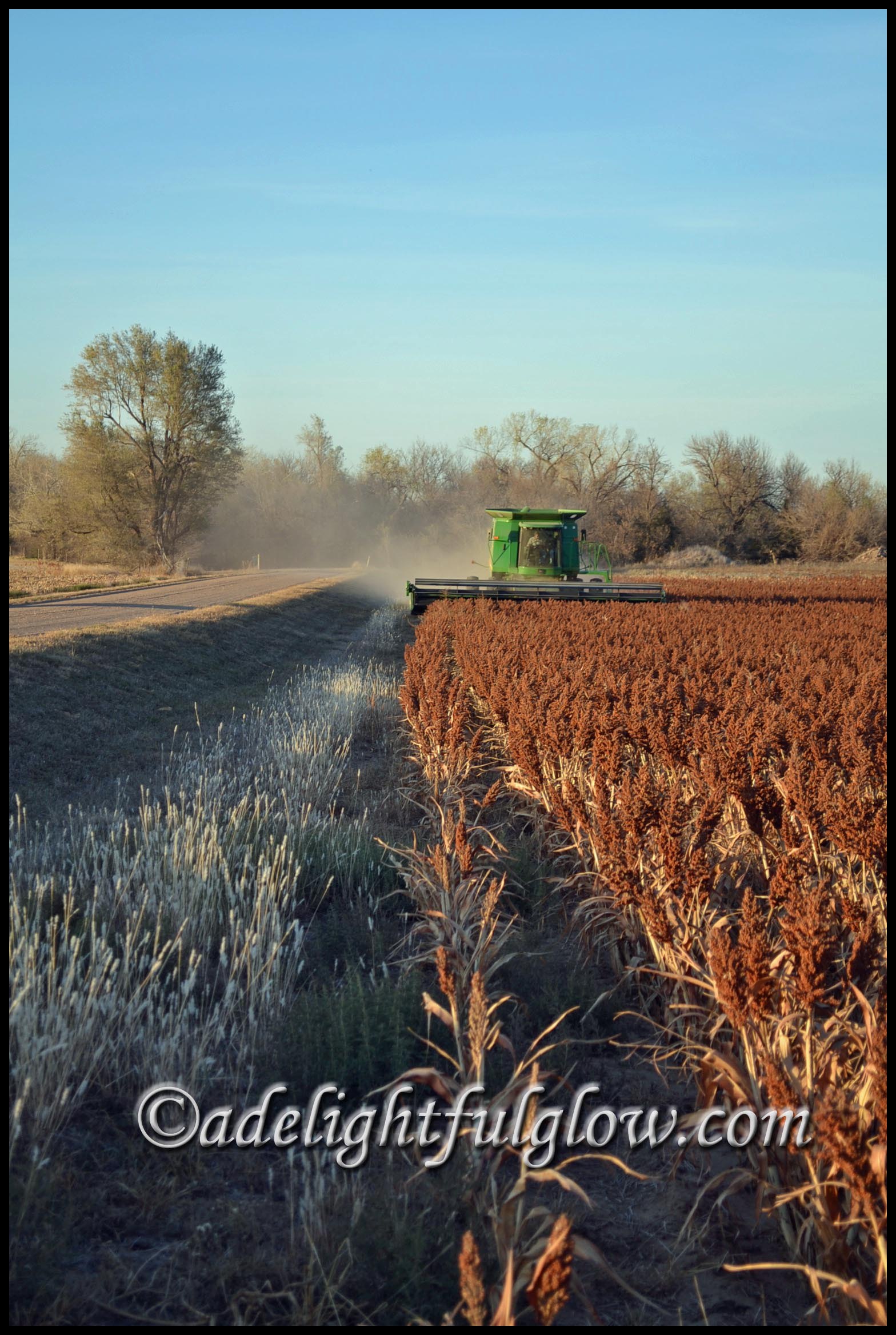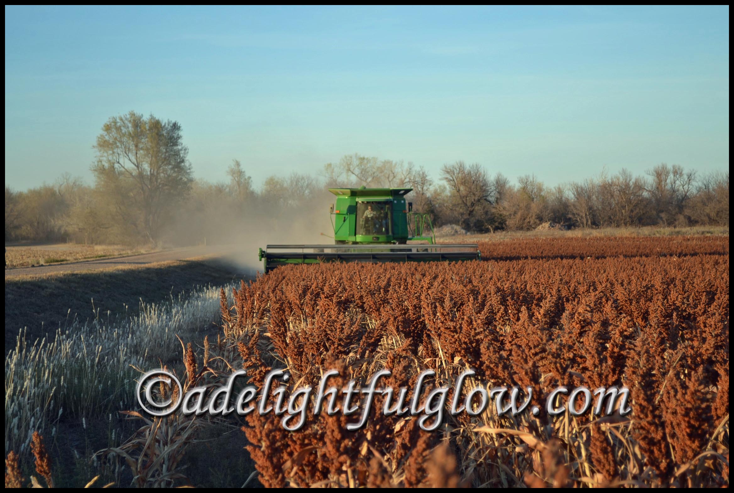 Pictures of cutting our dryland milo that I’ve been wanting to post! Editing and posting pictures takes time and I never get it done as quickly as I’d like! Somedays I think blogging is too time consuming and other days I love it! I do love taking pictures and editing them and this is a great way of journaling the highlights I want to remember. We don’t have a hugely unique story or great, awesome adventures to share. Just a lot of normal life, but we’ve been blessed so much! I’ve been joining in 21 Days of Gratitude. Though I have days that I feel overwhelmed by life or envious of others or I wonder if I’ll ever learn to be content, when I start counting my blessings, it doesn’t take long to realize they’re endless! It blesses me just to take time to be specific about things in my life that I’m so very thankful for. This year, one of our blessings, has been the harvest from the fields. It is always a blessing, but I’ve thought about it more this year as time and again the rain did not come like we hoped it would. Yet God has blessed us and is taking care of us. This week especially, as we celebrate Thanksgiving, we thank Him.