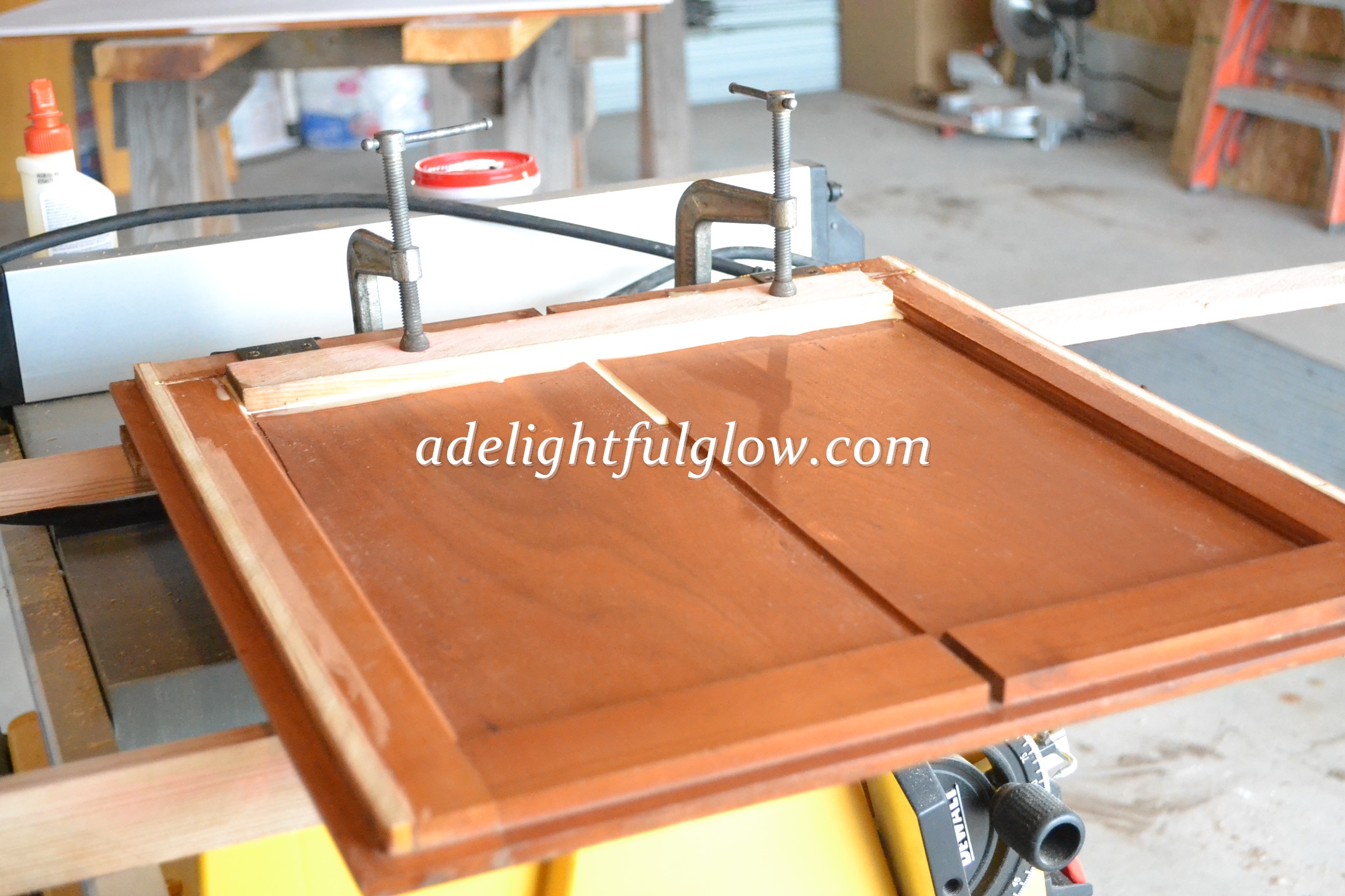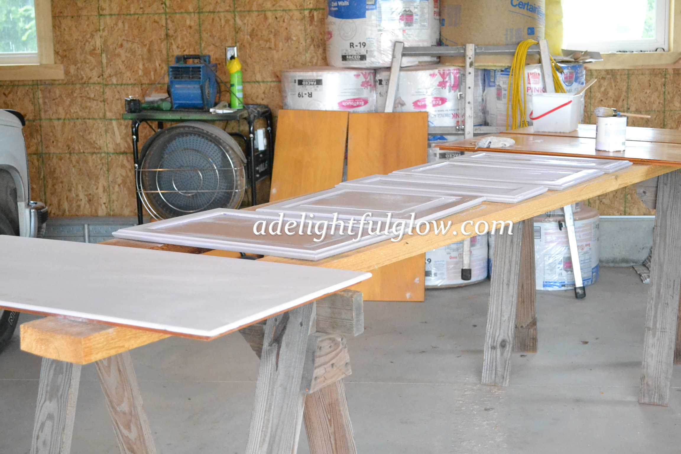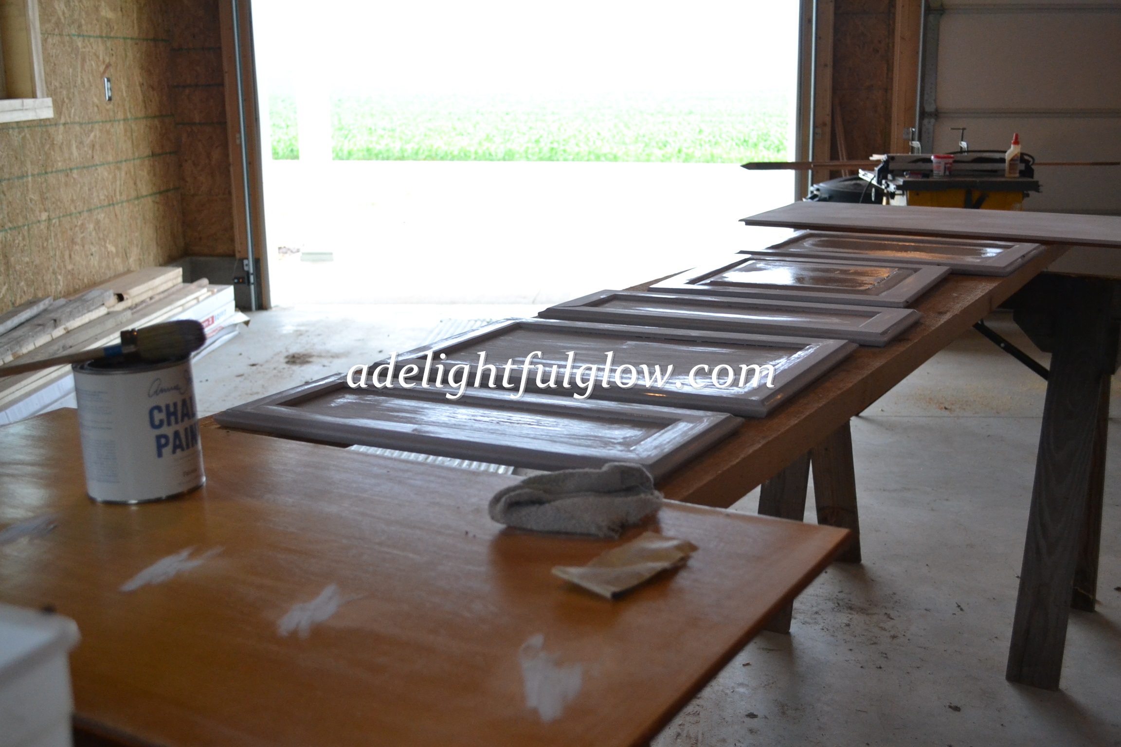After two years of living in our new-to-us house, I started in on the project. Matthew helped me get the doors off and I worked on the project a few afternoons one week. I got the doors pretty well along and the frames done and then between other things happening and my back stuff, the cupboards got put on hold.