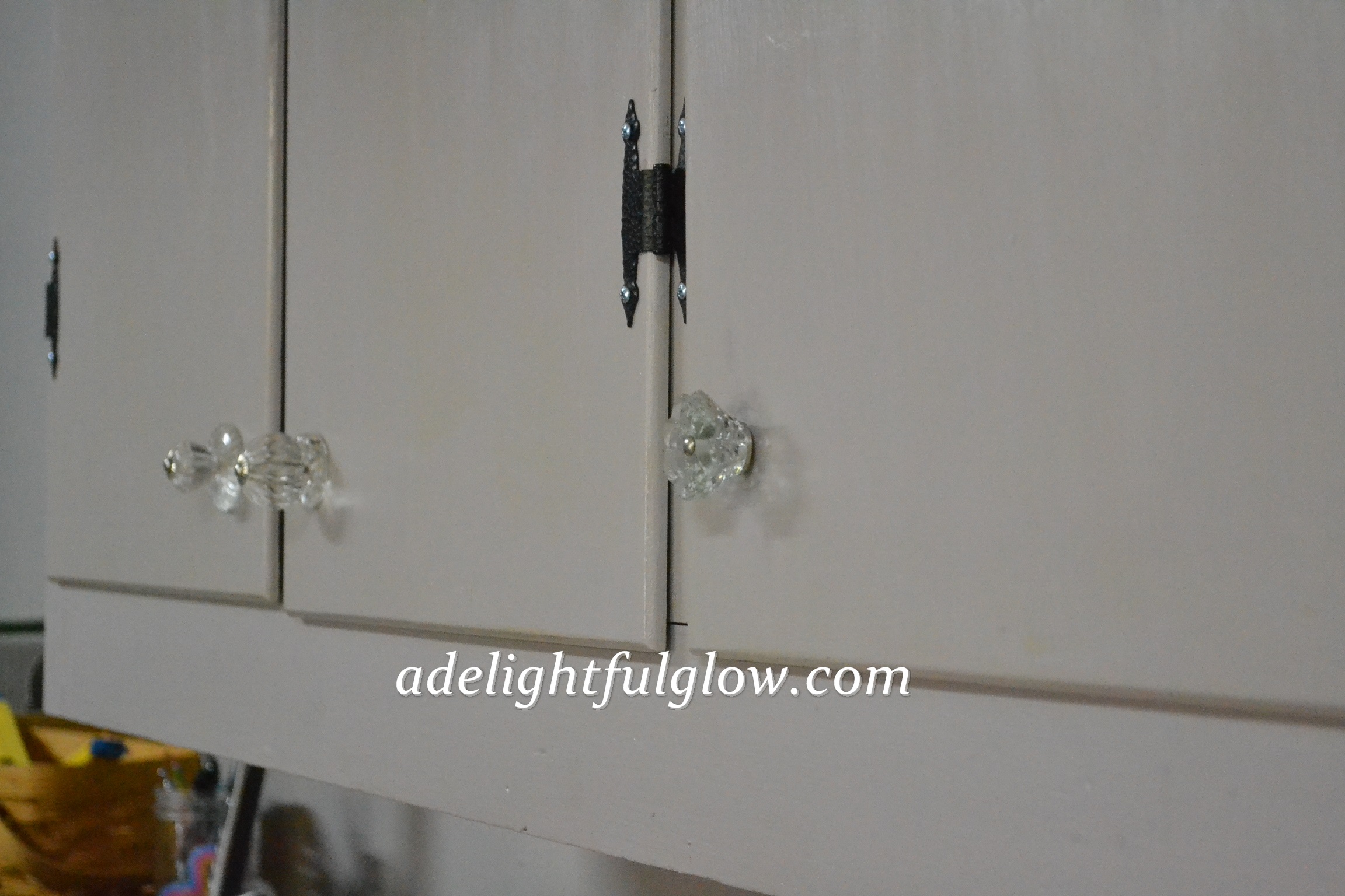 I also loved the idea of mismatched glass knobs, like my sister put on a cupboard she painted and redid.
