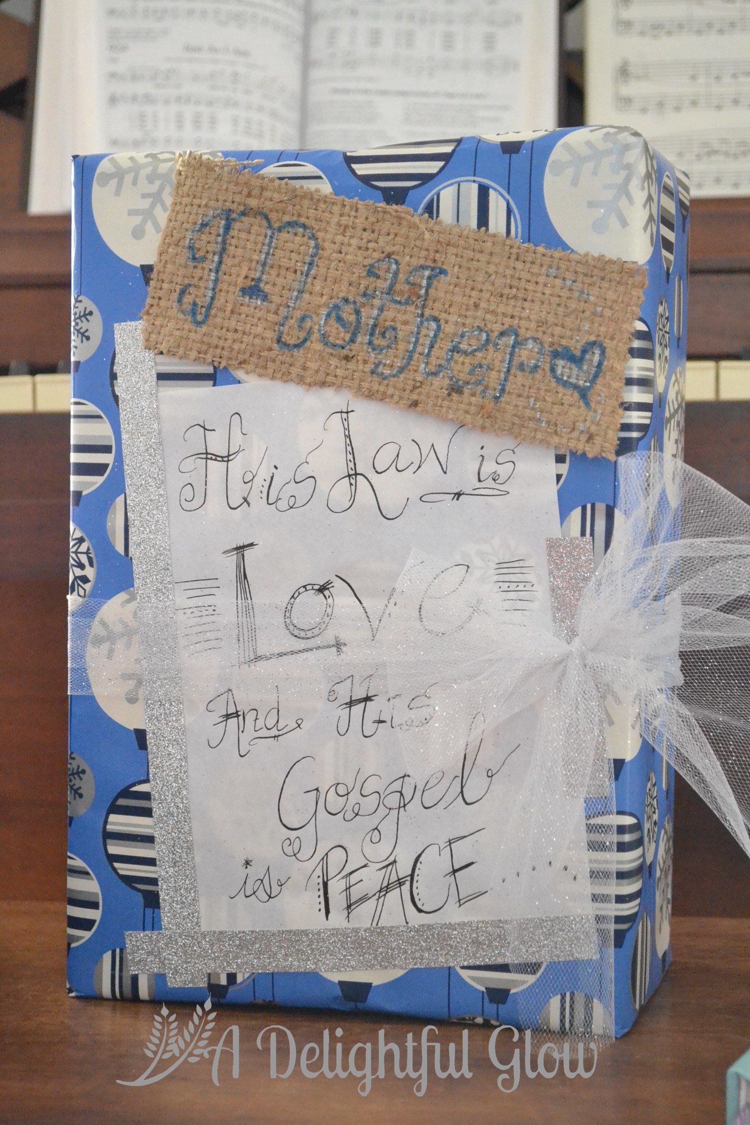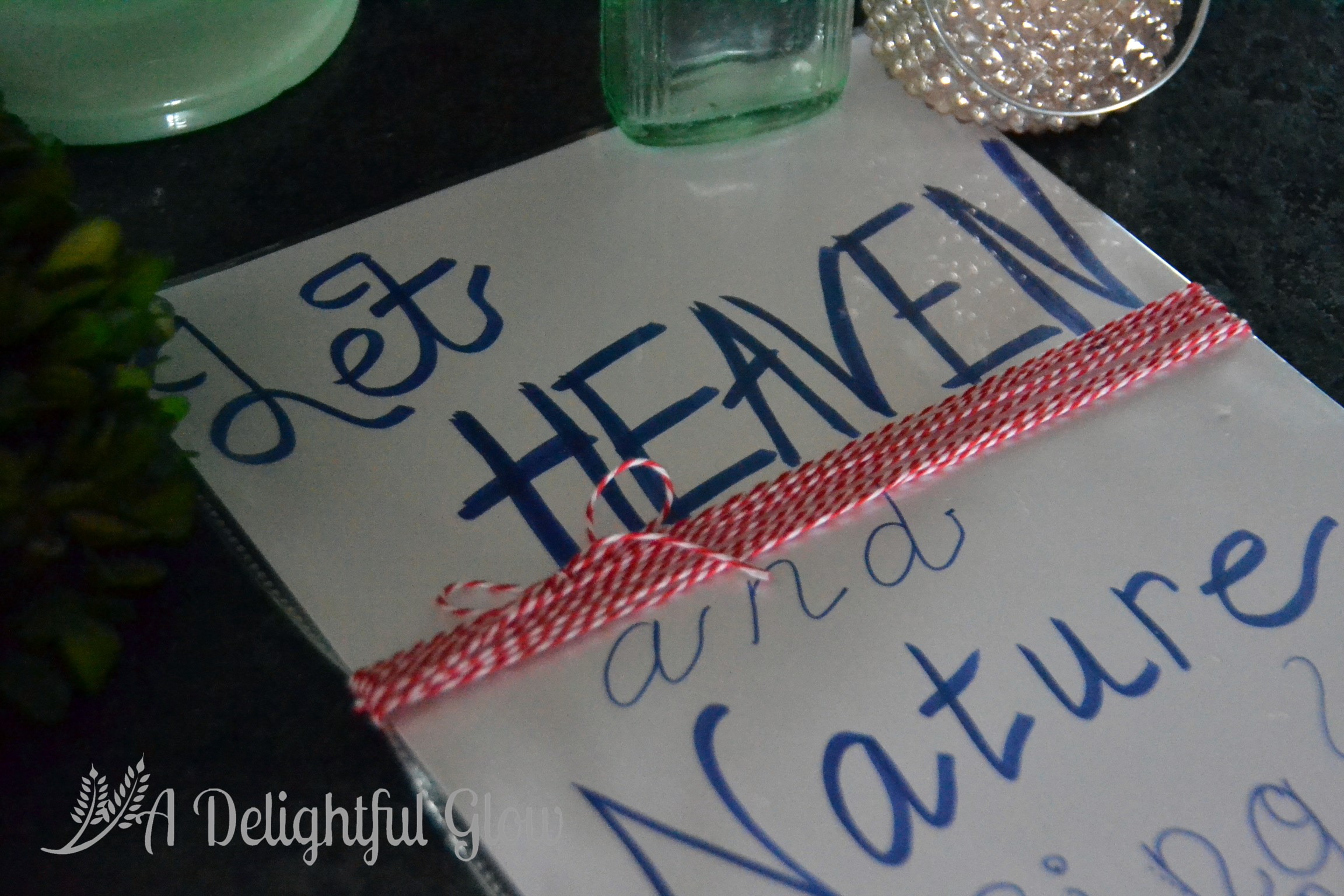 I wanted the look, so I used brass fasteners in each corner and added a ribbon to hang it with.