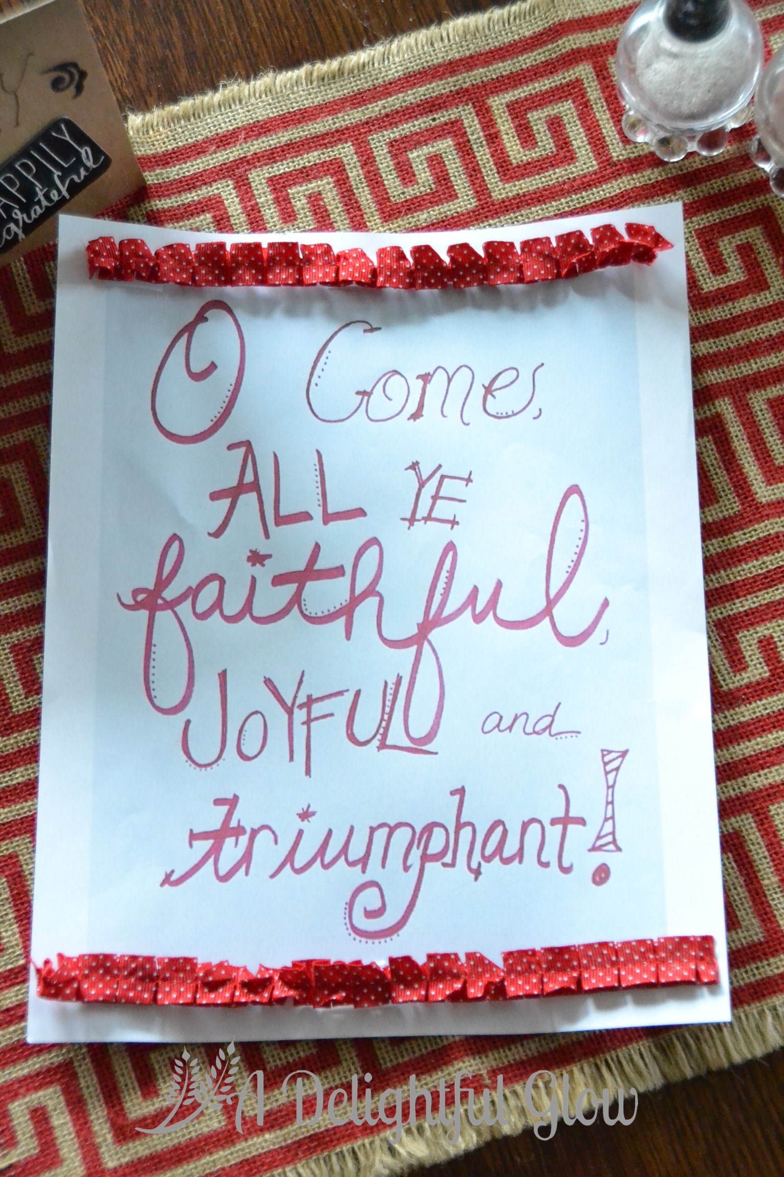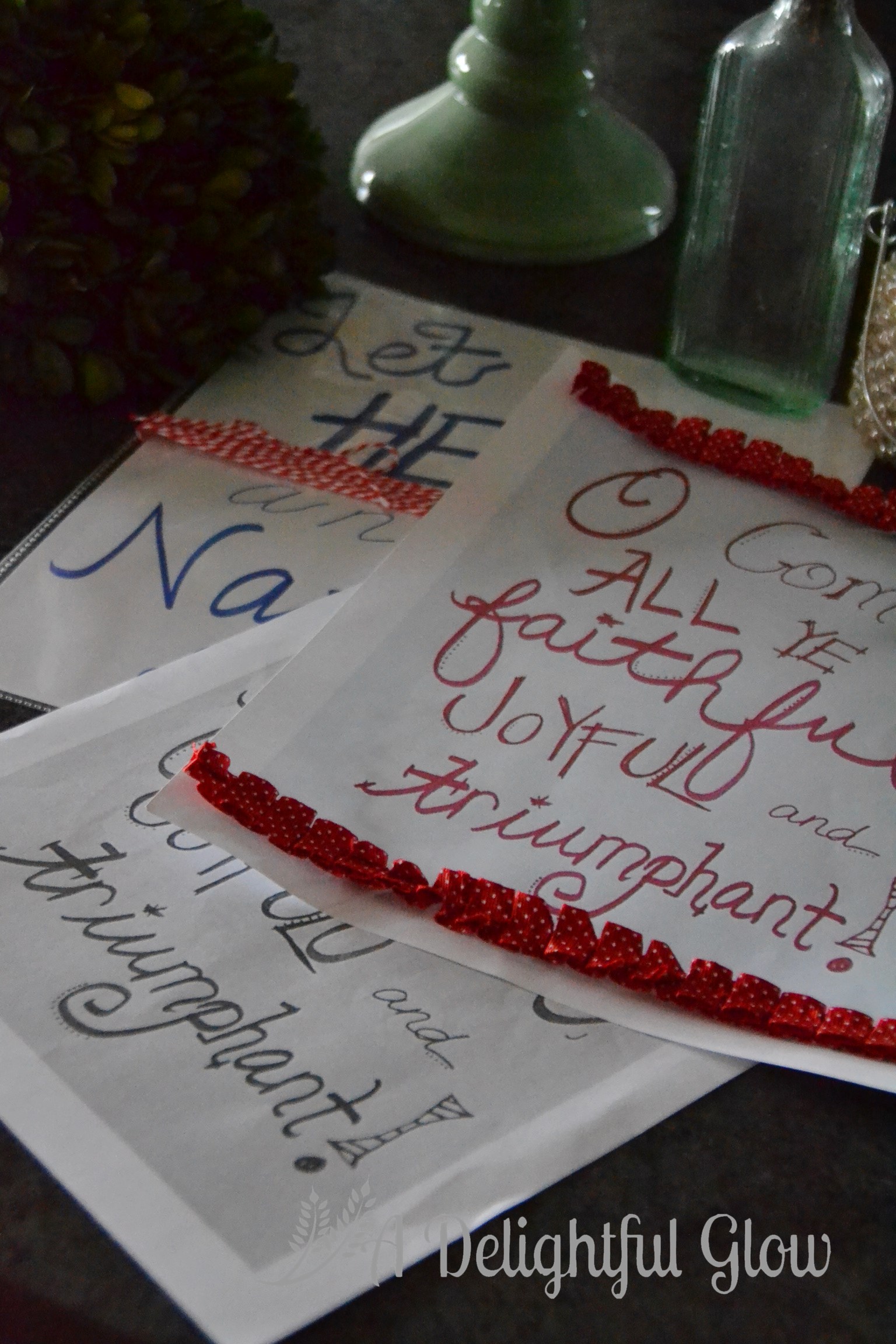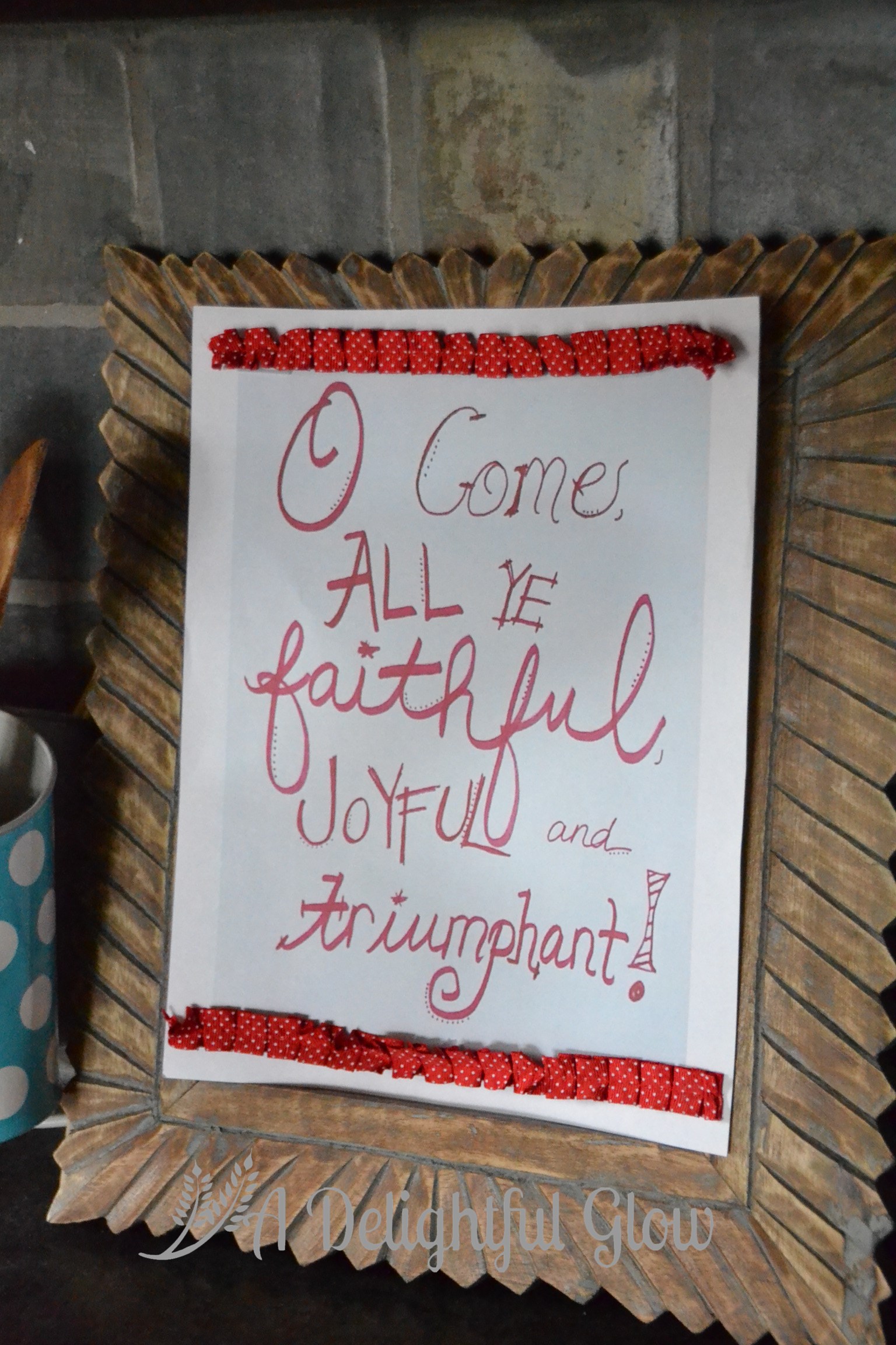Next I took a print and added ruffly, red ribbon at the top and bottom. Amazing what quick and simple detailing can do. 🙂