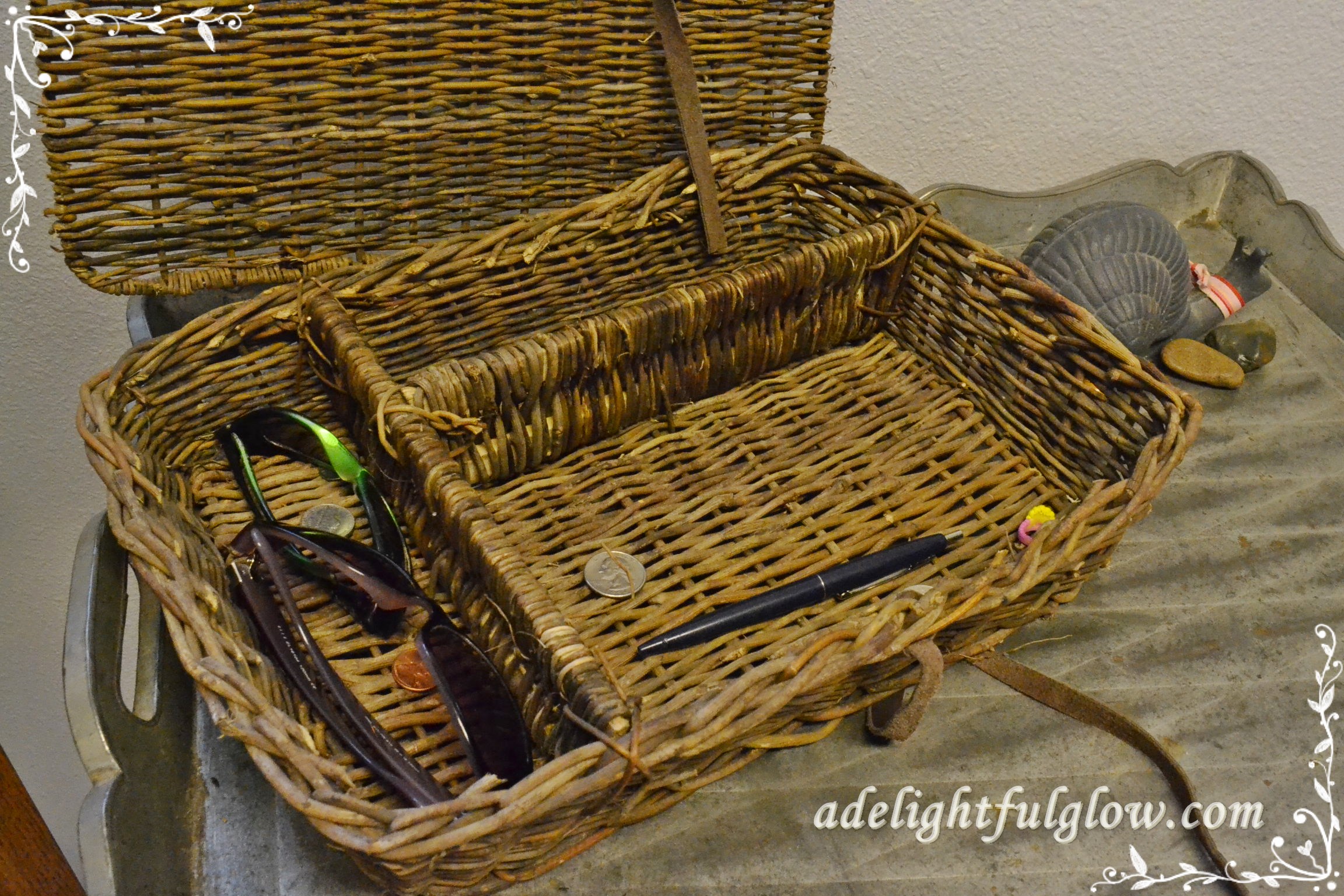 The shoes that used to mostly be in the basement were gravitating towards the laundry room. A handy place for sunglasses, keys, a few tools, and sundry items would be a good idea. What could she try? What small changes would offer some storage solutions?