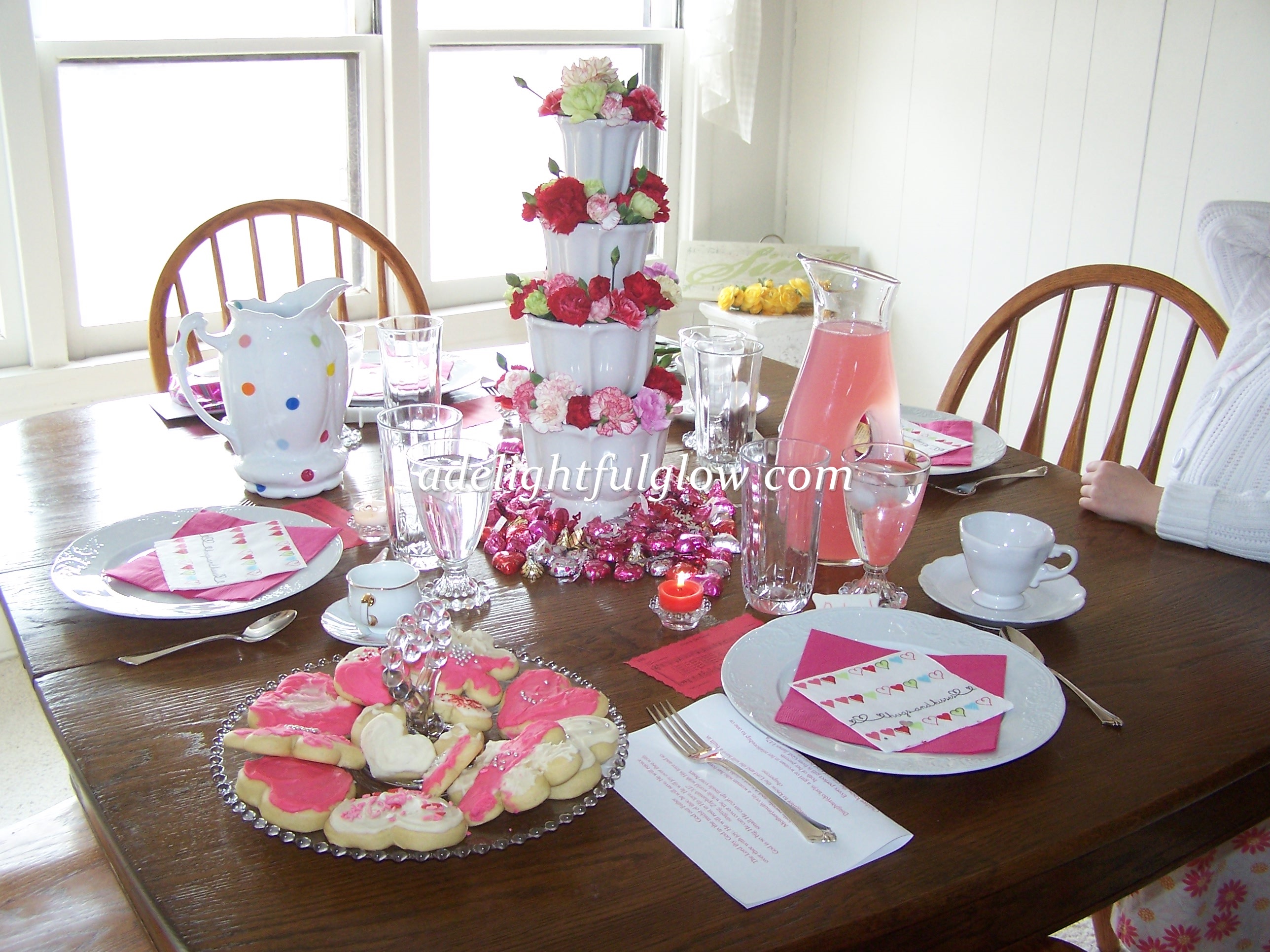 I dug around a bit and came up with these pictures from a mother-daughter Valentine party we hosted when my daughter was little. {Though she seemed big then!}
