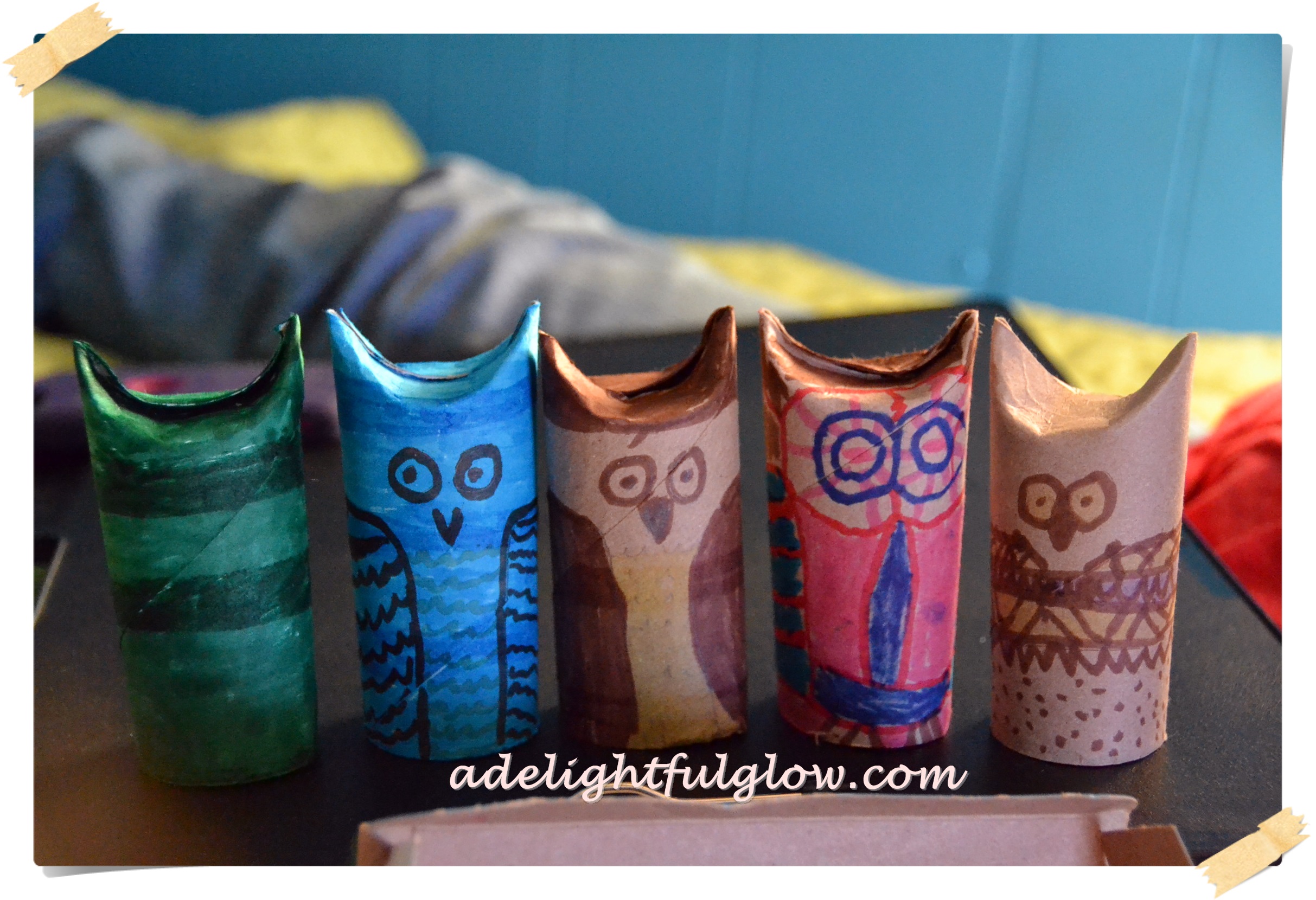 She was saving them for a shoebox organizer thing made with the tubes inside and used to organize pens & pencils & markers and also found this idea and use for the tubes.