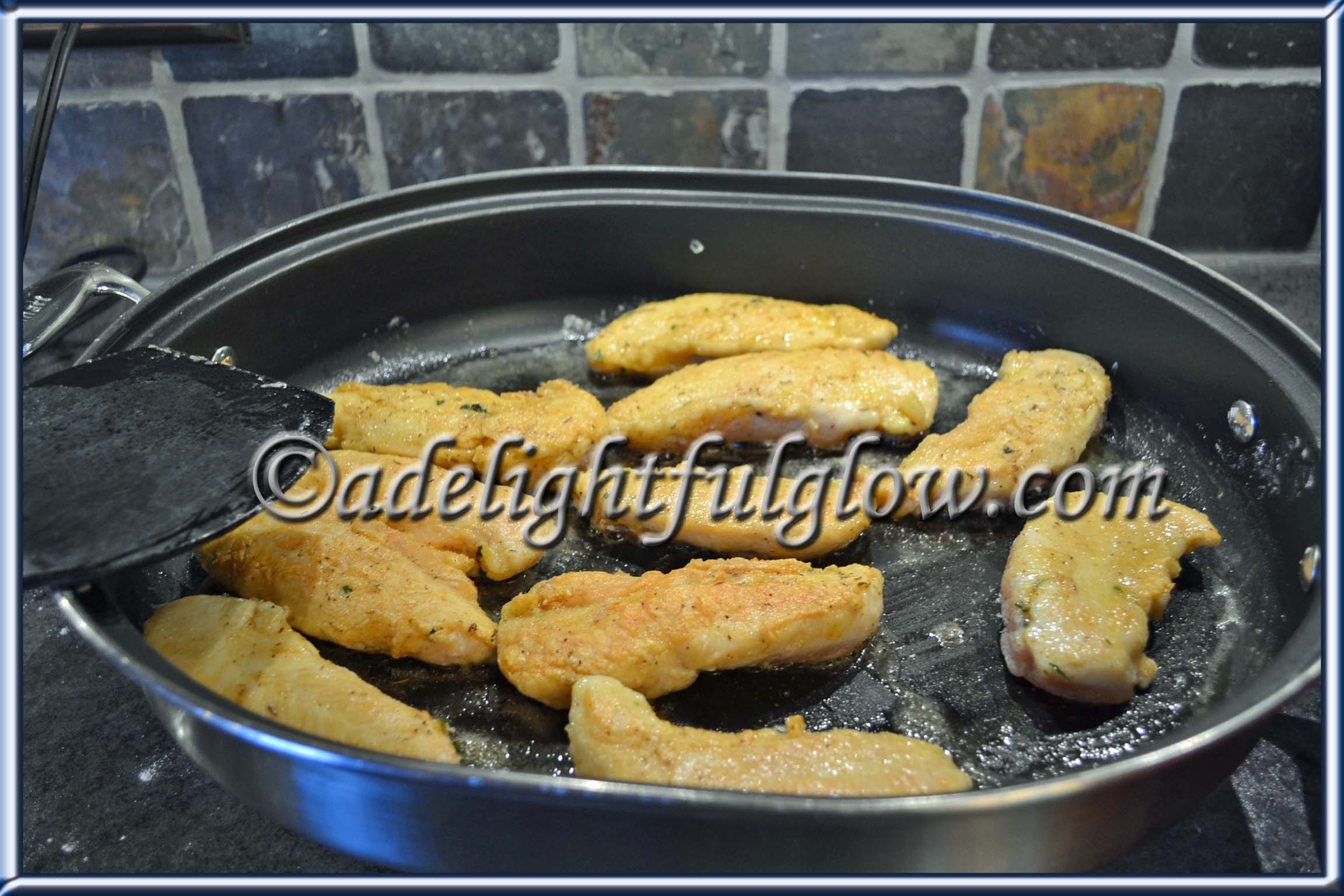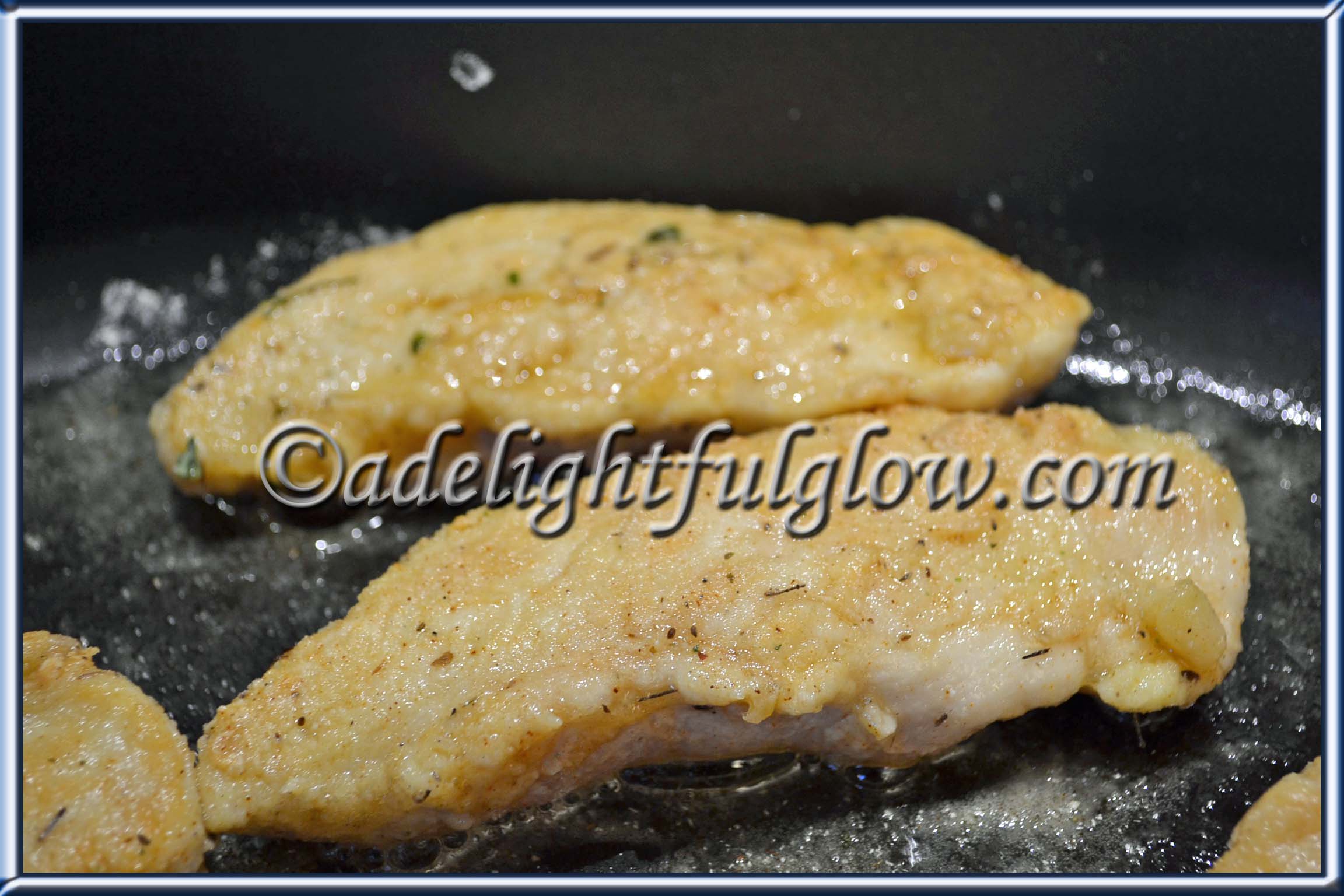 - Coat meat with flour mixture. Pour some oil into a skillet and heat. Brown chicken on both sides. Transfer to a 9x13 baking dish.