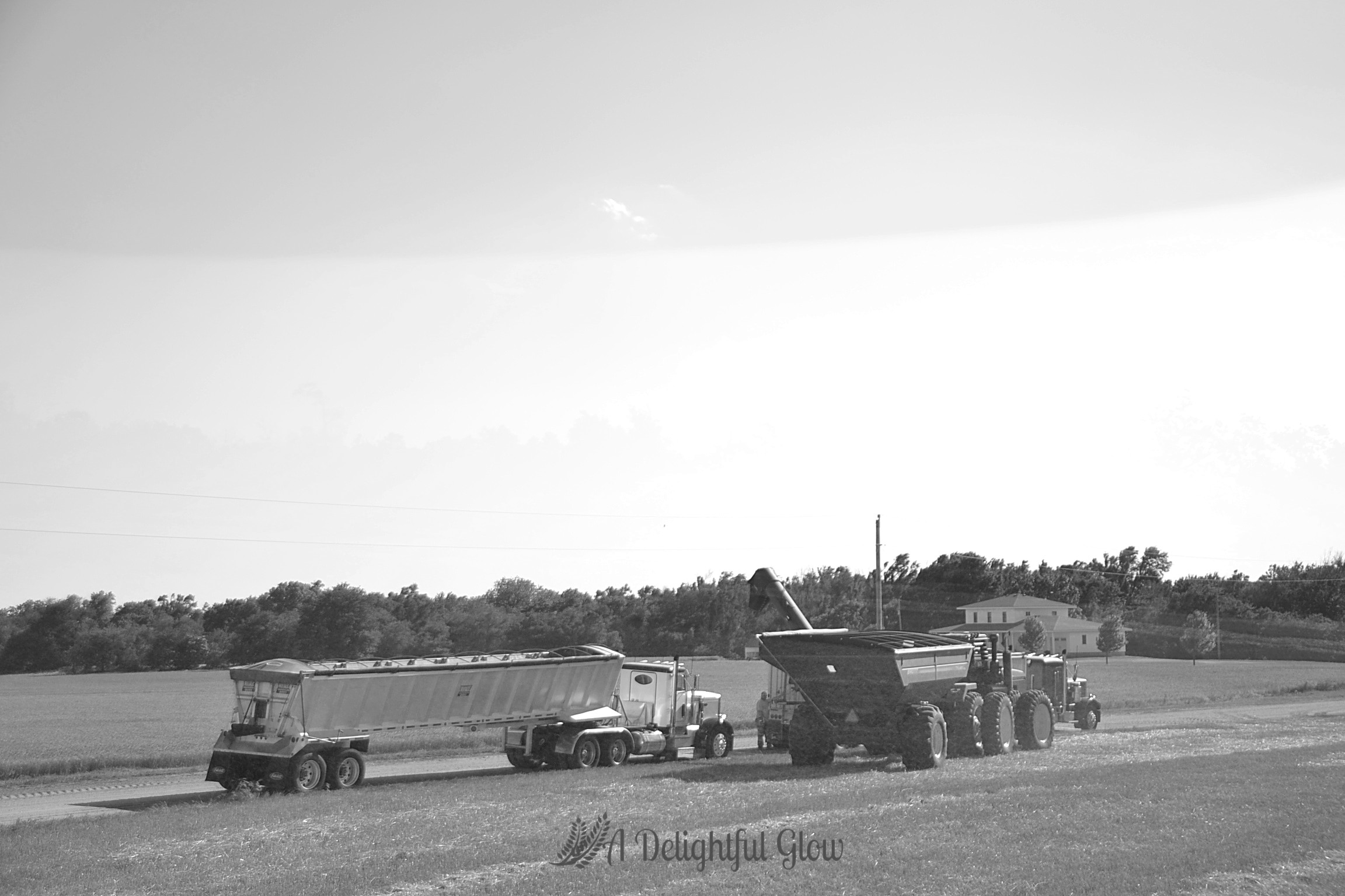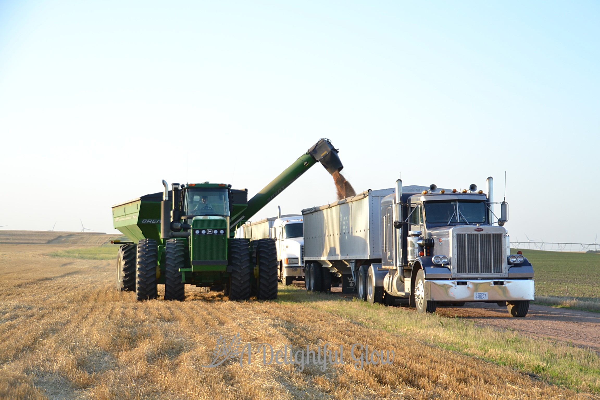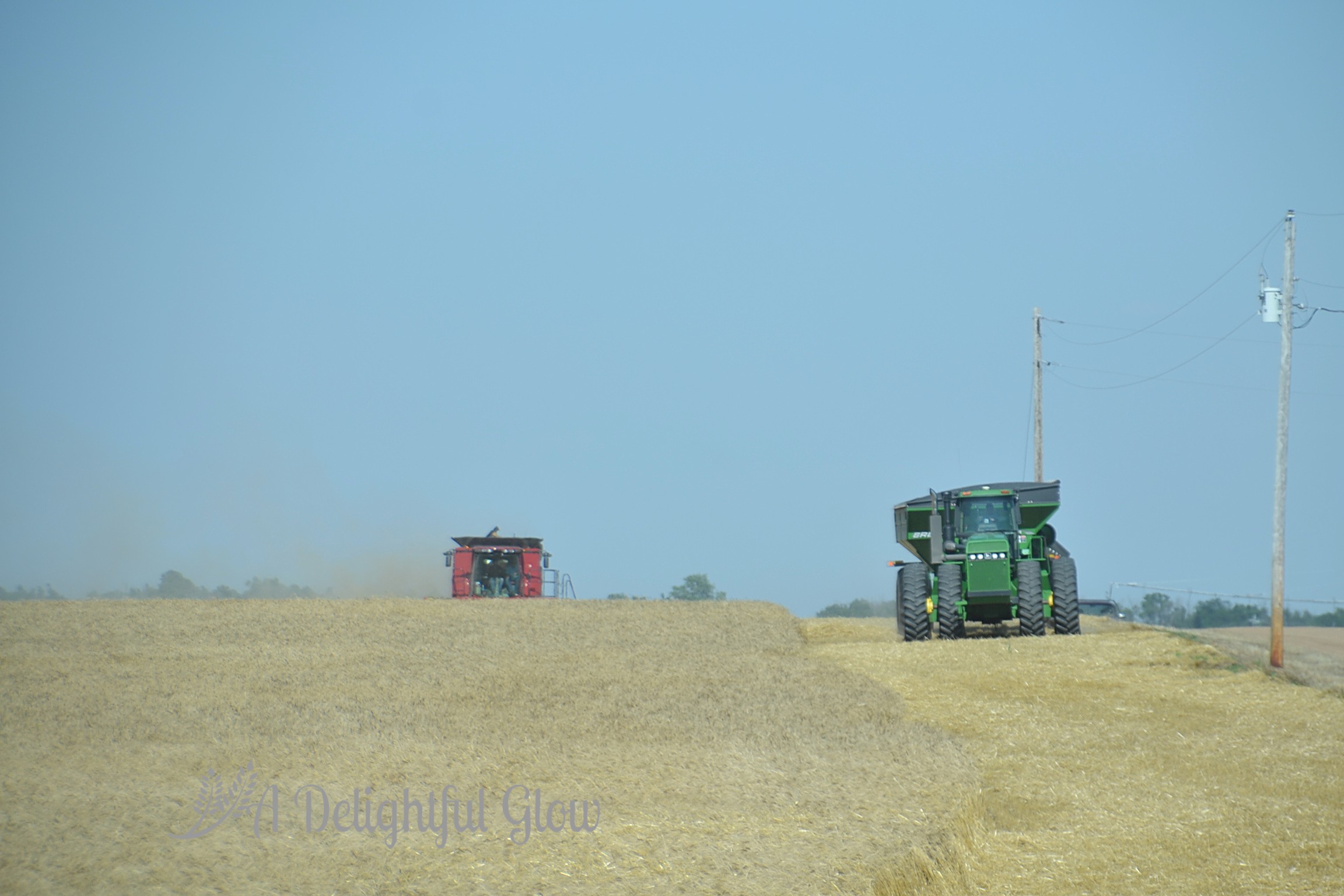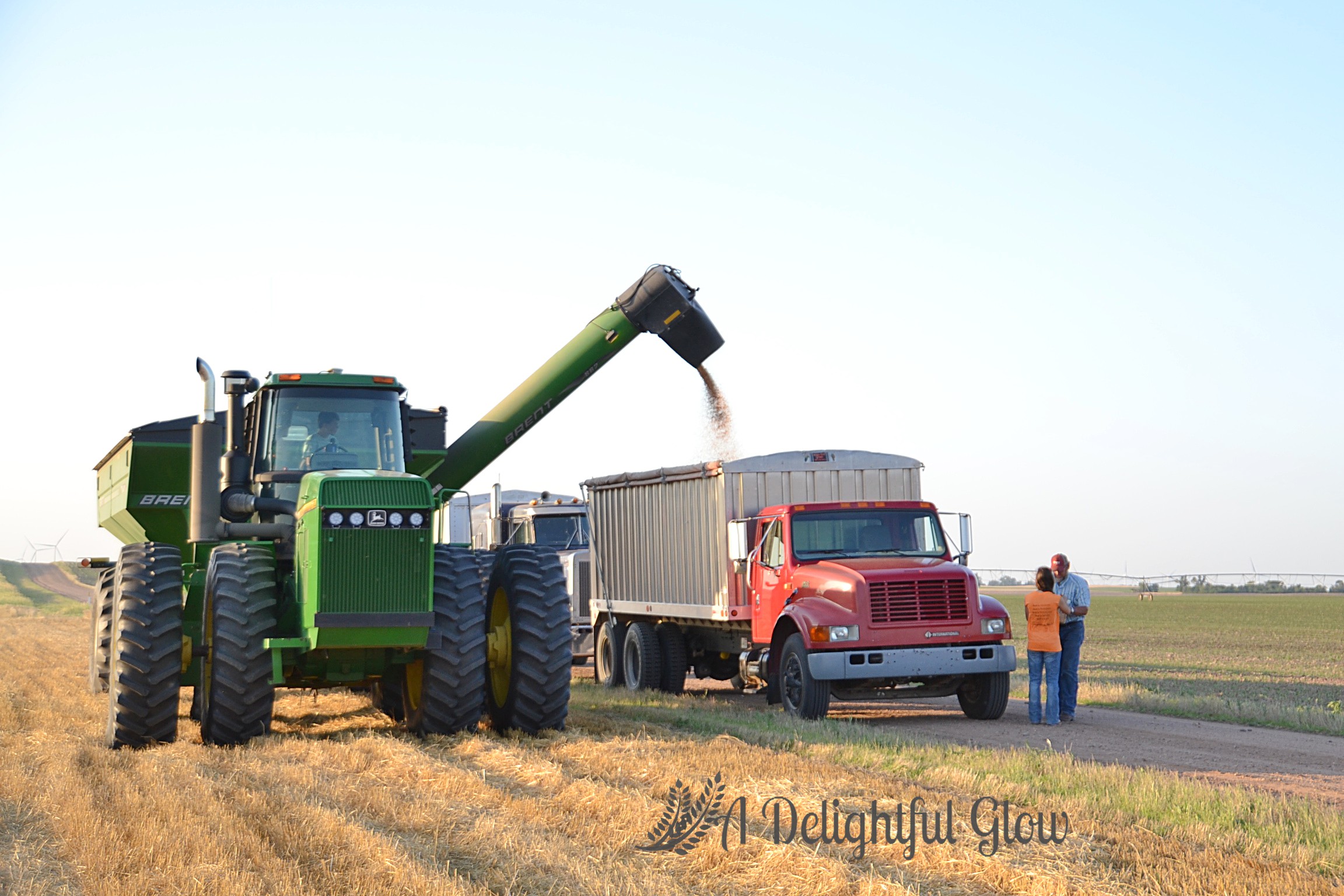 We pass out suppers and combines and drivers continue their laborious song. Around and around. Dust and dirt hang heavy on the still air, rubbing a haze right along the horizon.
