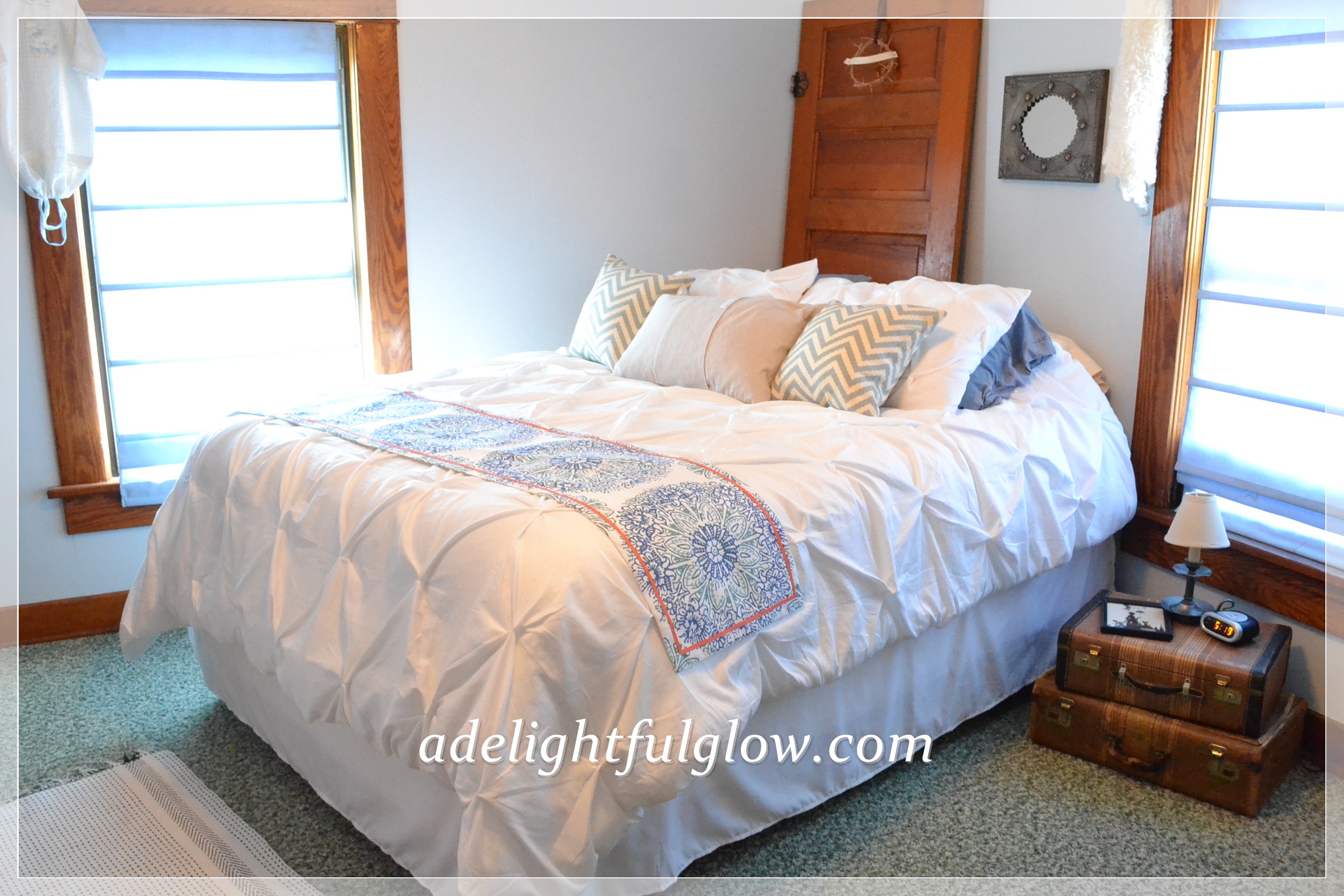 So, that’s what I did. And I dearly love it all painted up! It is much brighter and I enjoyed making a prettier space. I had just used pieces I had and while it was fine and it was stuff I genuinely like, it didn’t really go together and wasn’t really what I envisioned. I also knew it didn’t matter, and over time, I would put together a guest room that made me smile. The blinds are from a room in our old house. They worked well enough and still do, although I think I would eventually like to replace them. I was very glad to have several blinds from our old house that fit windows at this house.