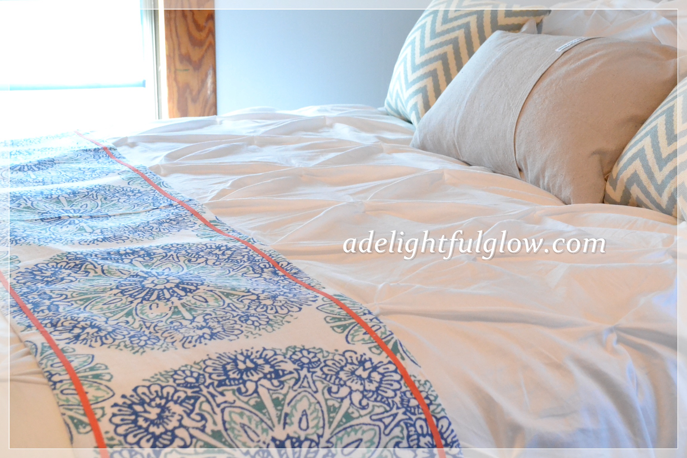 Enter in some paint, some rearranging, a comforter, and a husband to hang a mirror and you have a very good start on a guest room makeover!