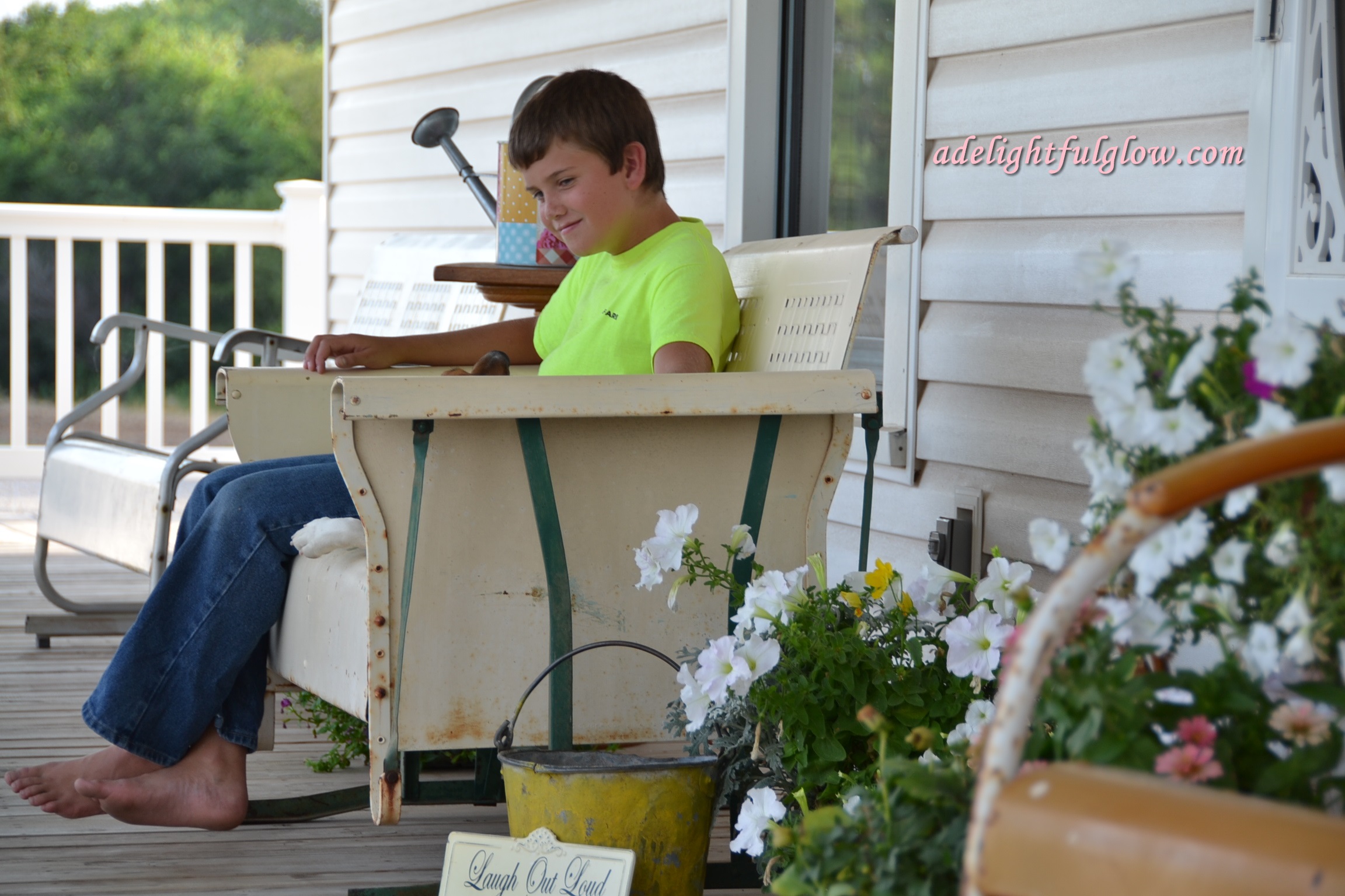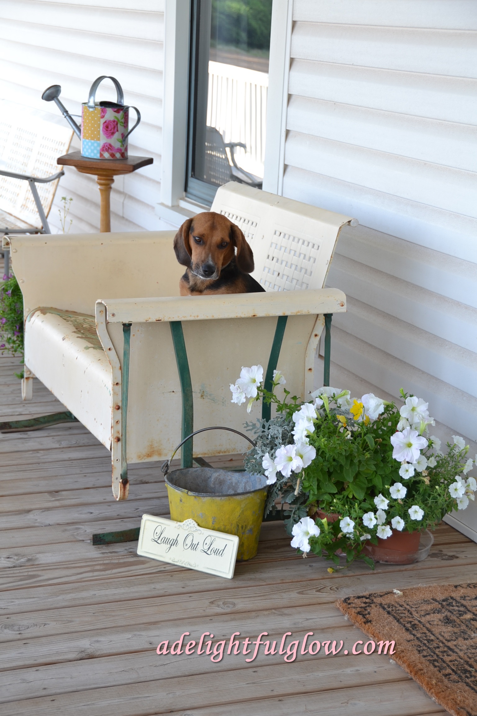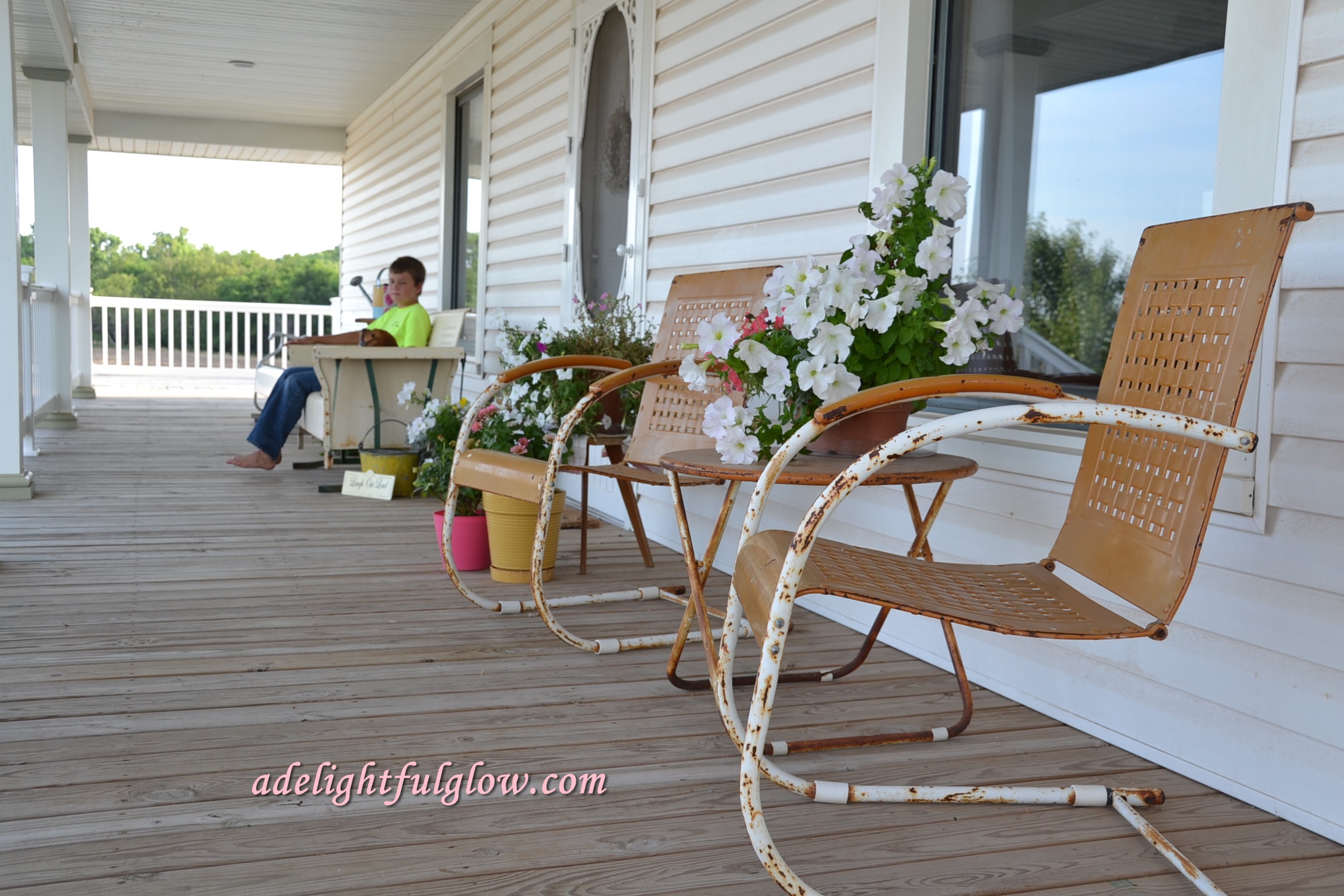 I can see these pots and this rocker from my kitchen window and have enjoyed it immensely. The rocker was my Grandma’s and she had some other outdoor furniture that matched it. It makes me think of her backyard and this outdoor furniture sitting in it for years.