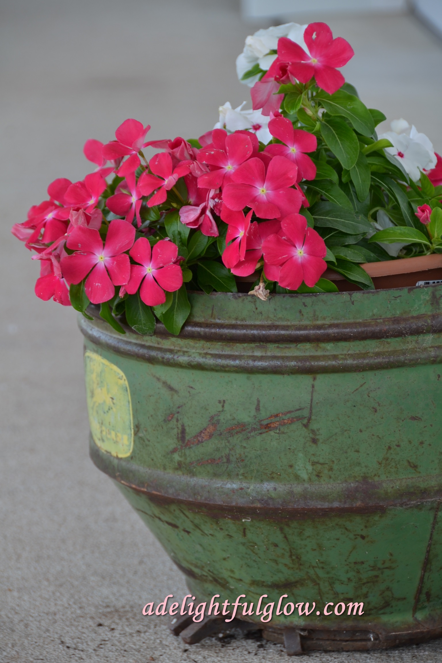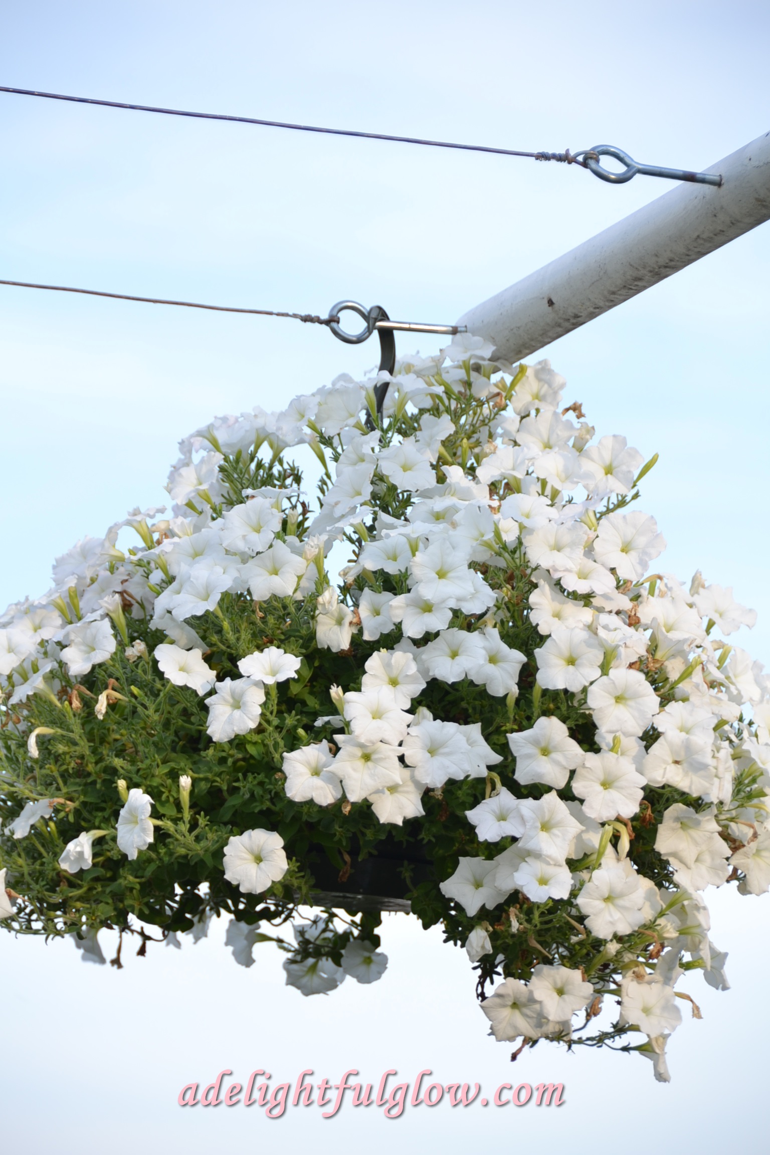 Every year we’ve been in our farmhouse, I’ve had hanging pots on each end of the clothesline. I love them there! They add a happy, summery, country look.
