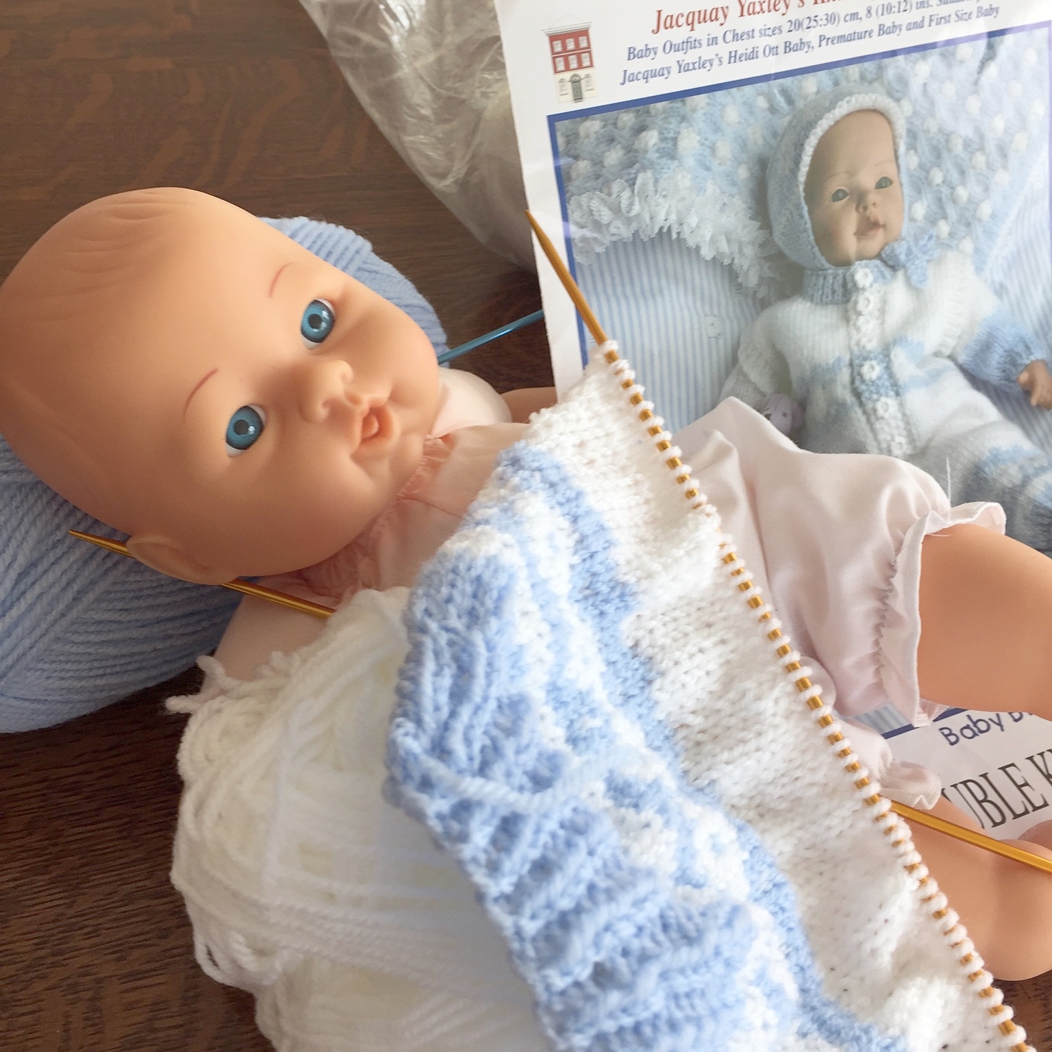 But, I do have this project of my Mother’s to show you. She sent me pictures of the doll outfit she’s knitting and I asked her if I could share them here. It’s such a cute project!