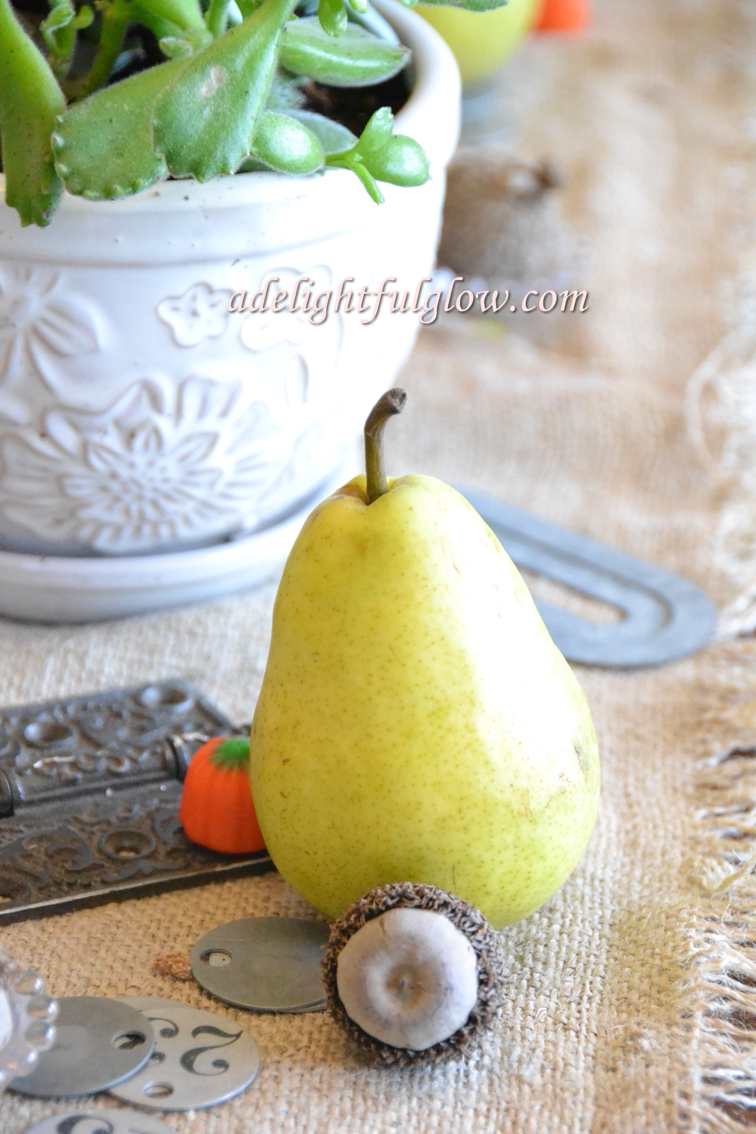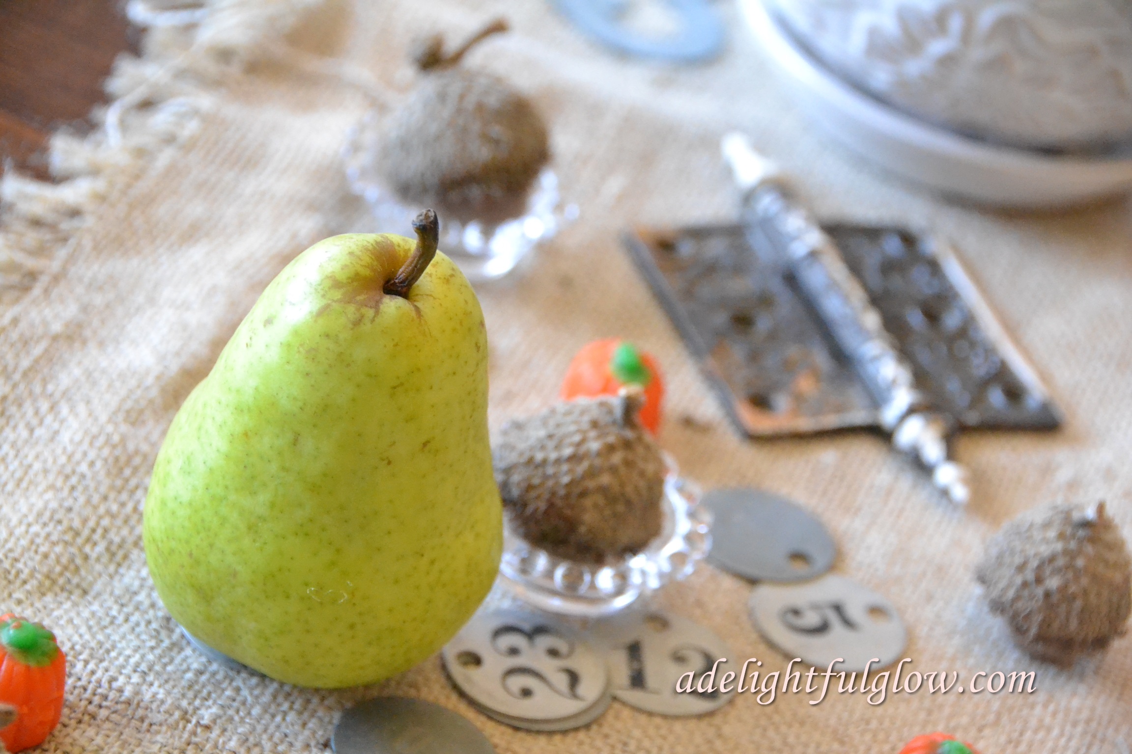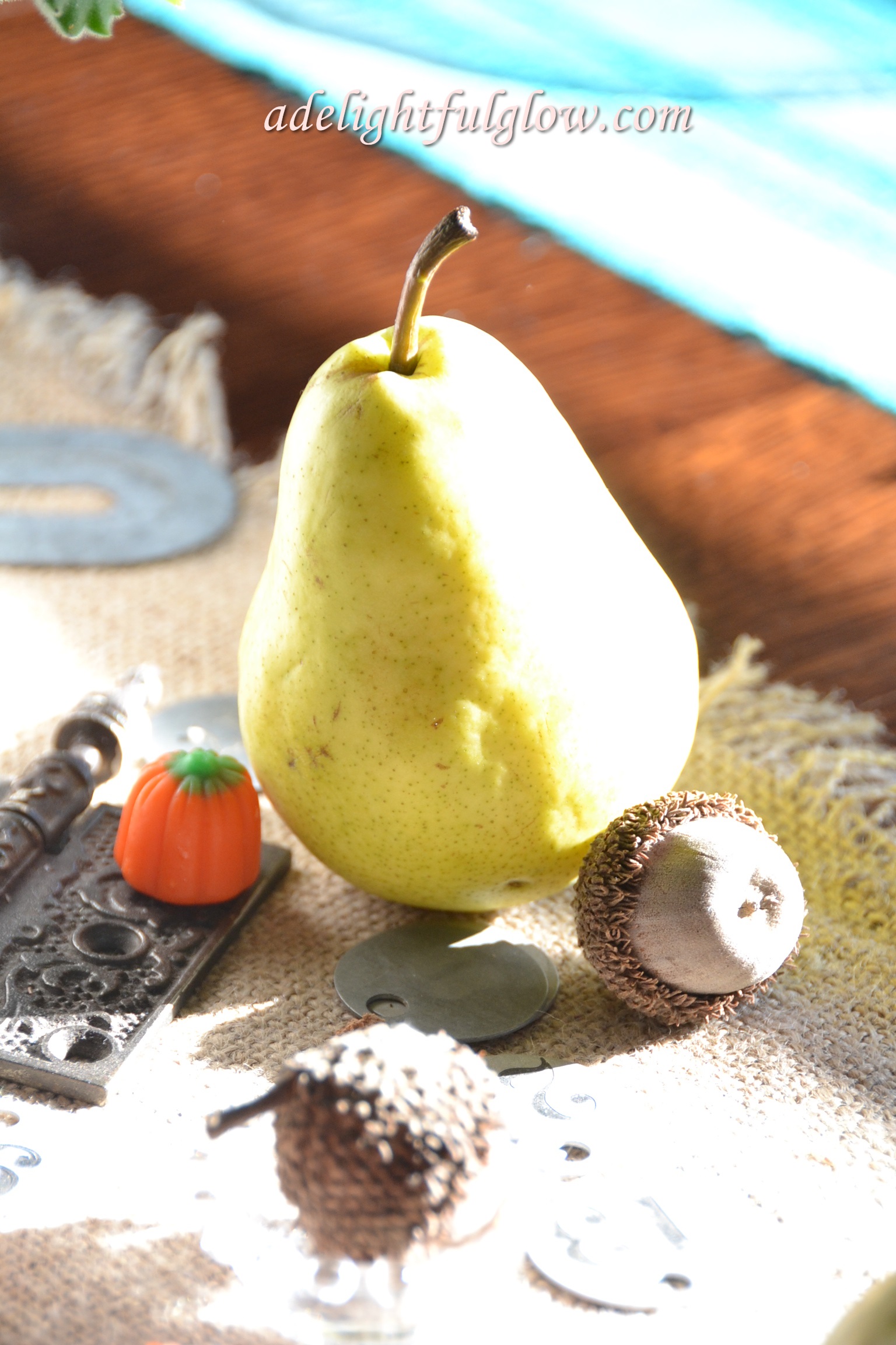 I brought these pears home from the grocery, thinking how pretty they were and what awesome fall decor they would make.