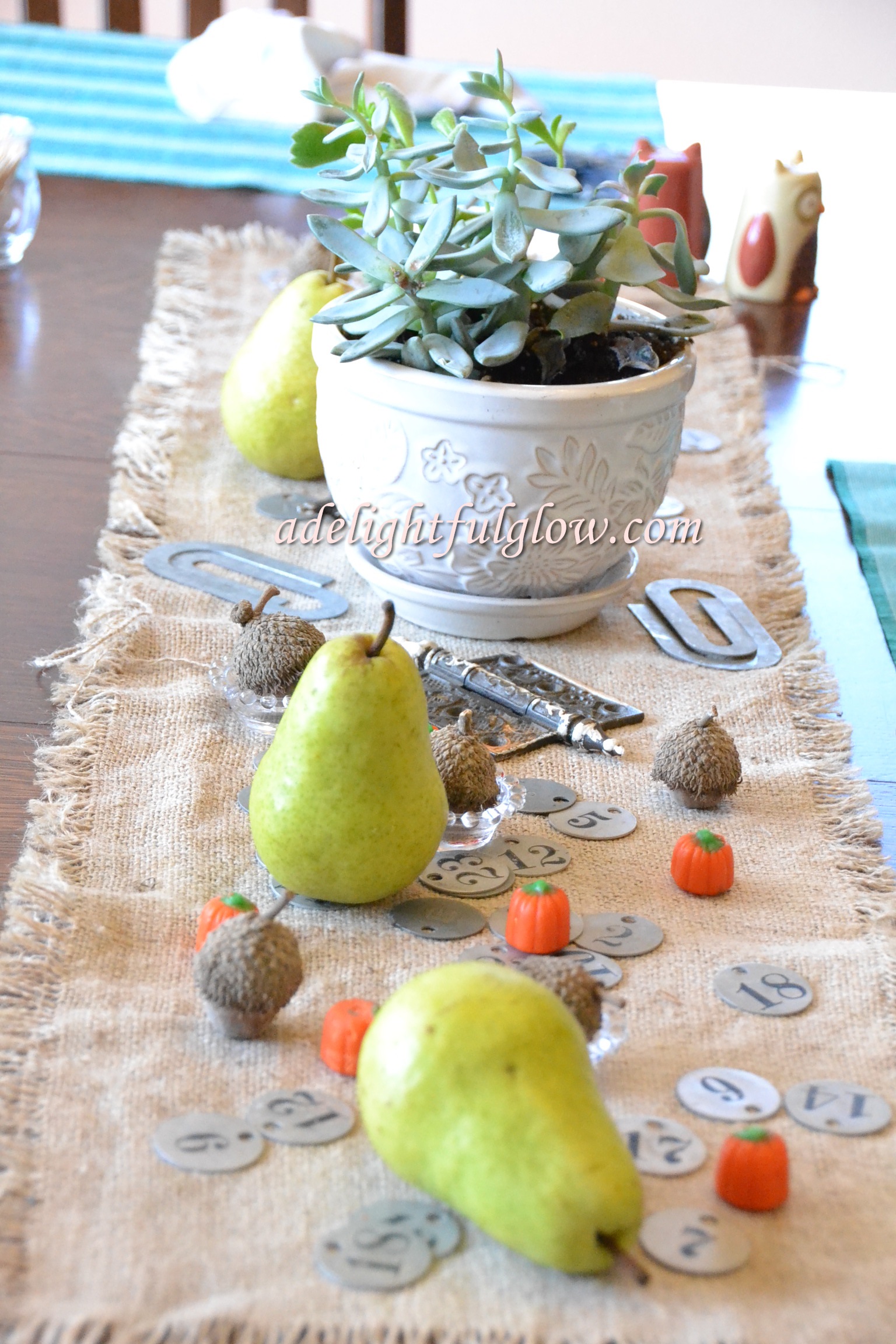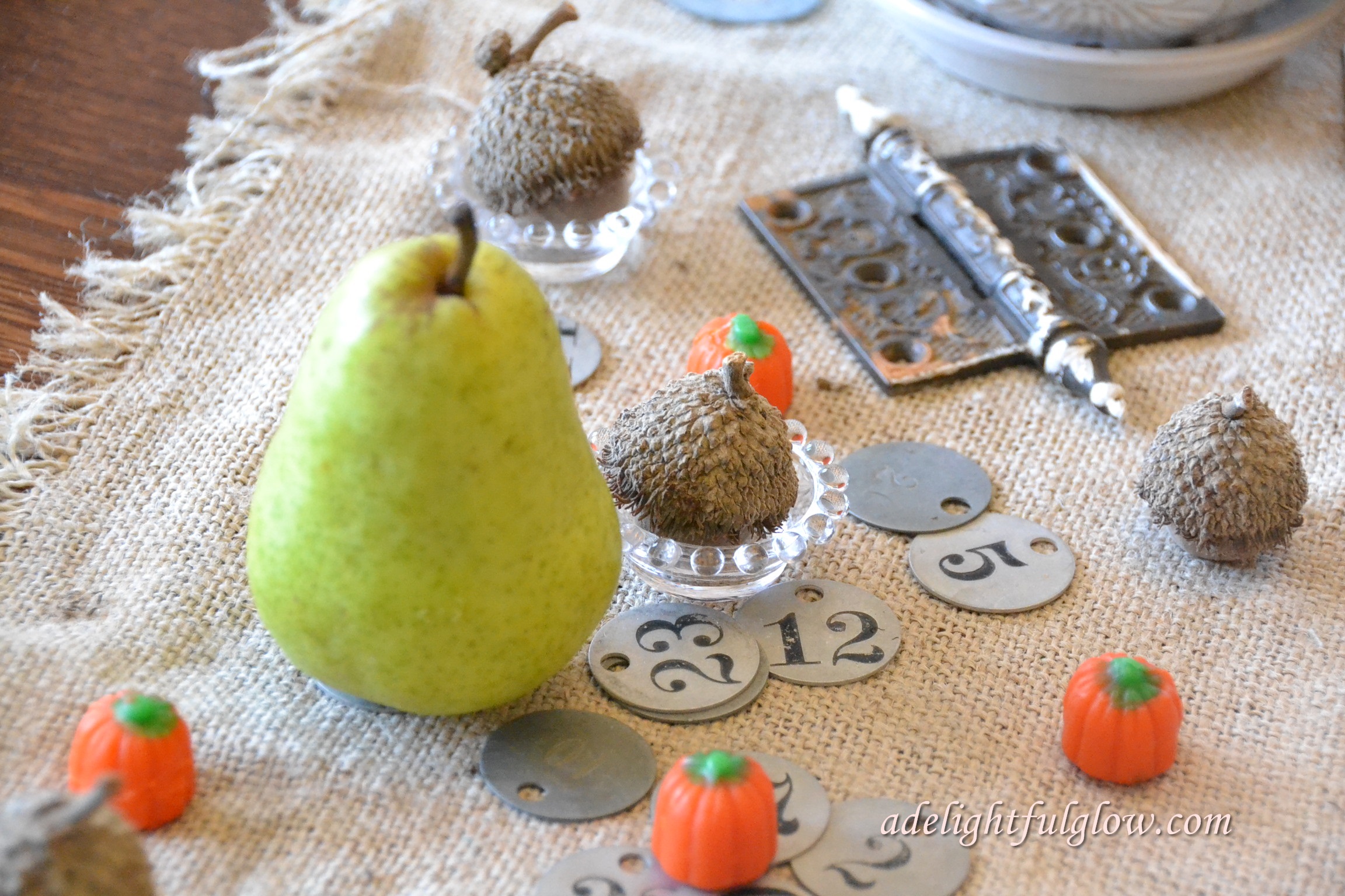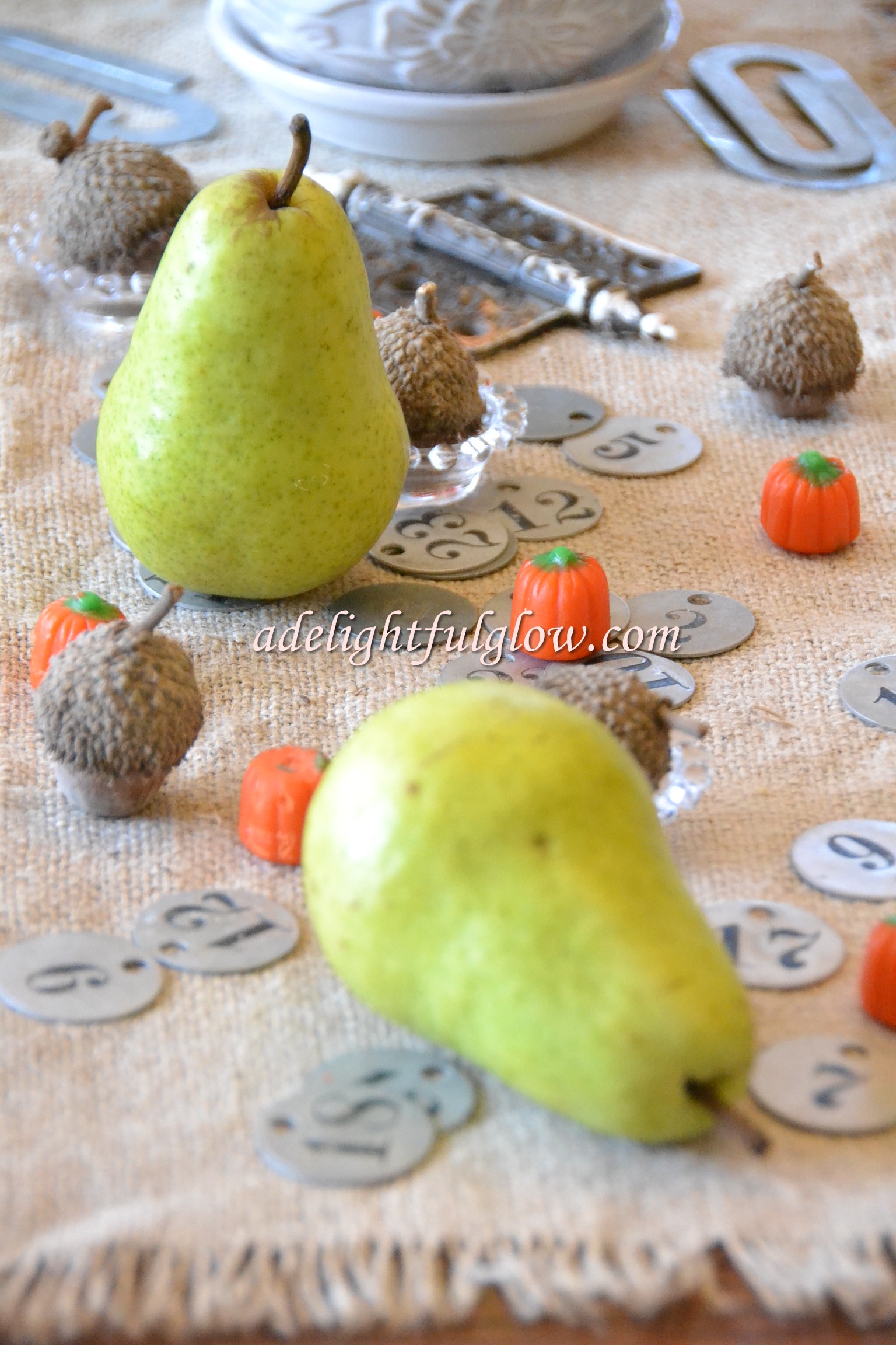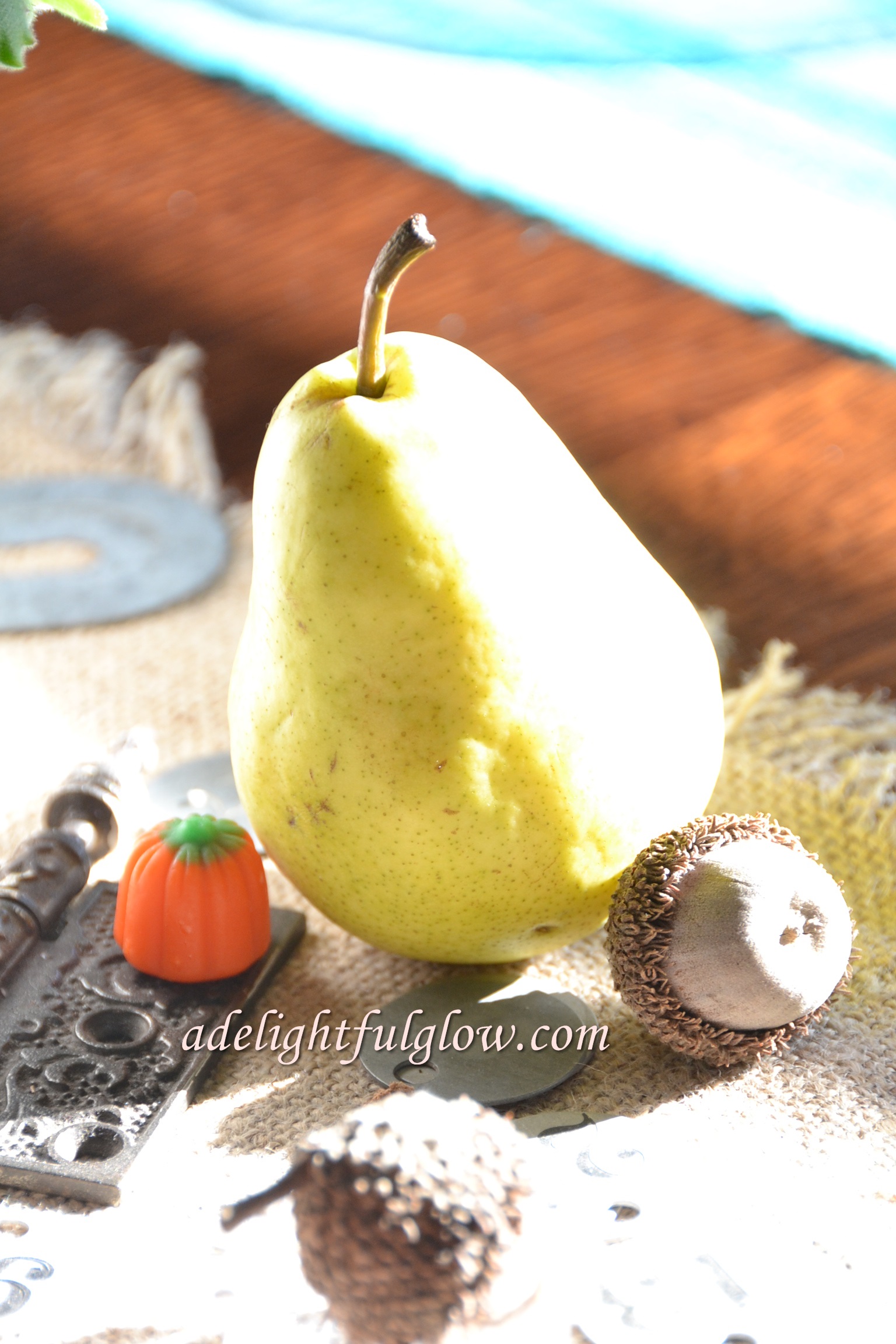 I brought these pears home from the grocery, thinking how pretty they were and what awesome fall decor they would make.