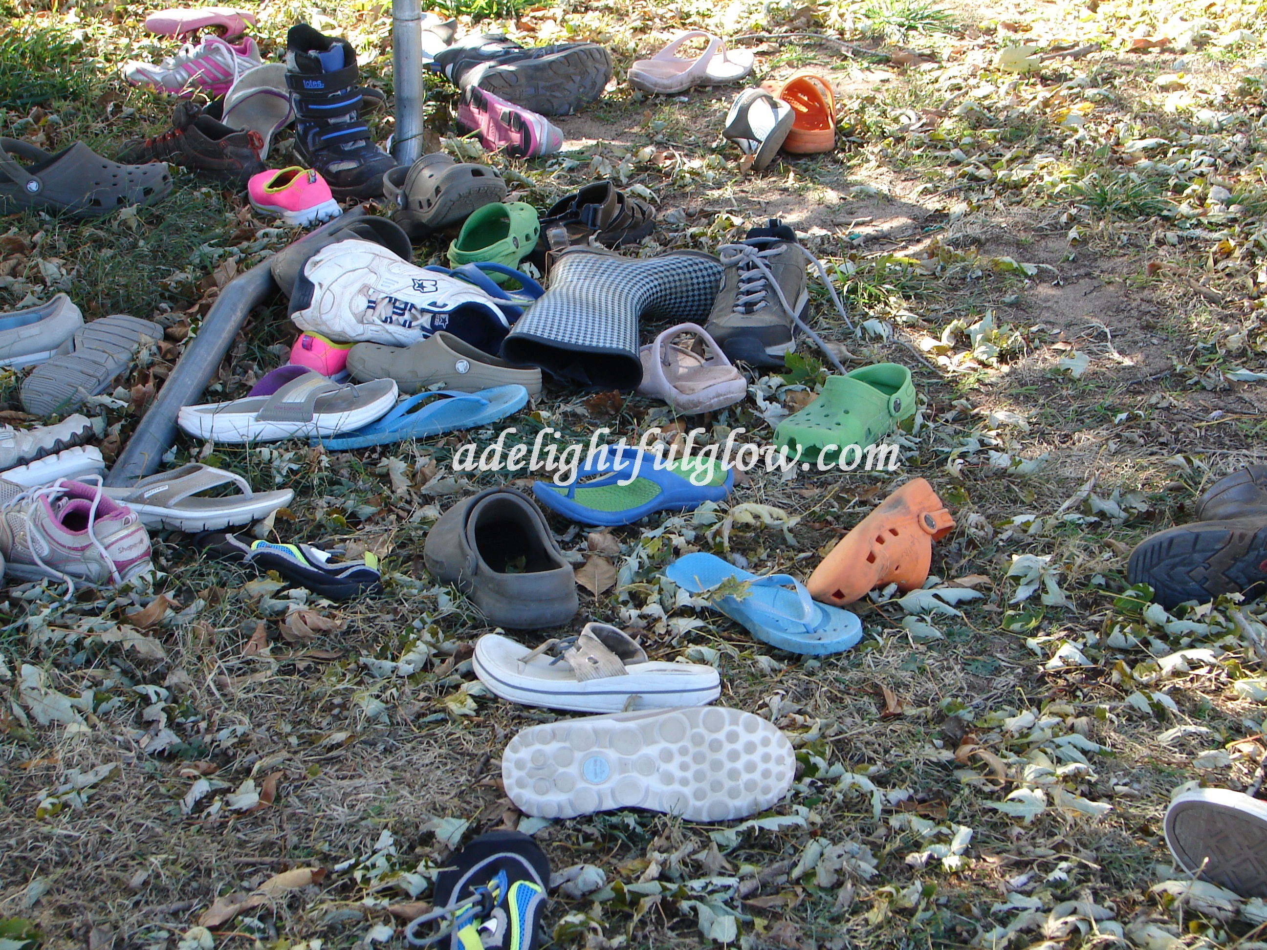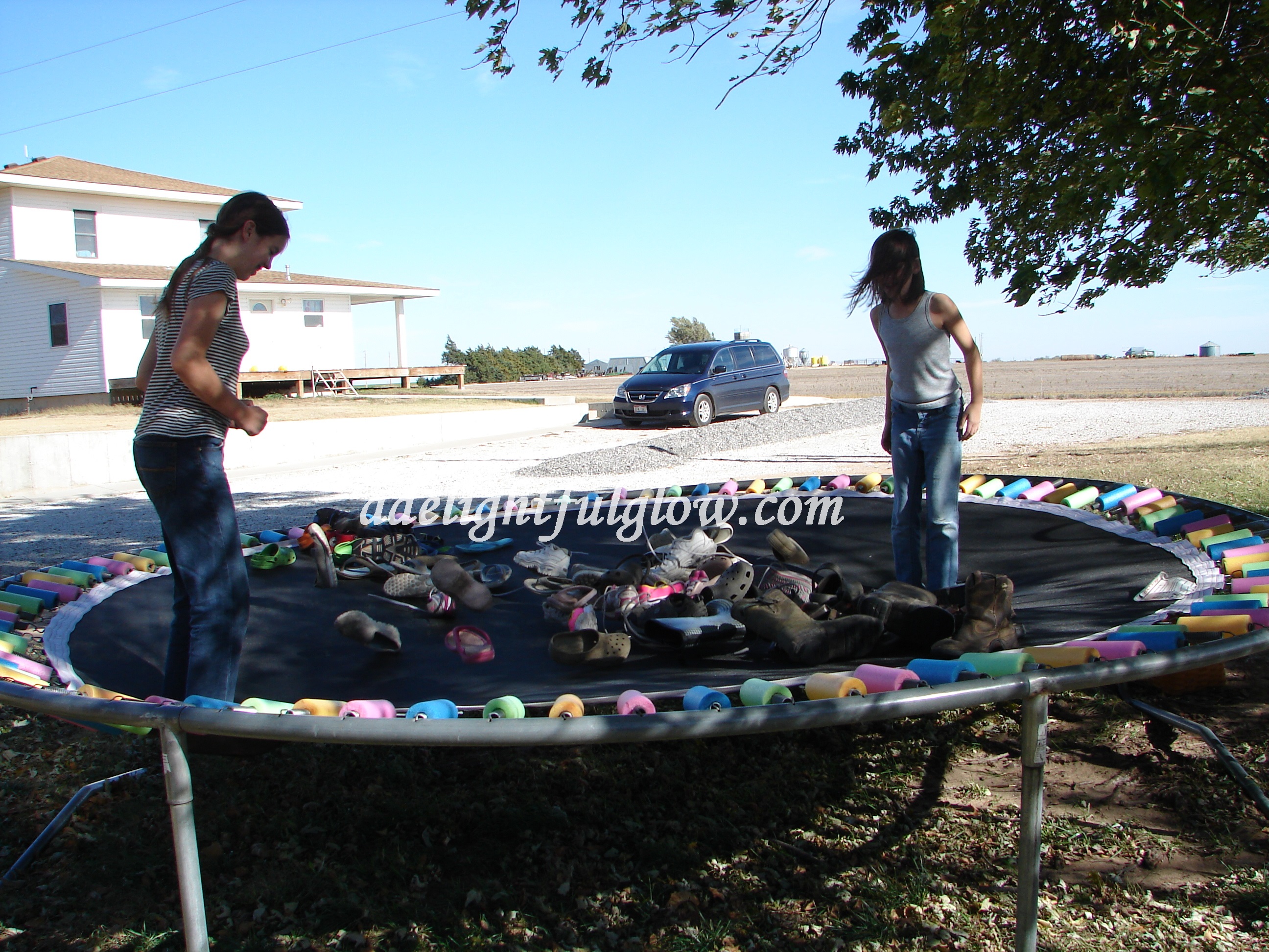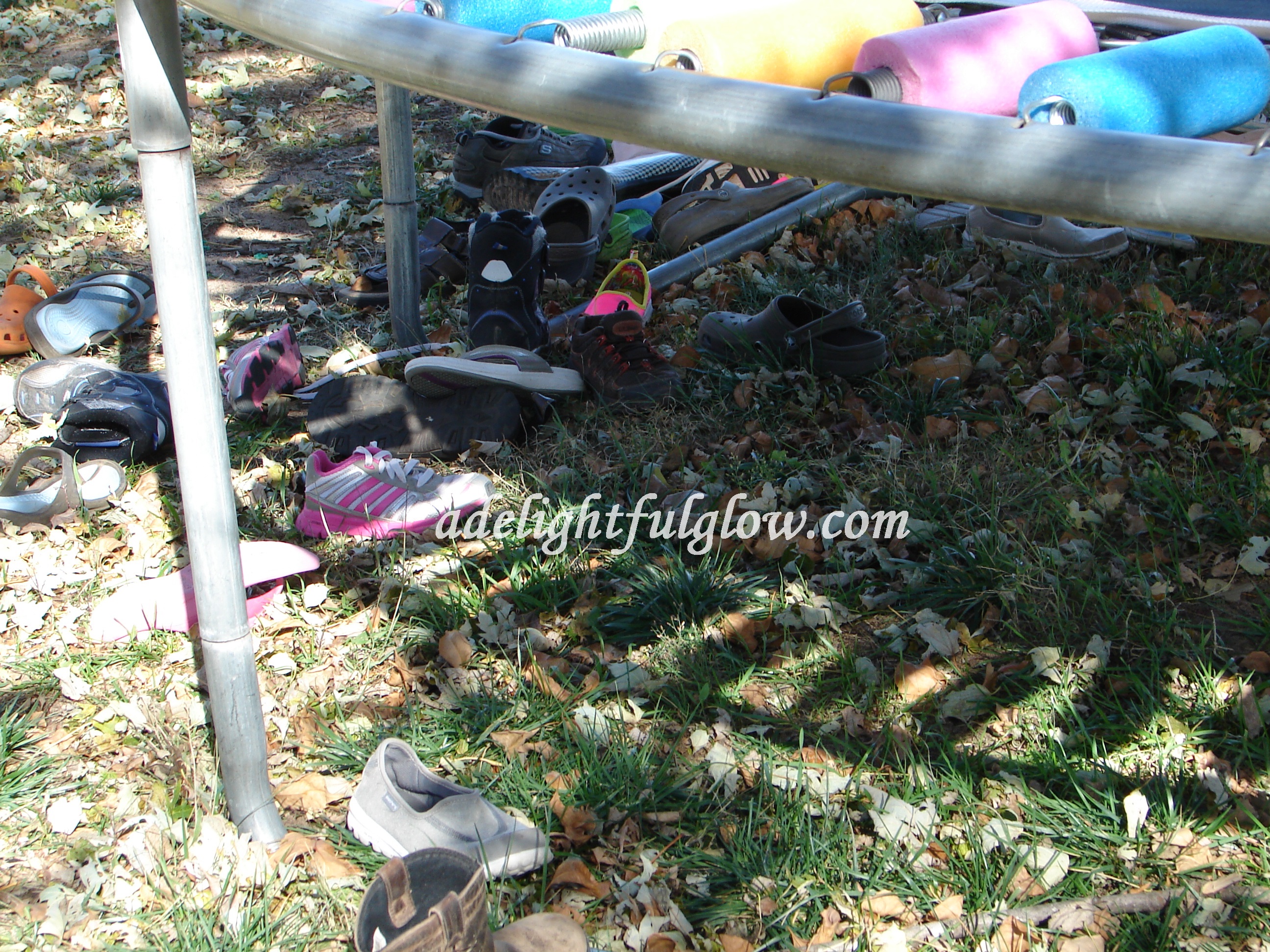 It’s rather interesting to yell out to the kiddo on the trampoline any time you need a pair of shoes so you can leave the house. You also find out that there are a lot of pairs of shoes and boots around your farm!