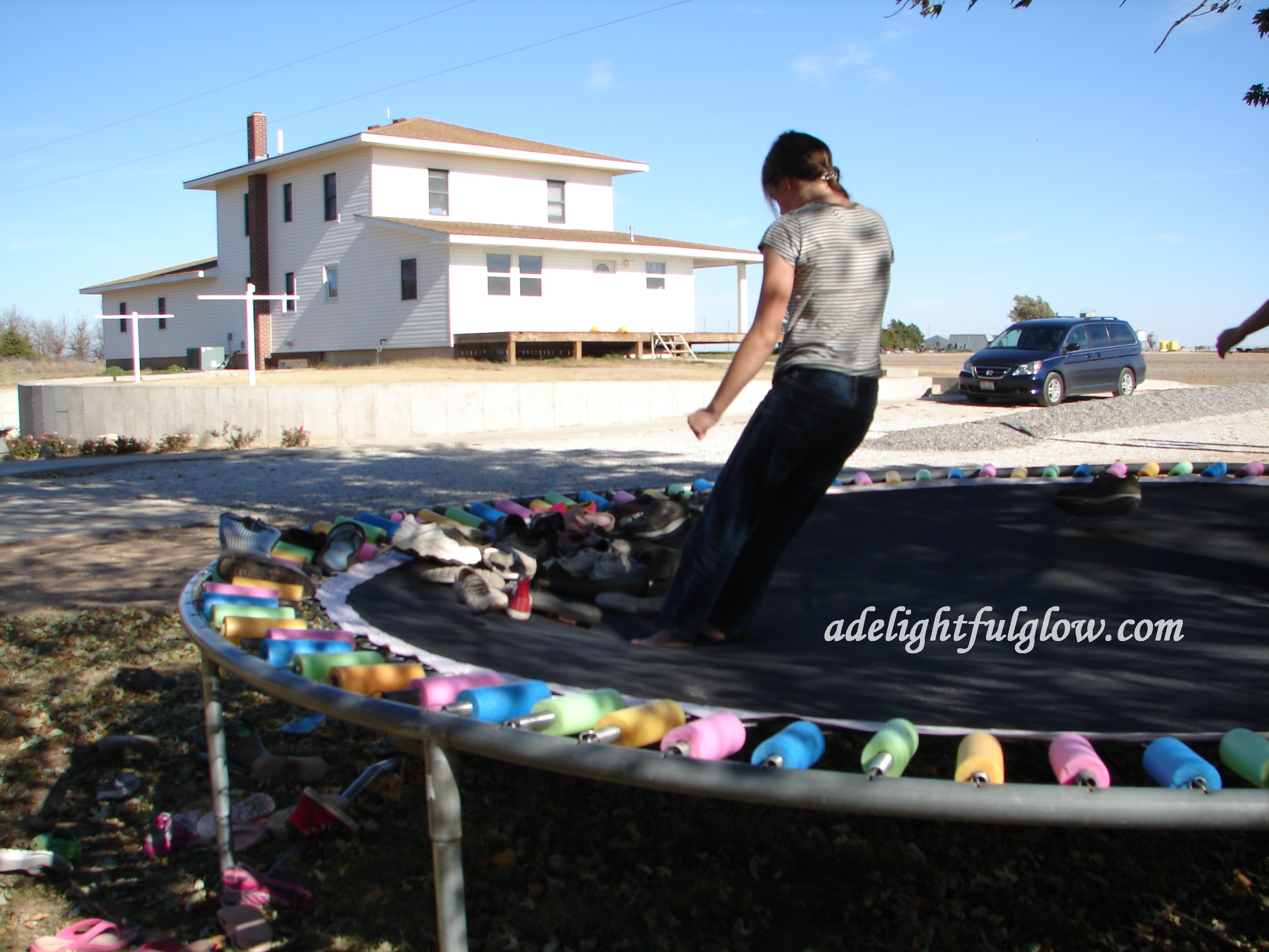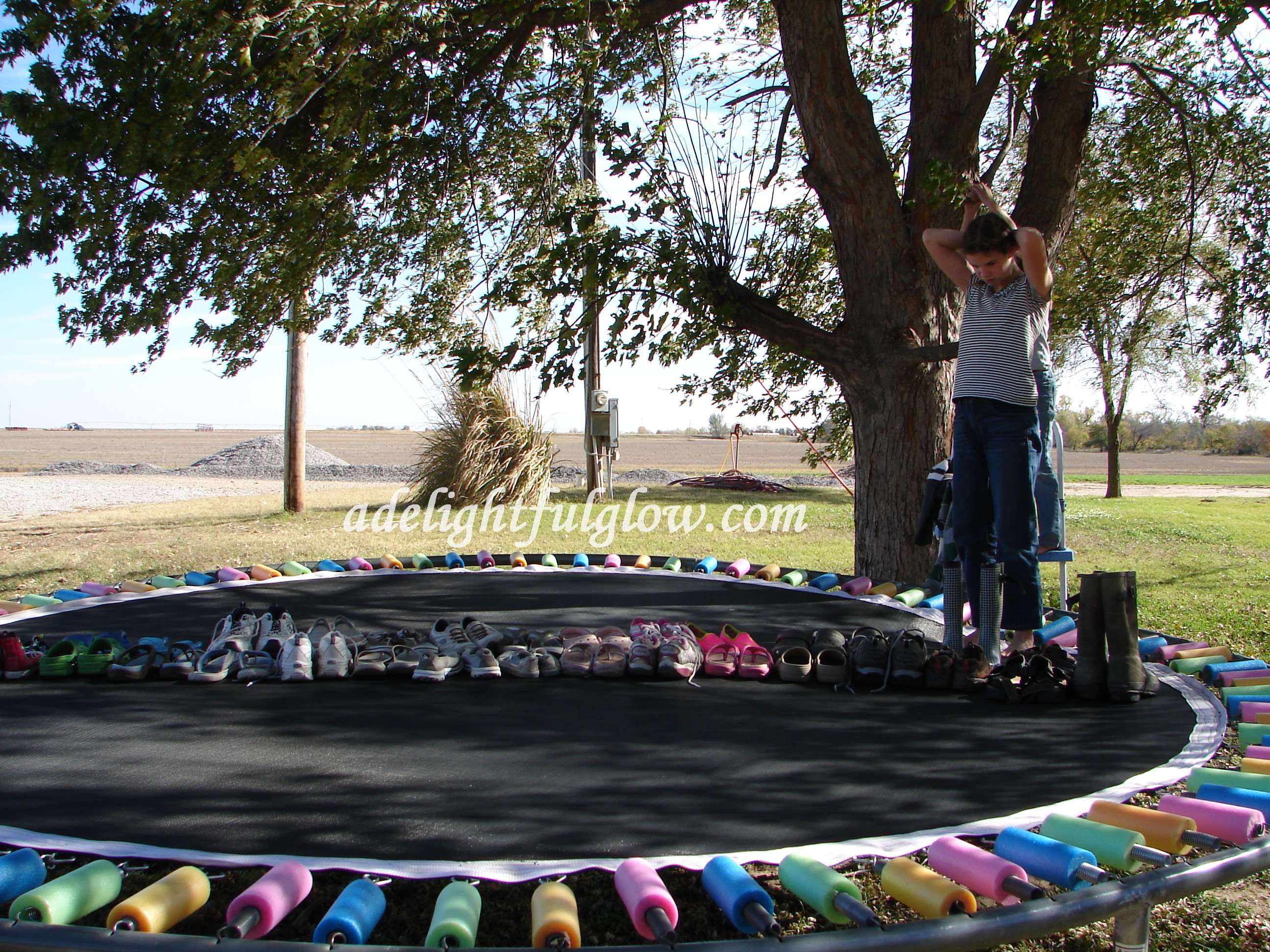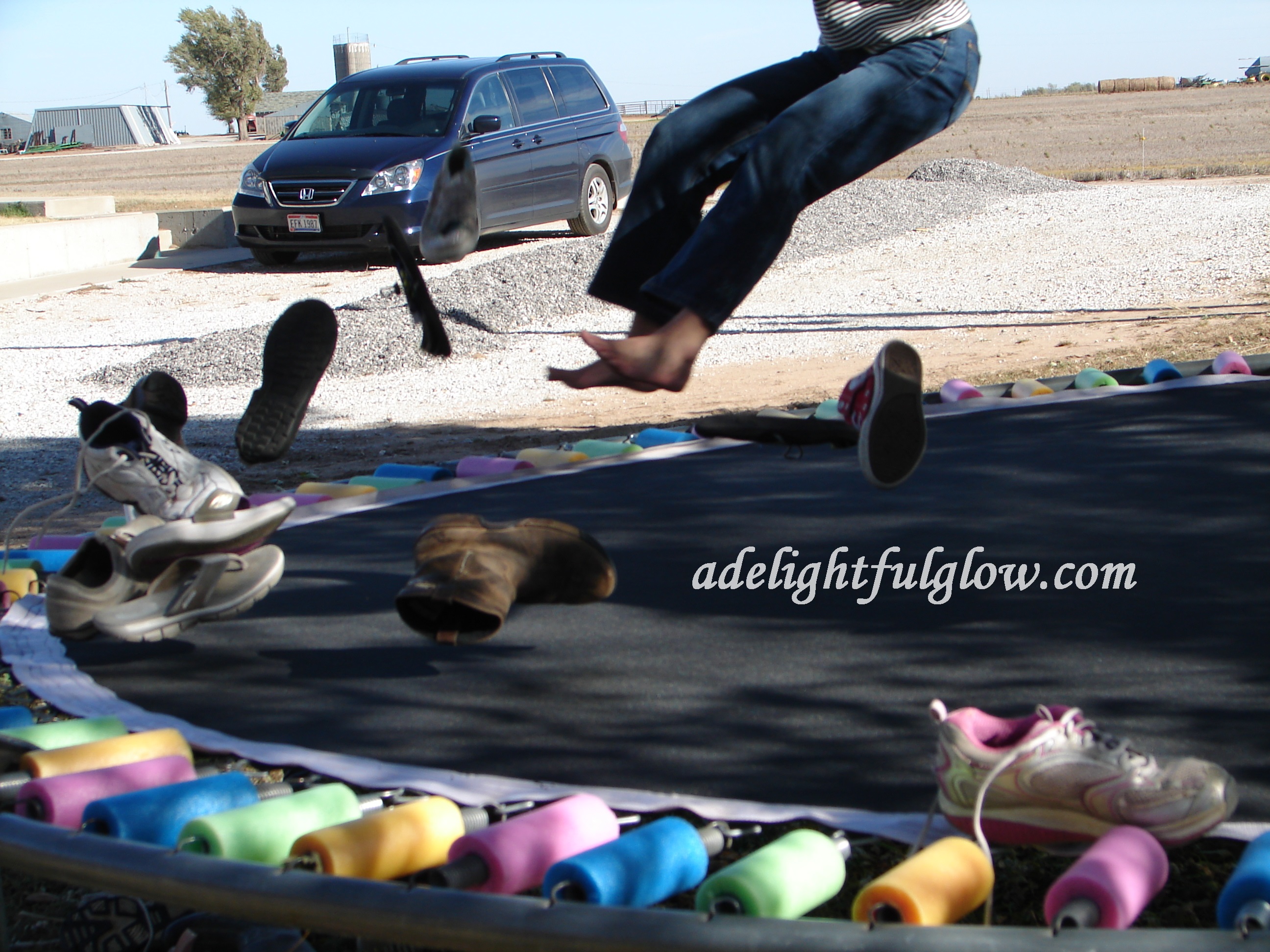 Load your trampoline with all the footwear you’ve dug out from every corner and storage box and closet or boot tray.