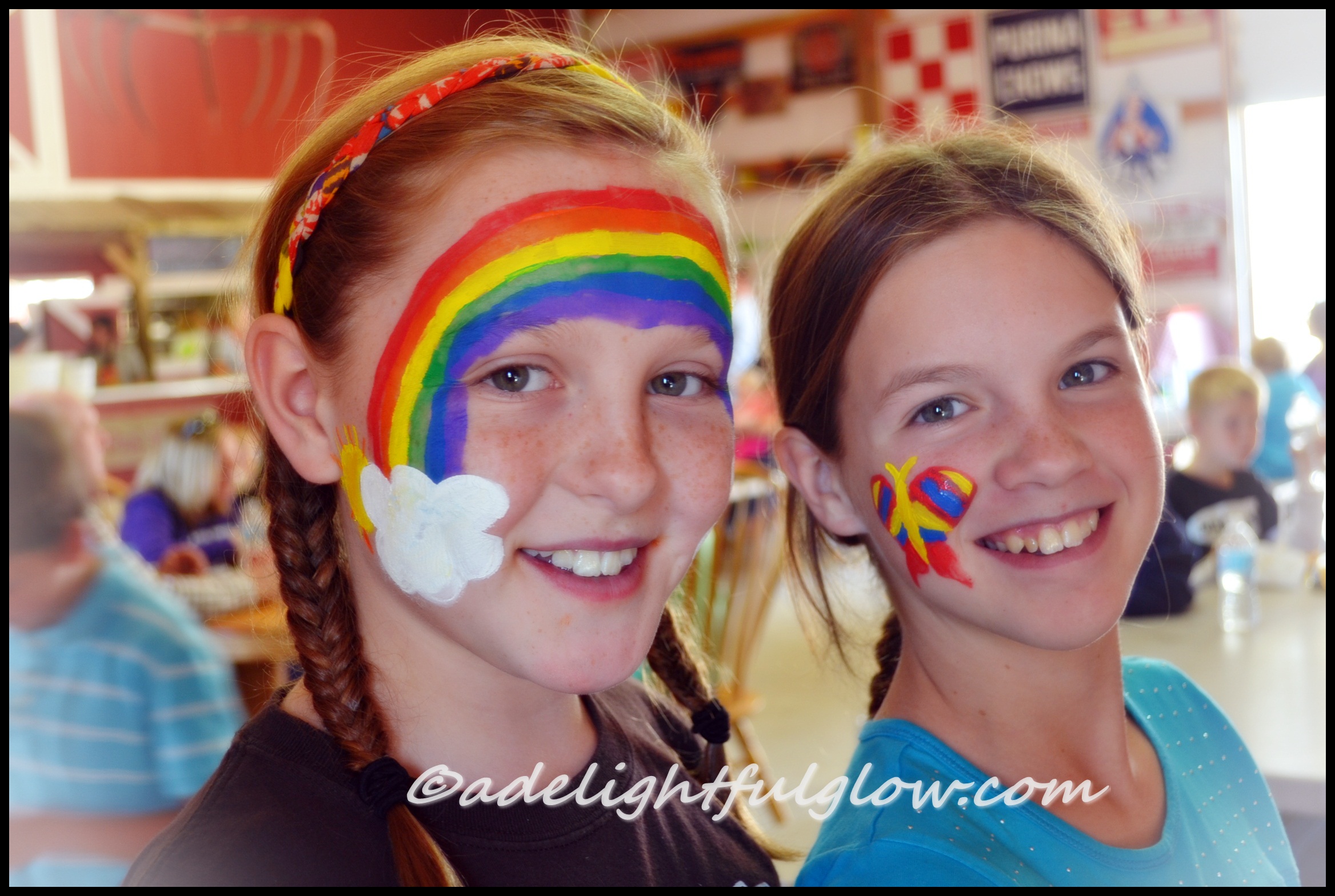 Remind me next year to come out when we can go to the Pumpkin patch with you! I don’t know of a place that fun around here but maybe I just don’t get out enough. I love the face painting – Cambria’s is totally cool! and the john deere emblem looks fantastic, and the rainbow butterfly is so Renae! That was one great face paint artist!