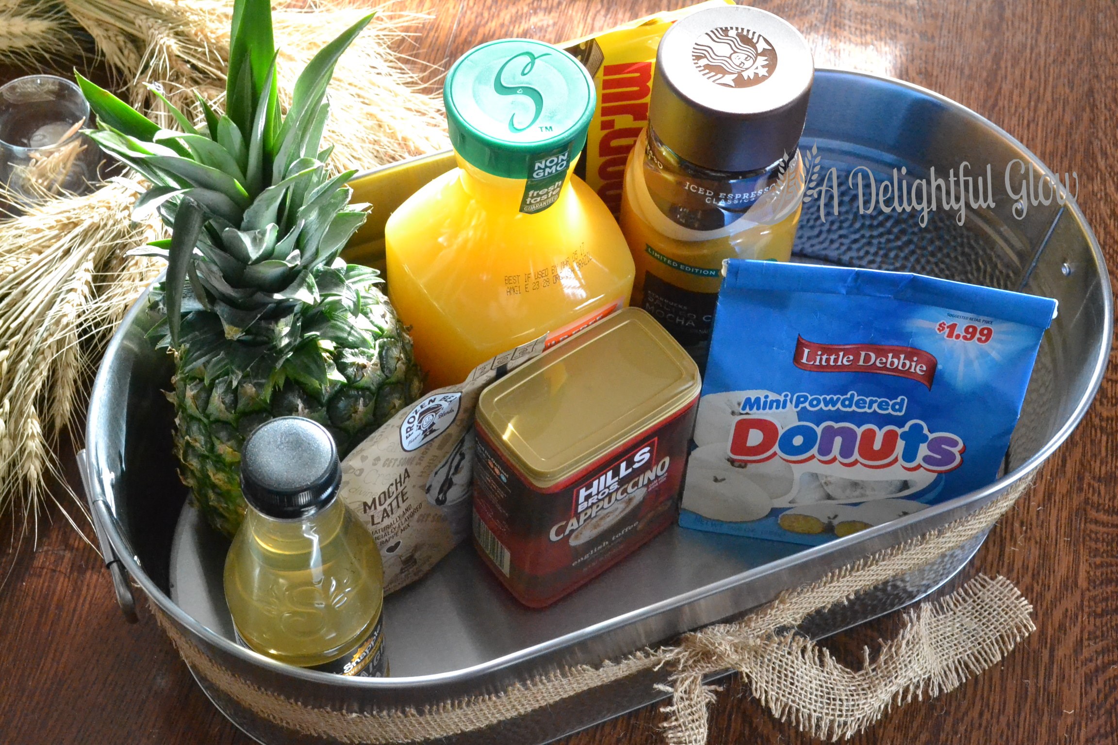 Every time I’ve put together a breakfast-in-a-box, I’ve started with a pineapple and some kind of juice.