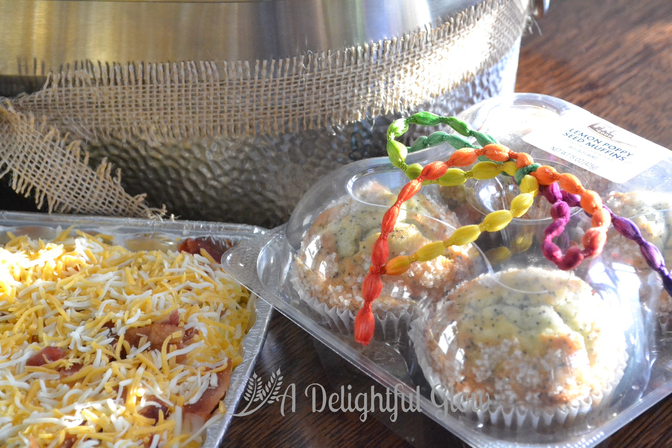 Bright ribbon went around the poppyseed muffins!