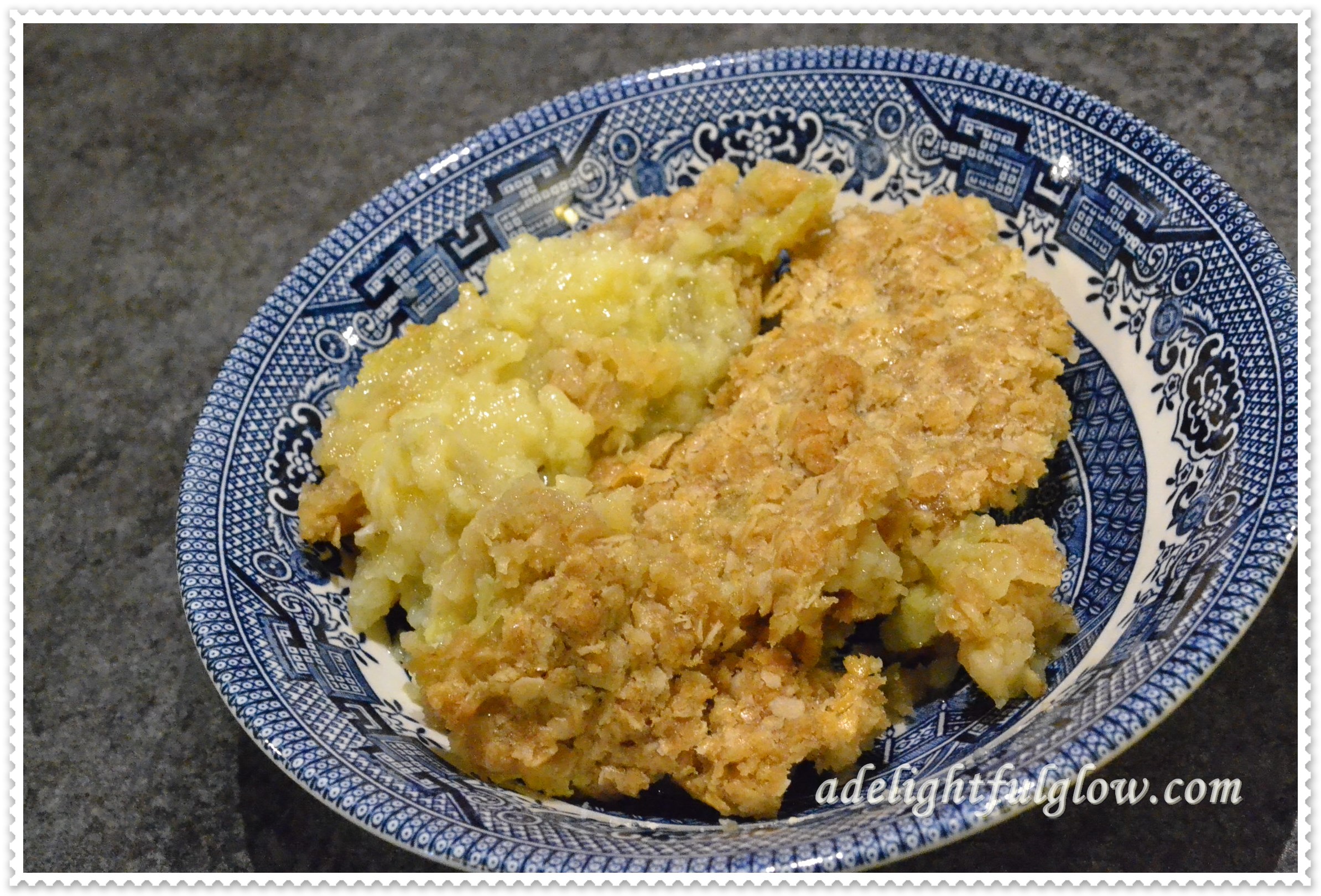 Here’s the recipe for a yummy crisp. It’s especially delicious with creamy, cold homemade ice cream!