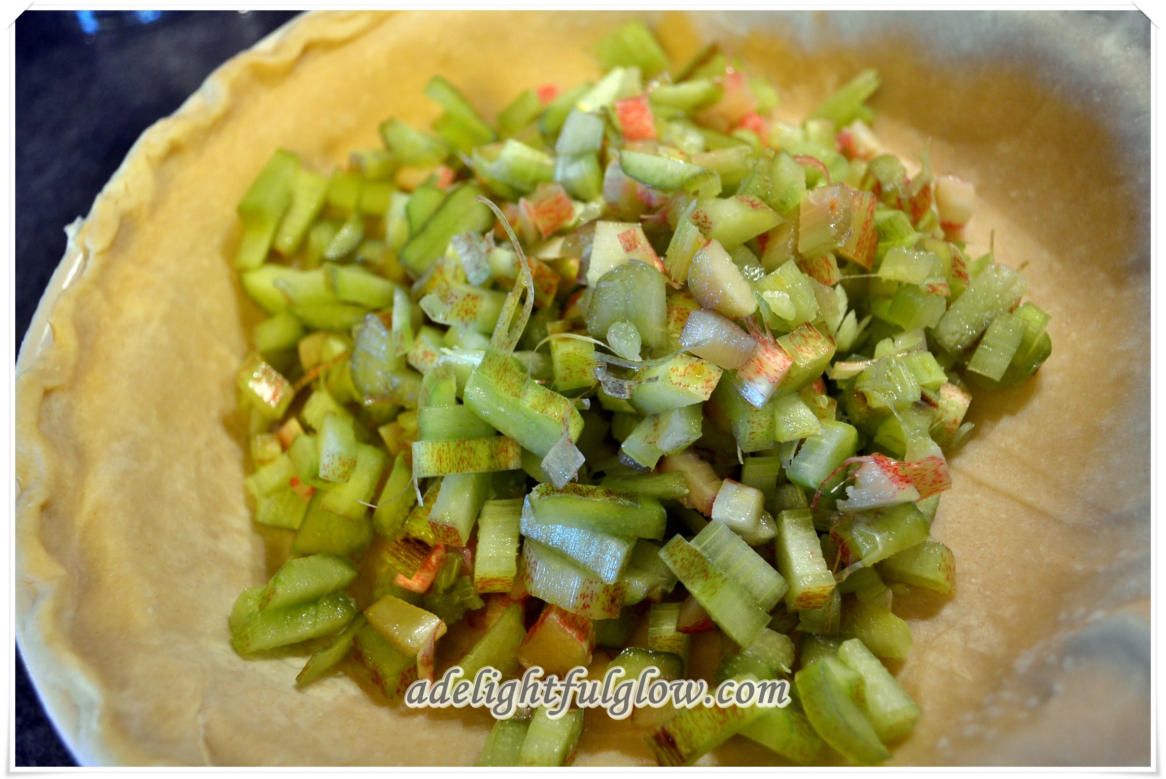 Place chopped rhubarb in unbaked pie shell.