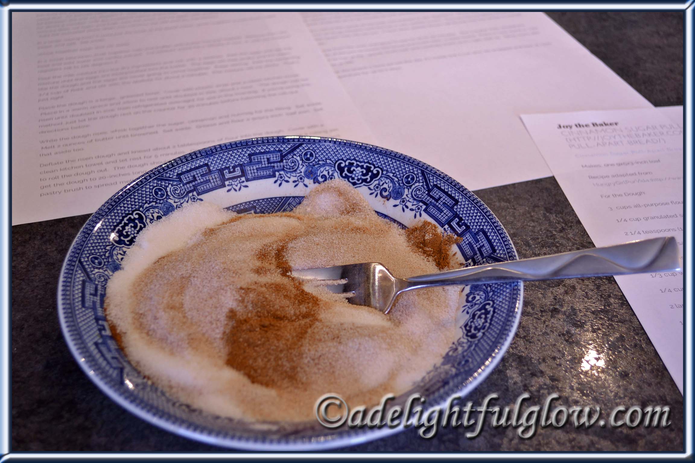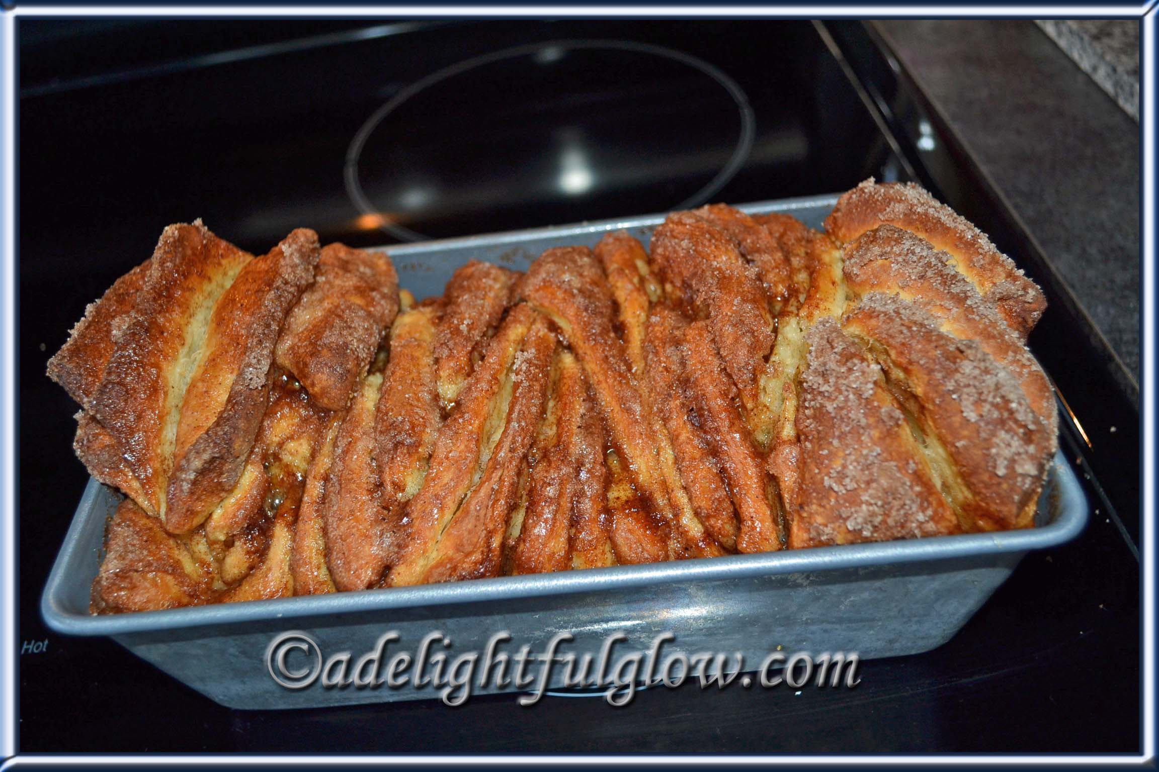I flipped through recipes this morning, that I’ve printed out from here and there on the world wide web and came across Cinnamon Sugar Pull-Apart Bread.