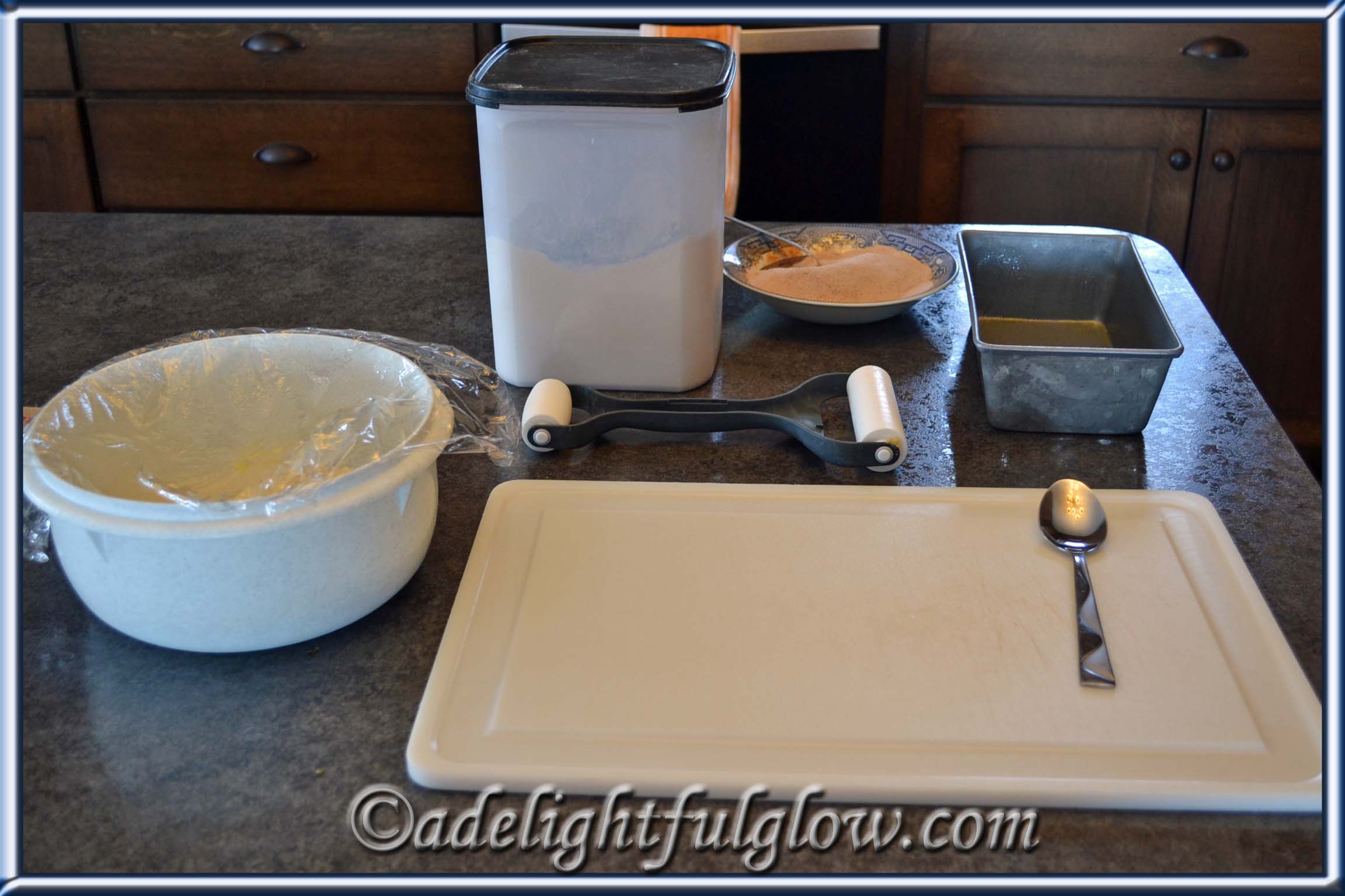 So, directly after lunch was over and the kitchen cleaned up, I stirred up the dough for this and messed the kitchen up again.