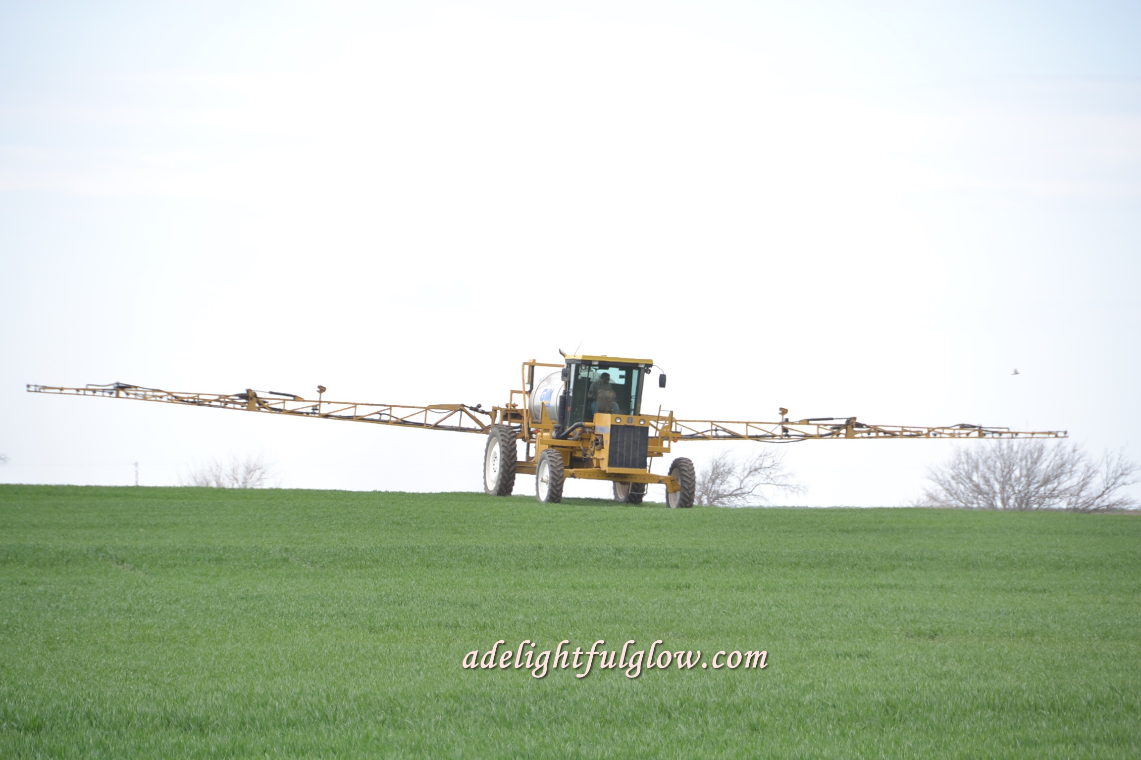 I was out and about a bit, at about the same time as my farmer and his sprayer took off on their maiden voyage spraying wheat on our farm.