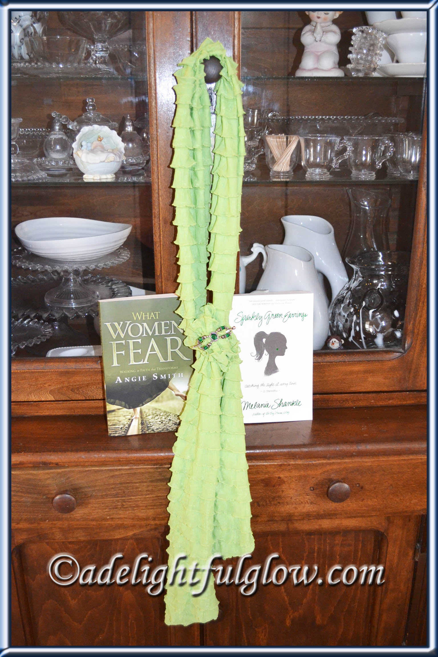 Just for fun and because I had the idea! I recently read Sparkly Green Earrings and What Women Fear. Sparkly Green Earrings is a fun, light-hearted read with wit and sarcasm and reflections on life and motherhood. What Women Fear addresses different areas of fear in our lives and the doubts that crop up and I just resonated with so many of her words. I totally enjoyed both books.