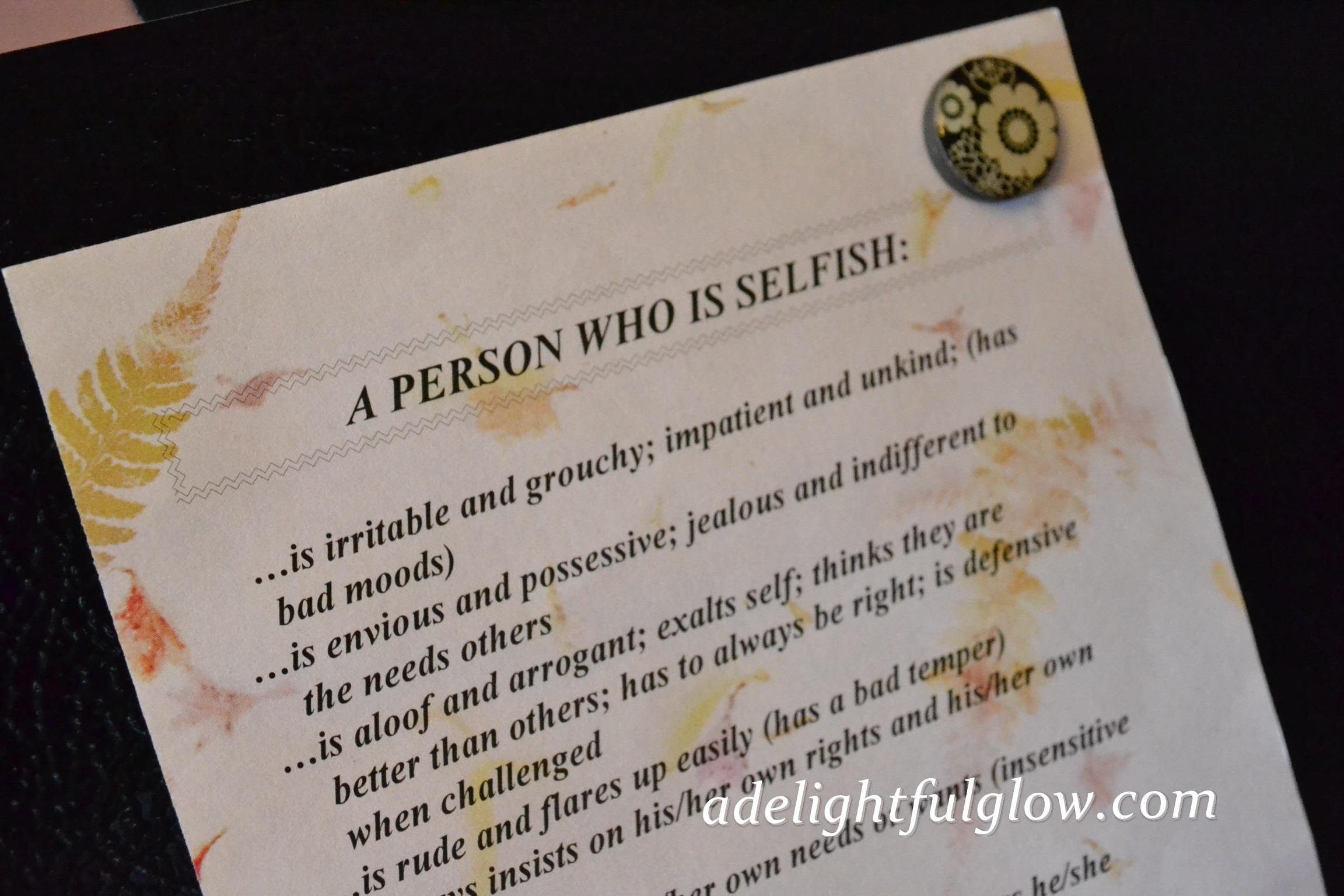 Sadly, I don’t think I will wake up one morning and all selfishness and splinters and over-sensitivity will have nicely vanished from within.