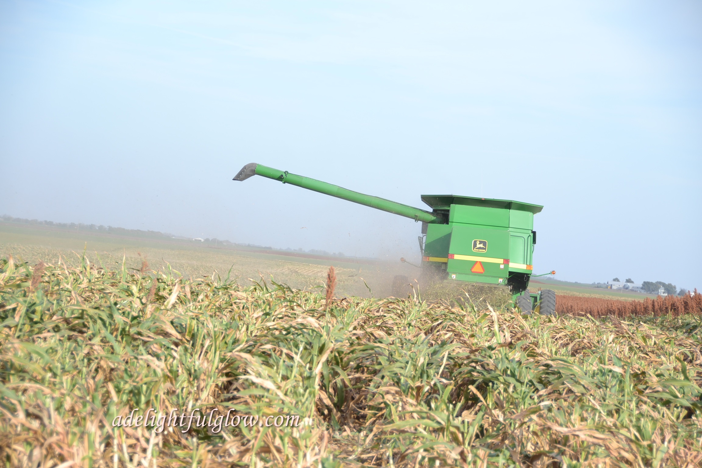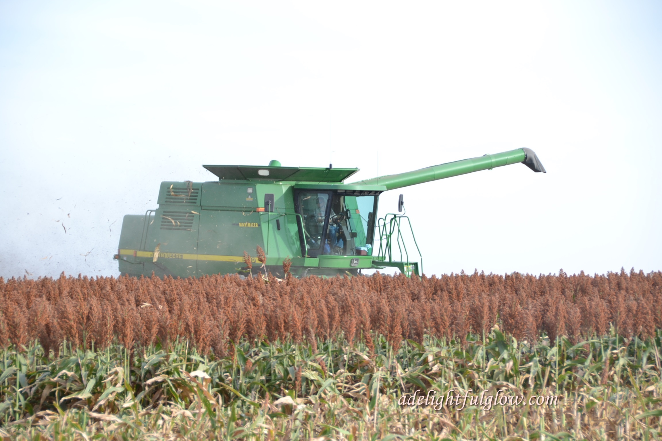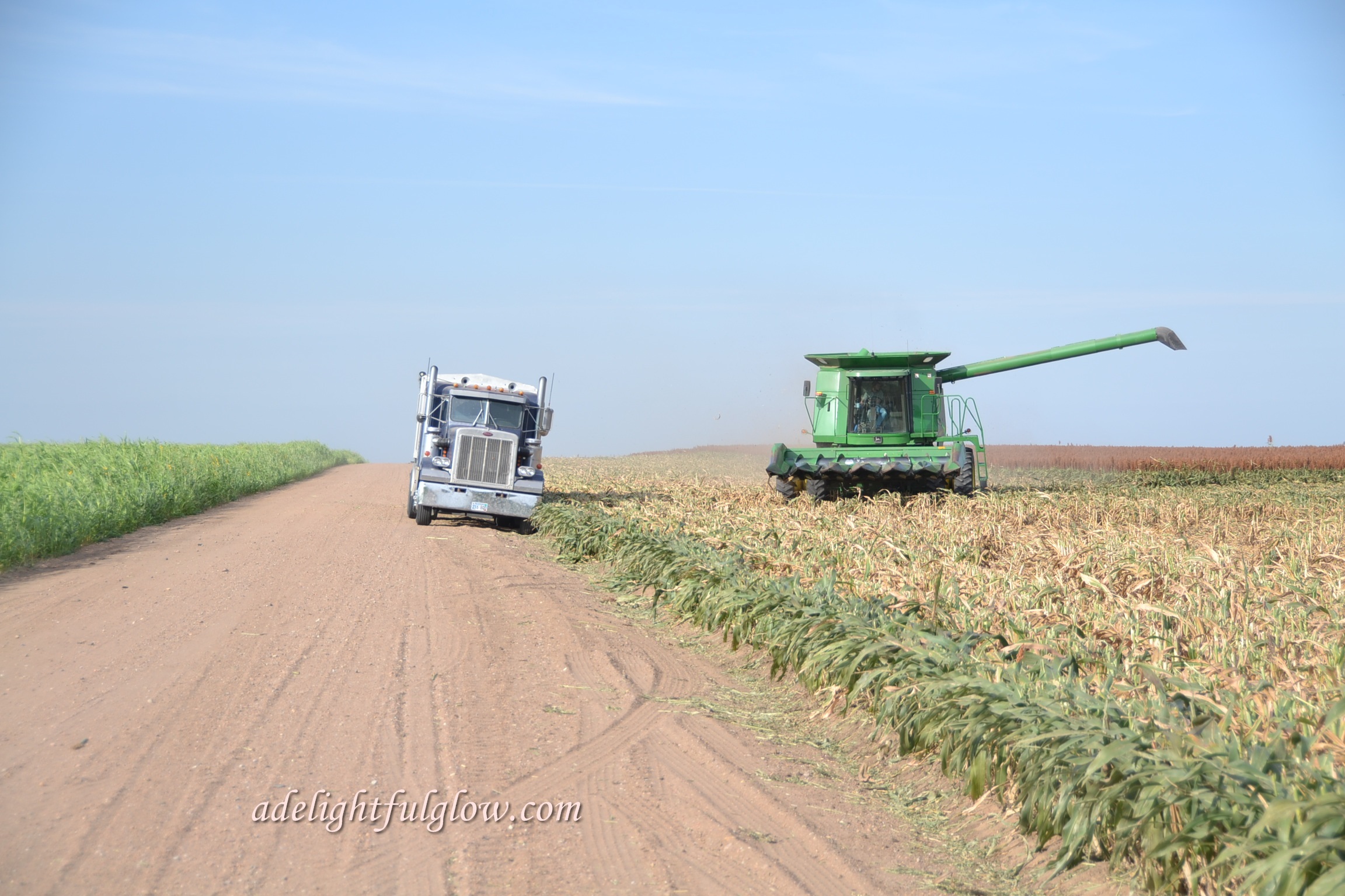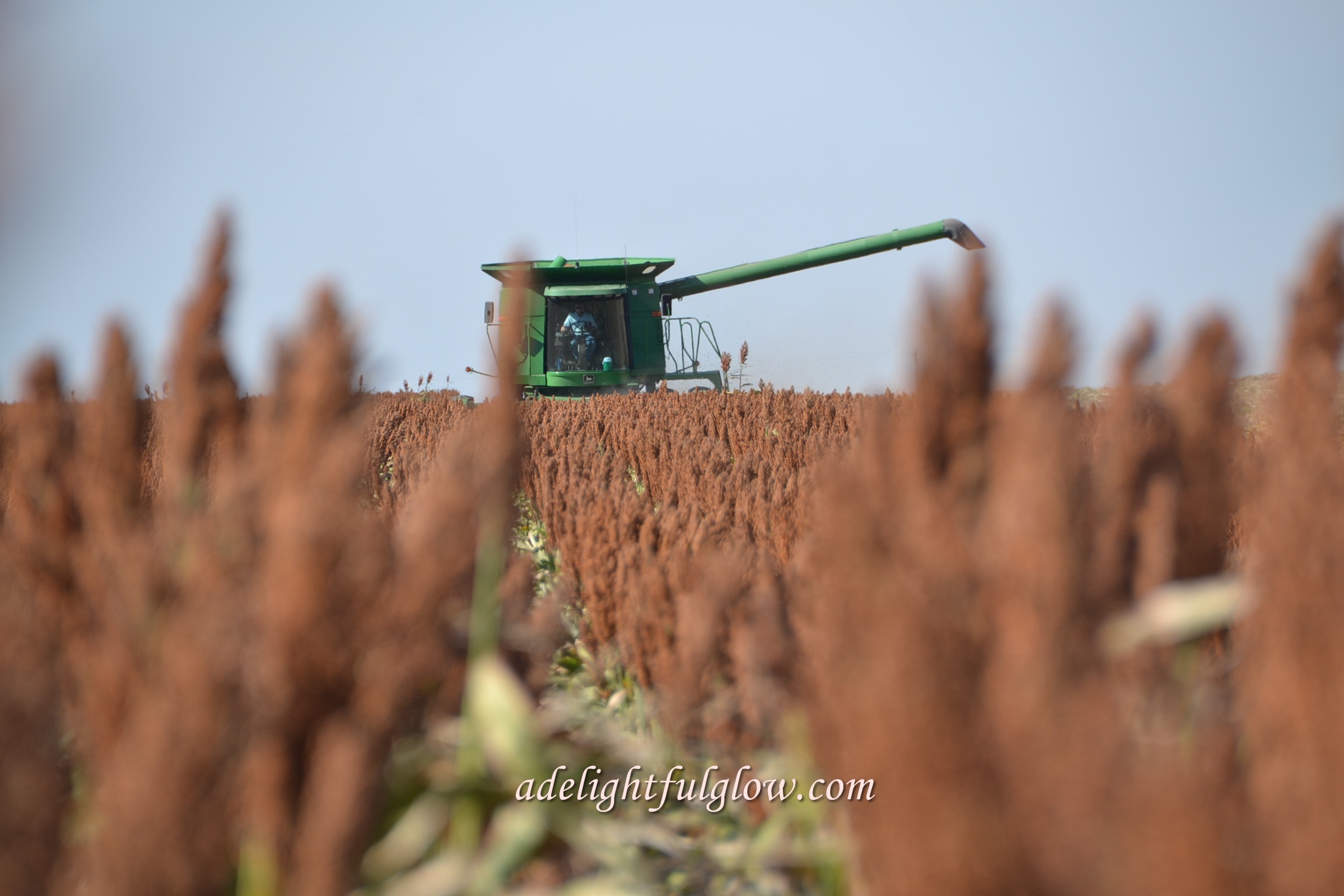 There was a combine and milo and tractor and grain cart and trucks and clouds and things like that and they were calling, “Take a picture.”