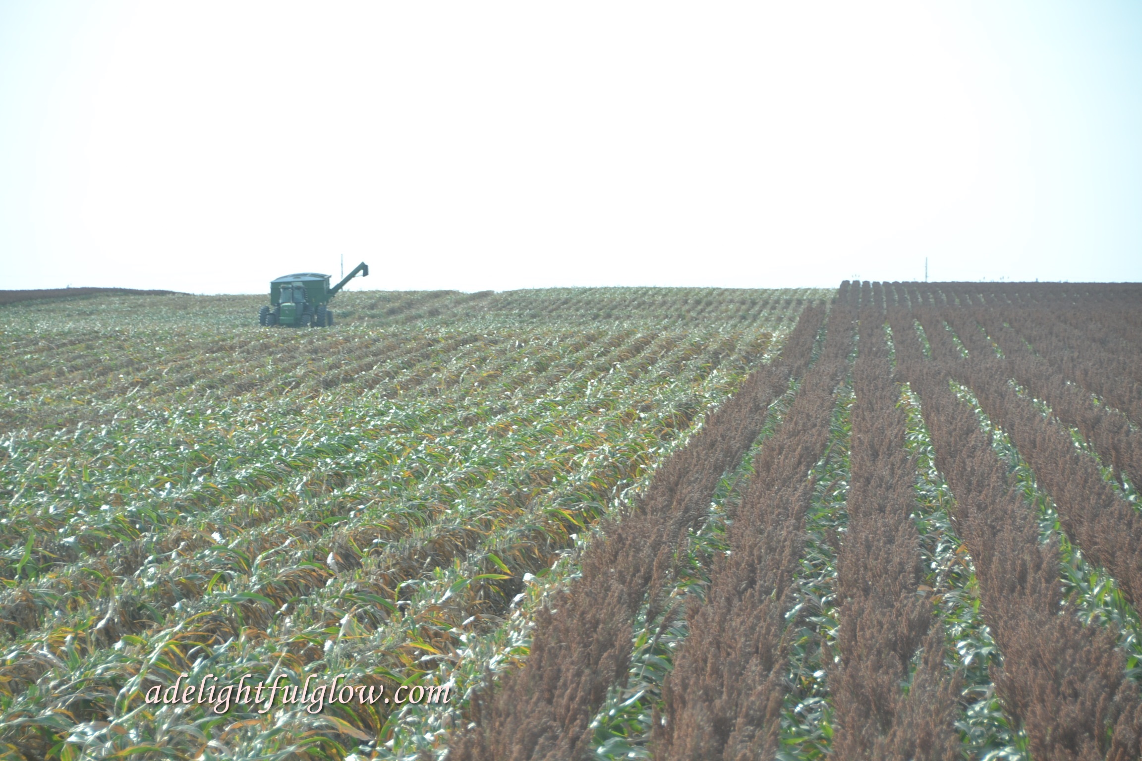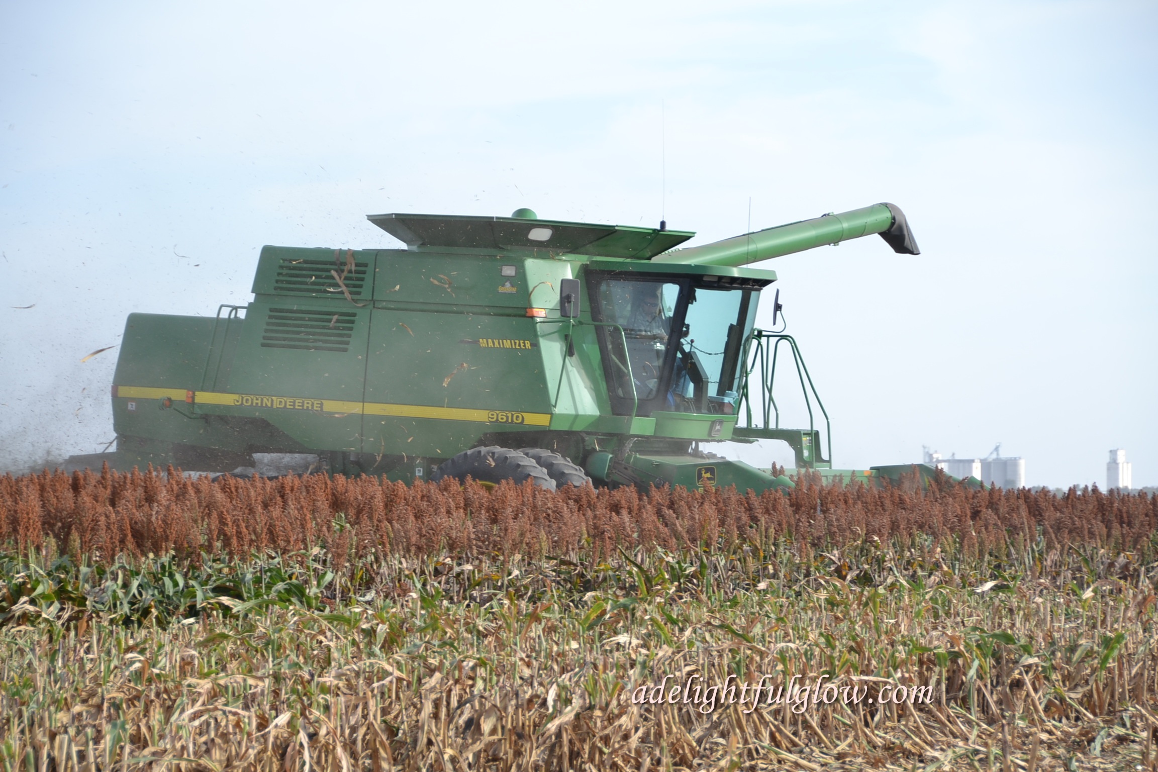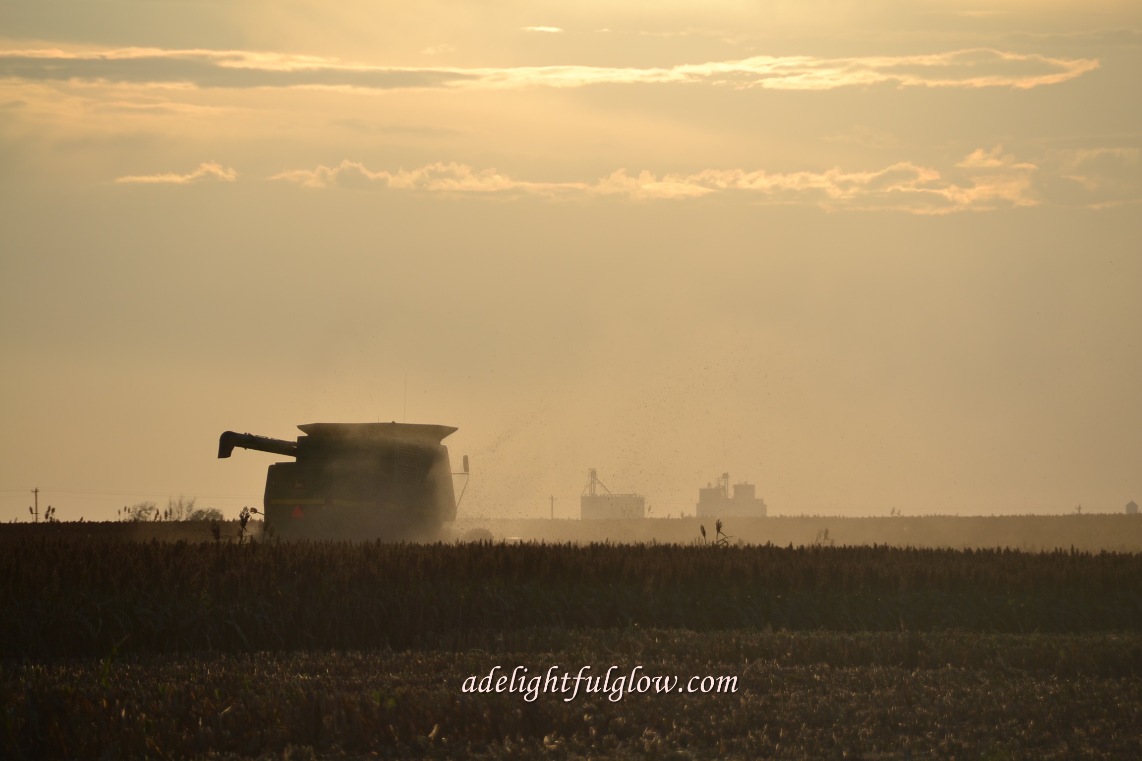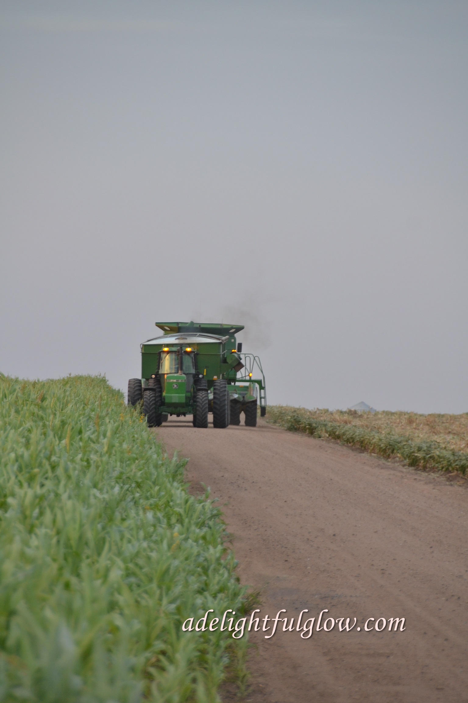 There was a combine and milo and tractor and grain cart and trucks and clouds and things like that and they were calling, “Take a picture.”