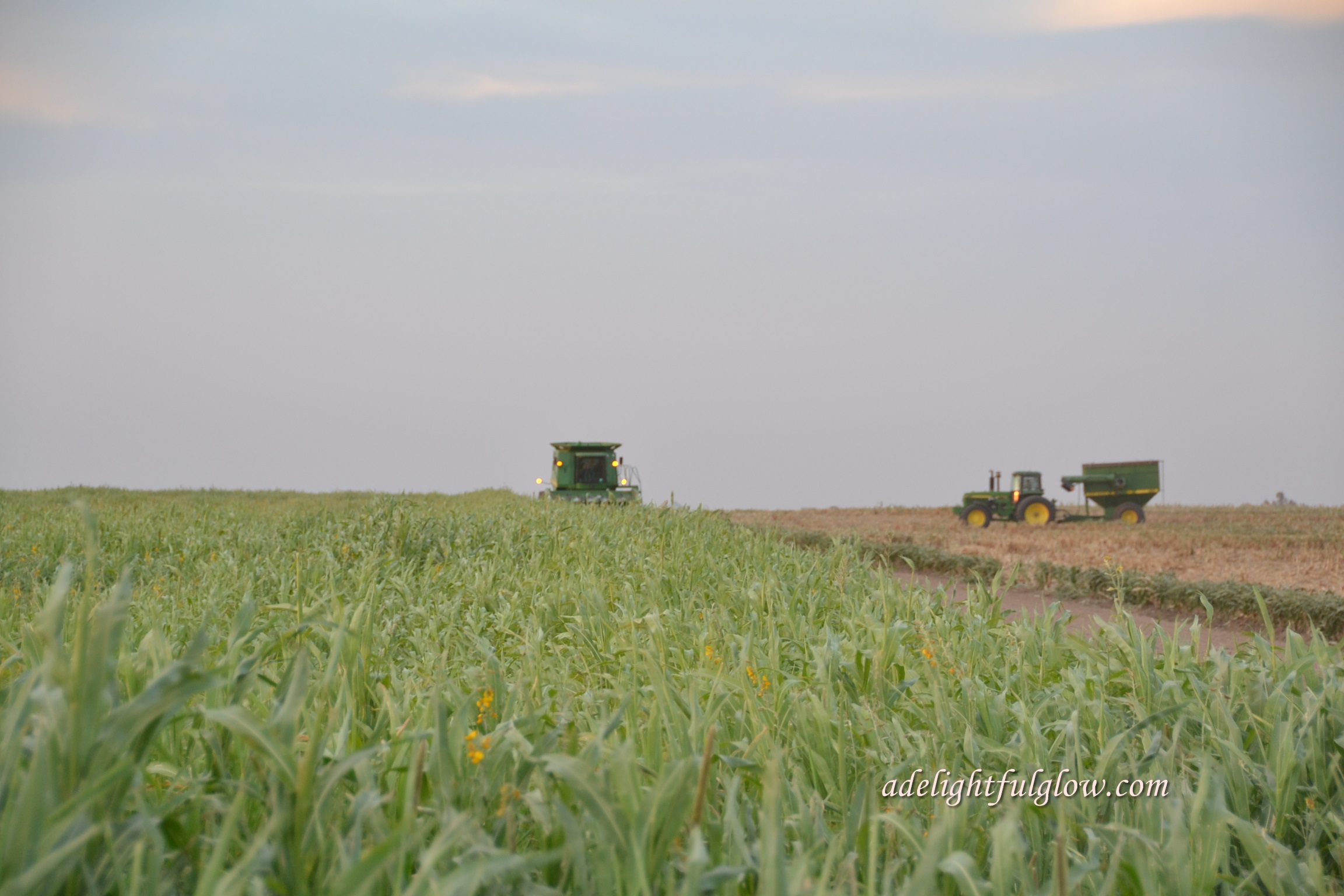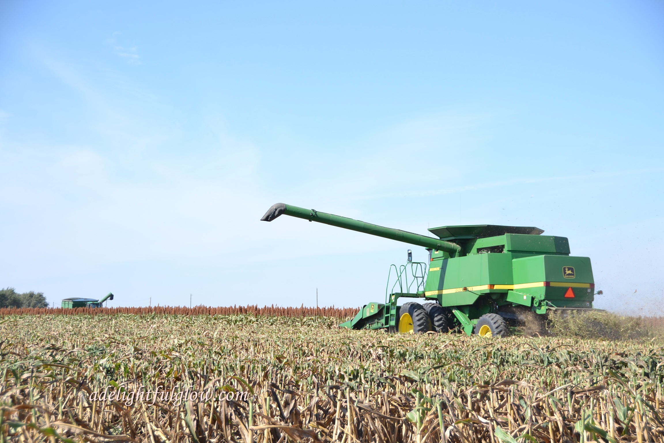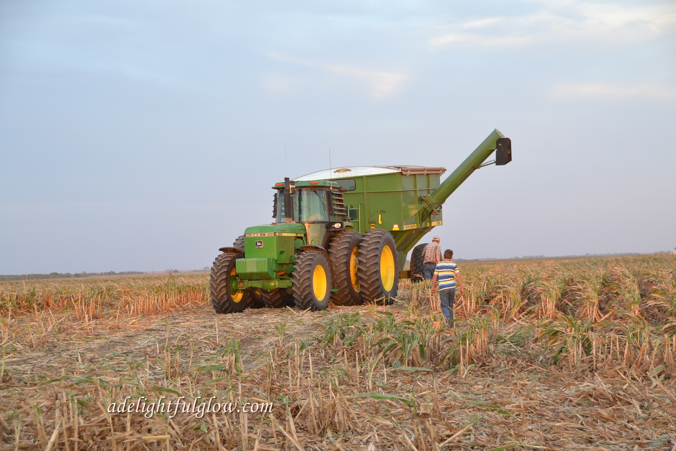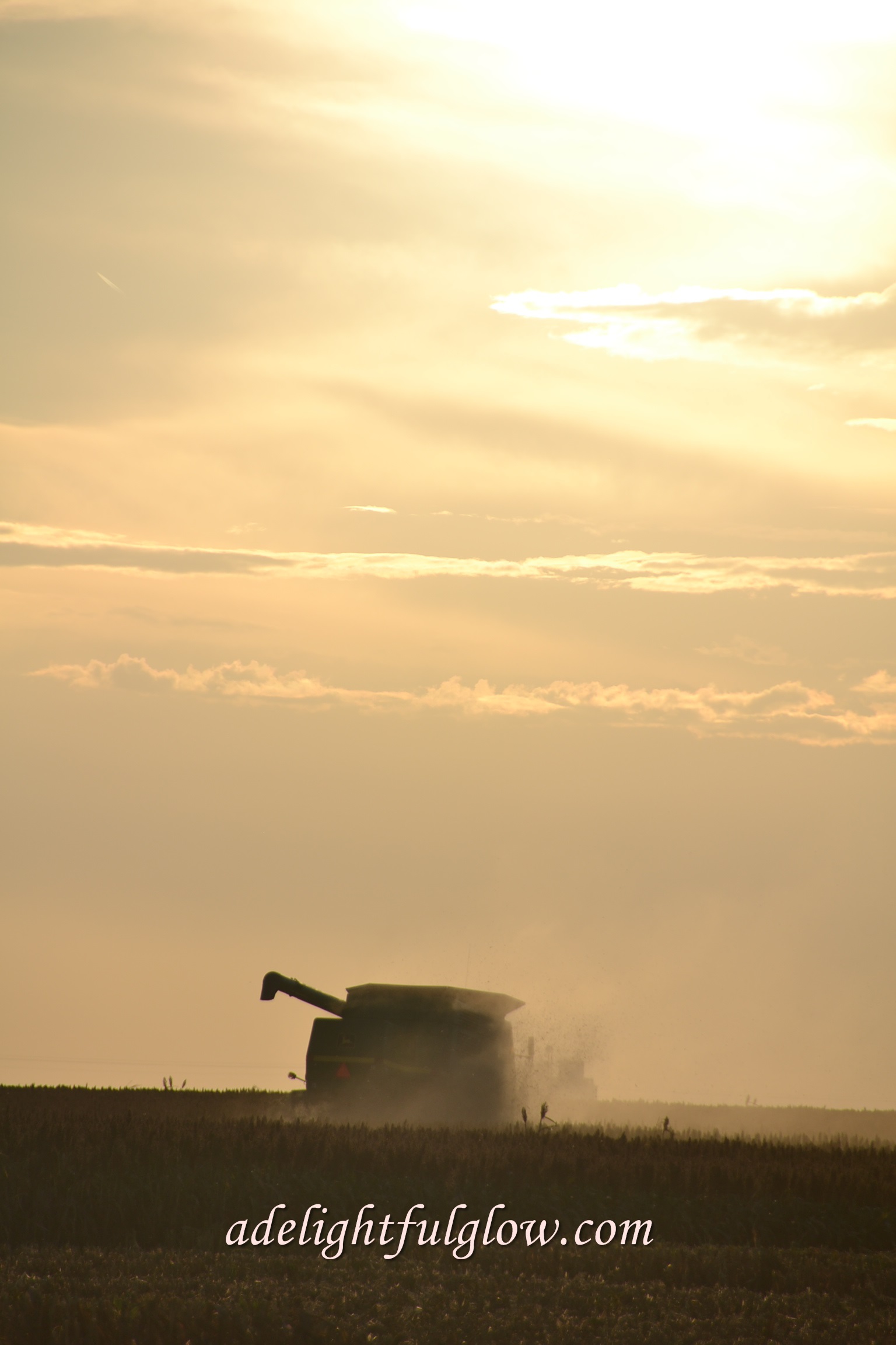 There was a combine and milo and tractor and grain cart and trucks and clouds and things like that and they were calling, “Take a picture.”