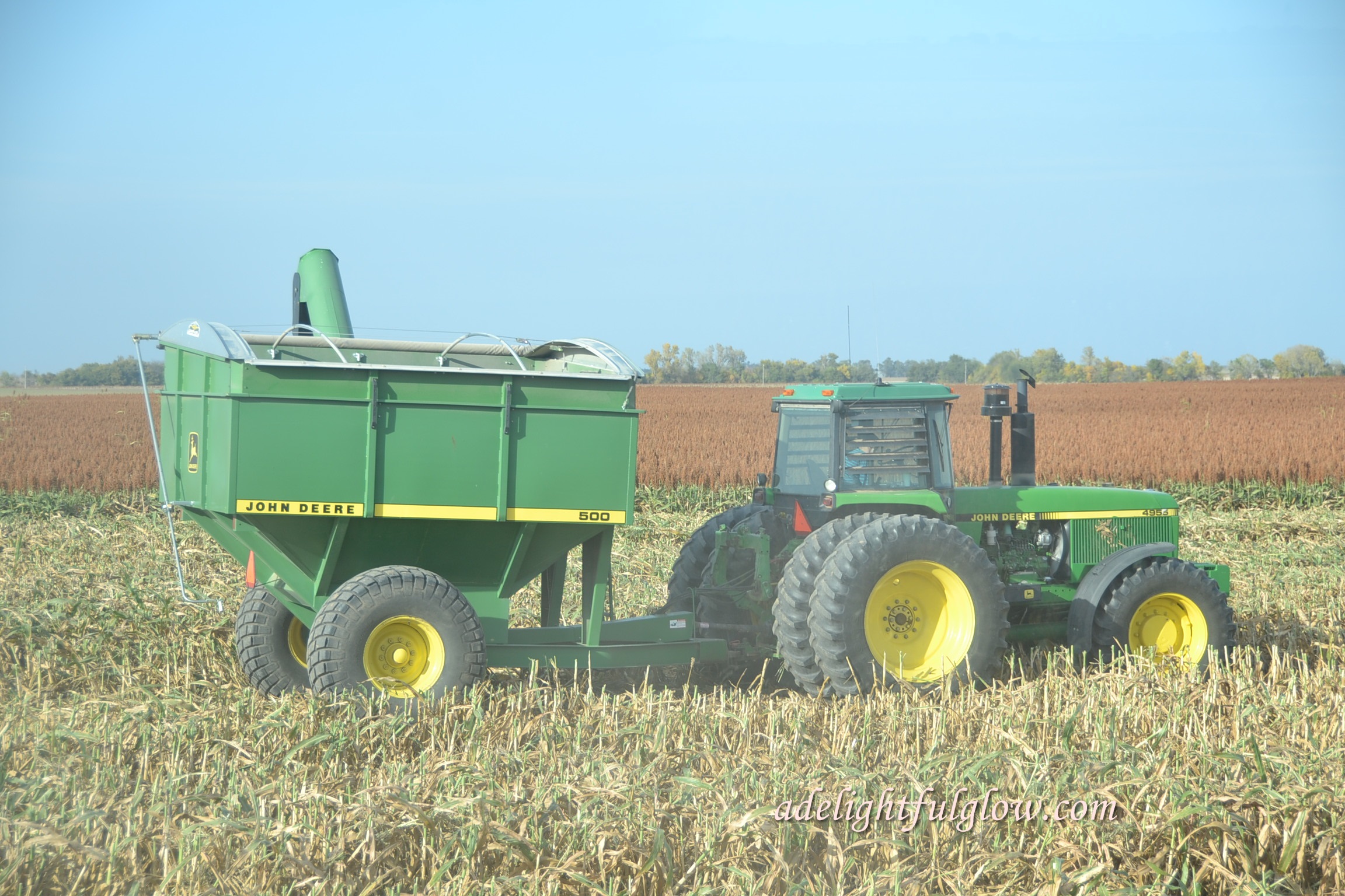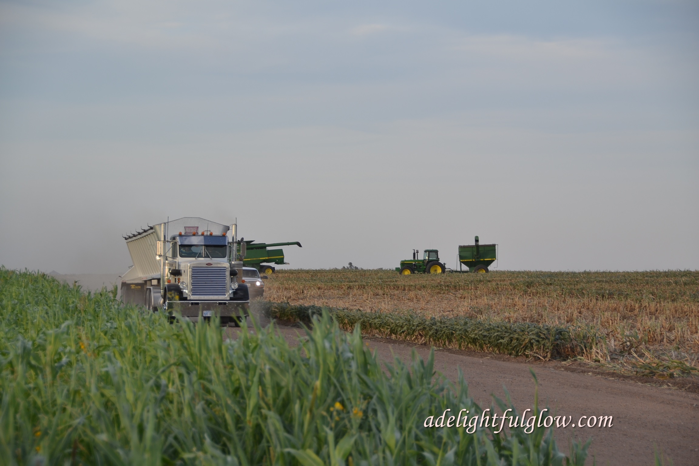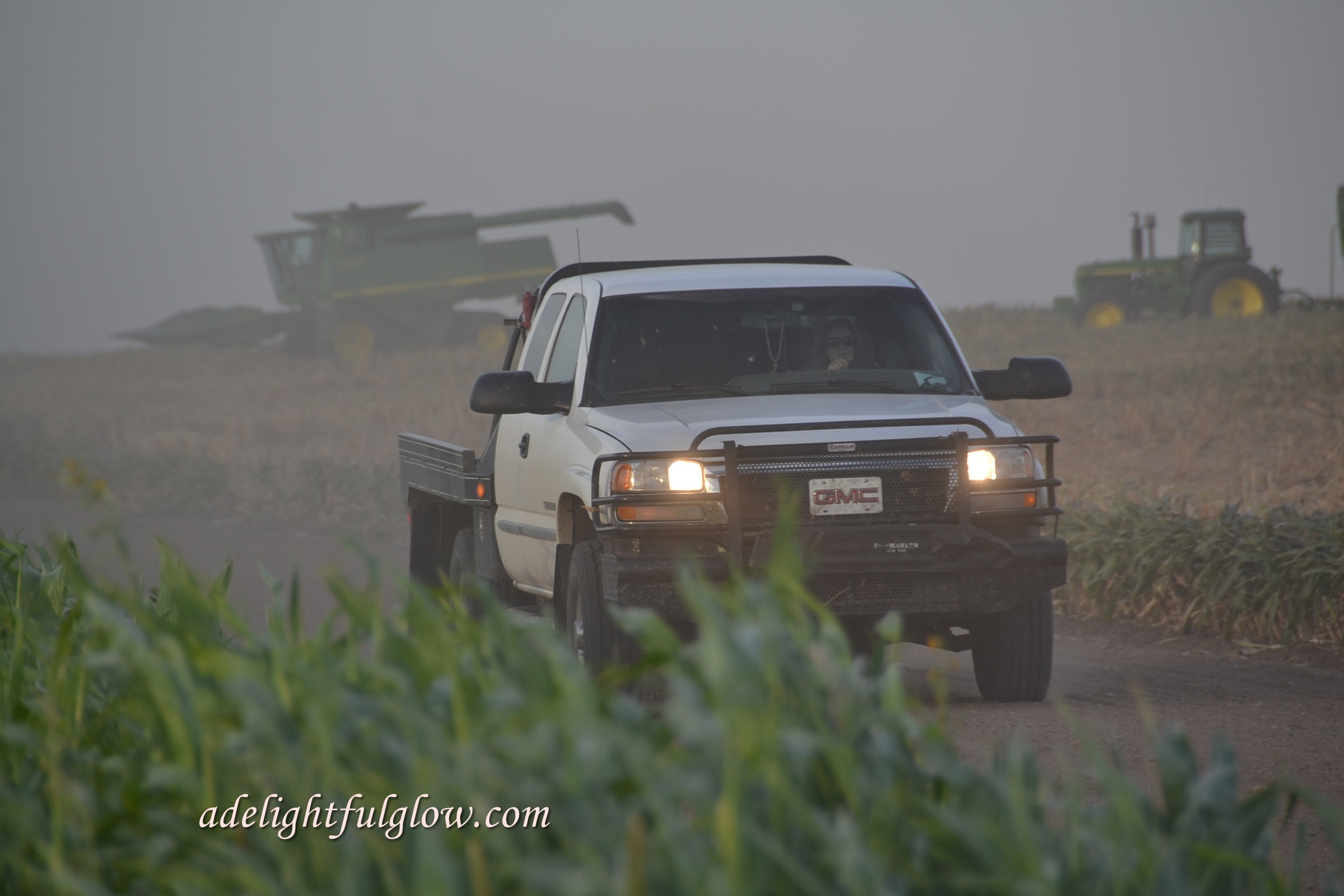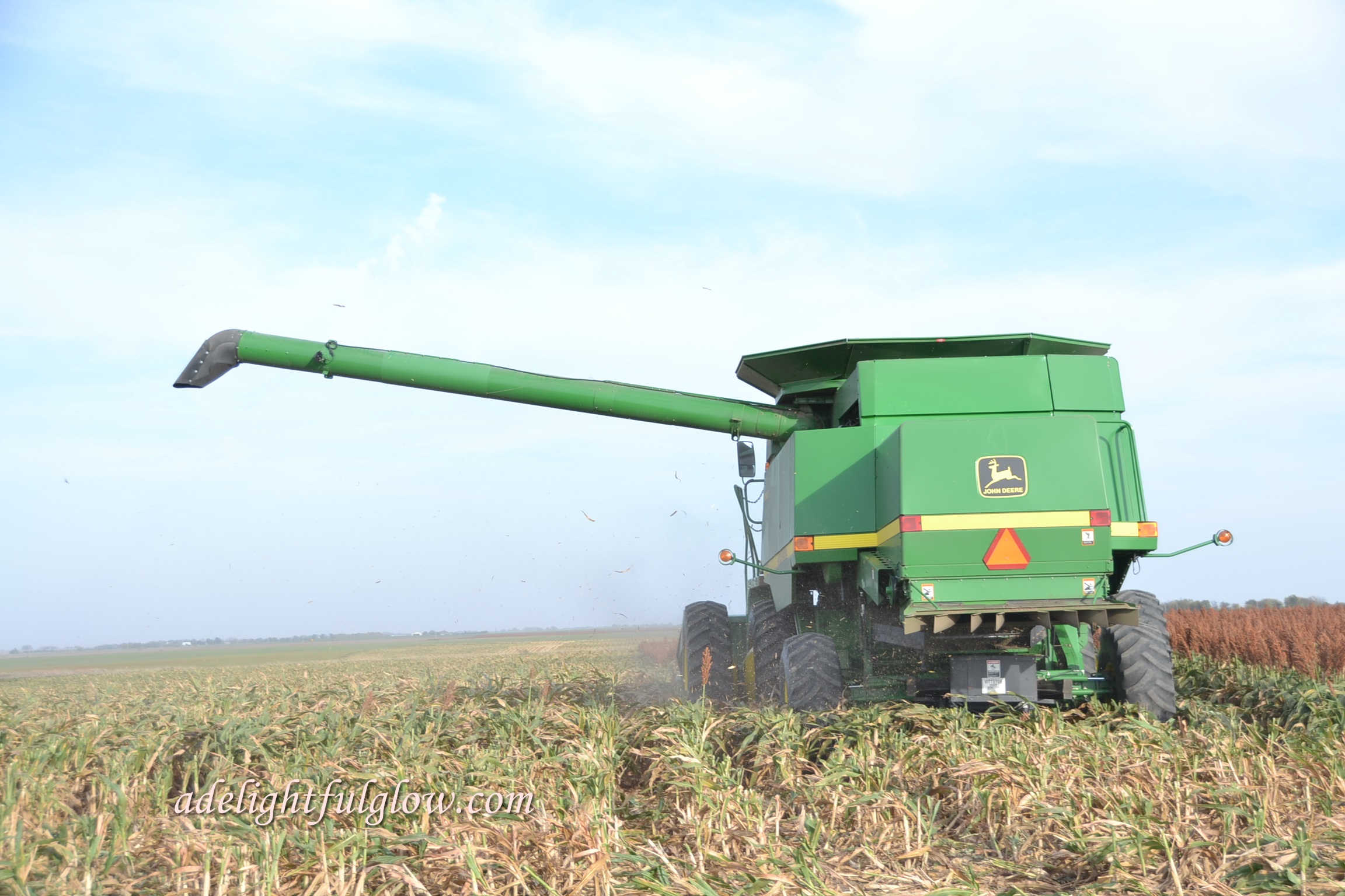 There was a combine and milo and tractor and grain cart and trucks and clouds and things like that and they were calling, “Take a picture.”