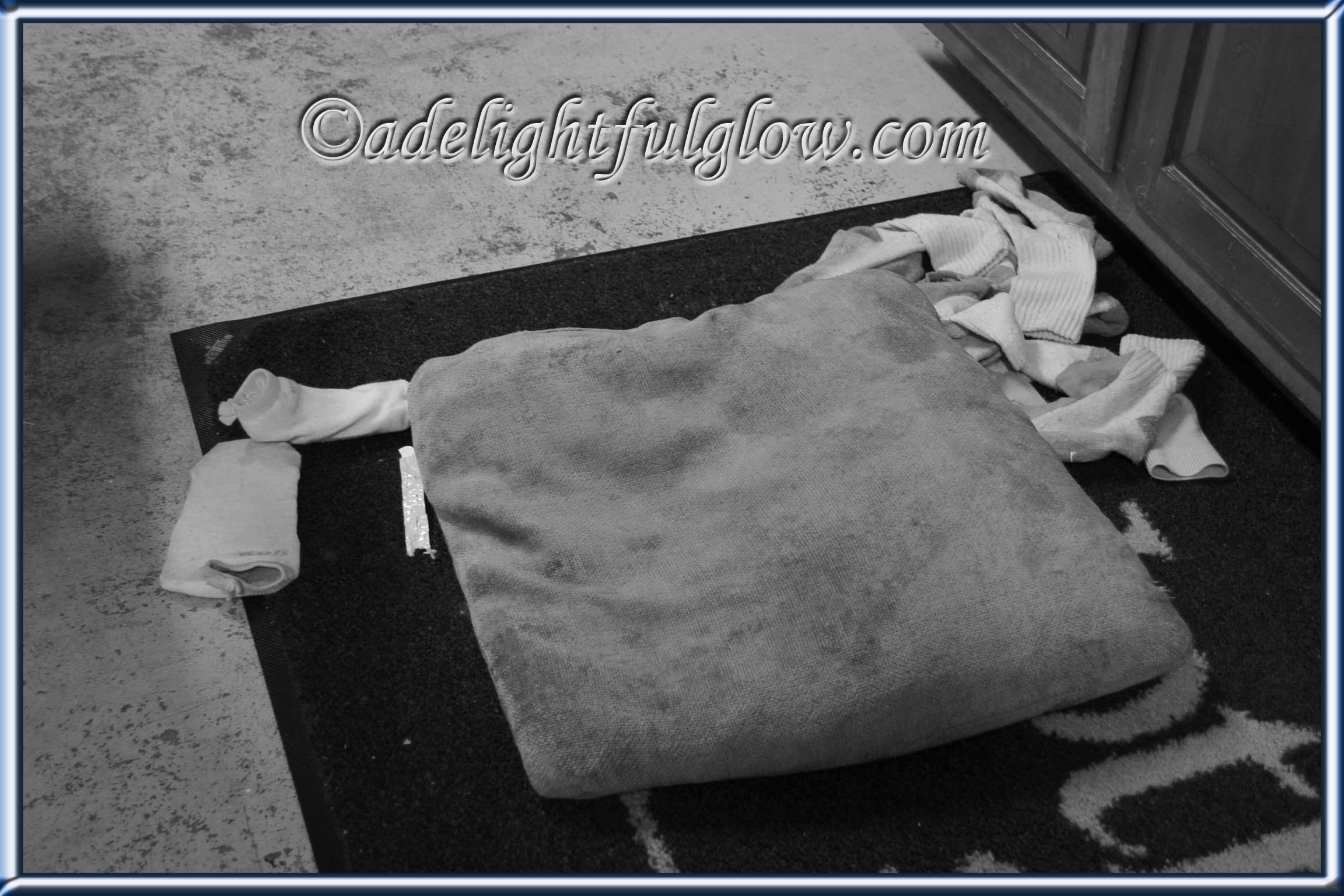 an old throw pillow and numerous old socks strewn around…everything in the vicinity has become open game for chewing and chewing and chewing…