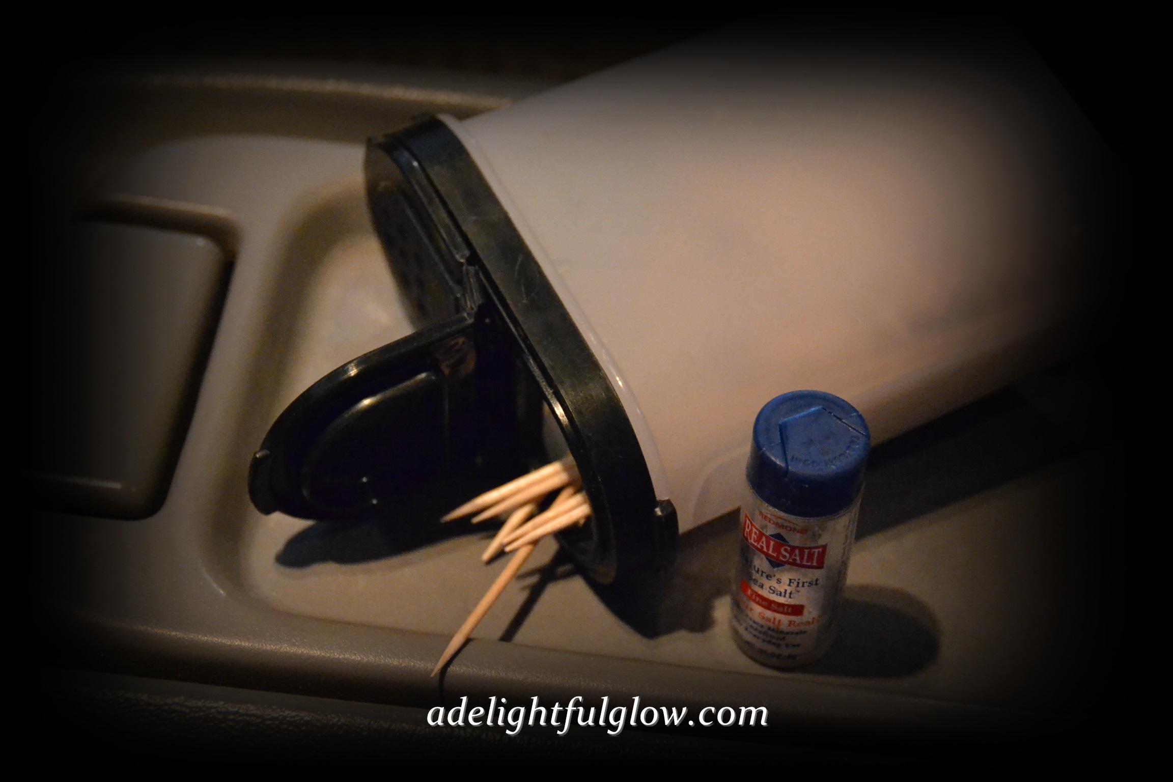 Along with salt, my man likes toothpicks, so in they went too. My lame brain does well to remember the meal and tea and silverware, let alone salt and toothpicks.